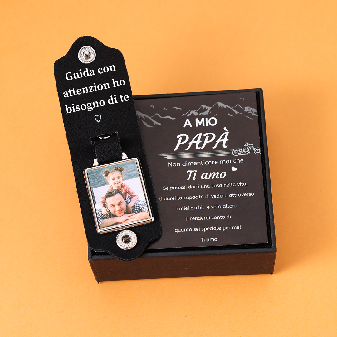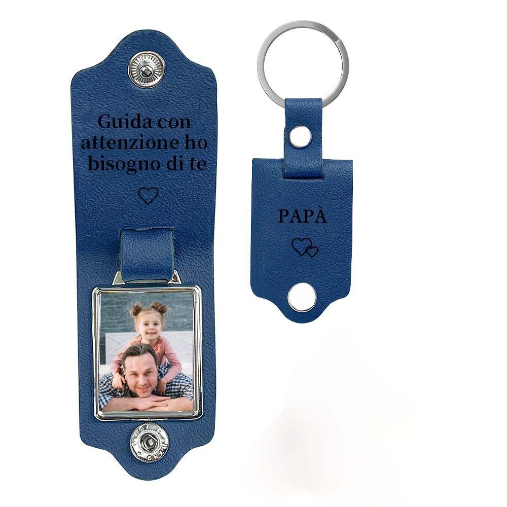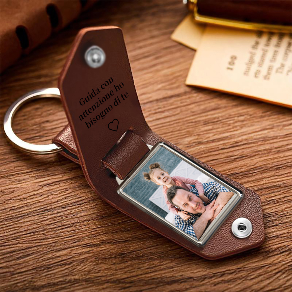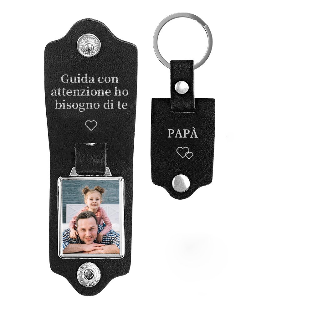 A mio papà-Guida con attenzioe Portachiavi Pelle 1 foto personalizzata per Papà