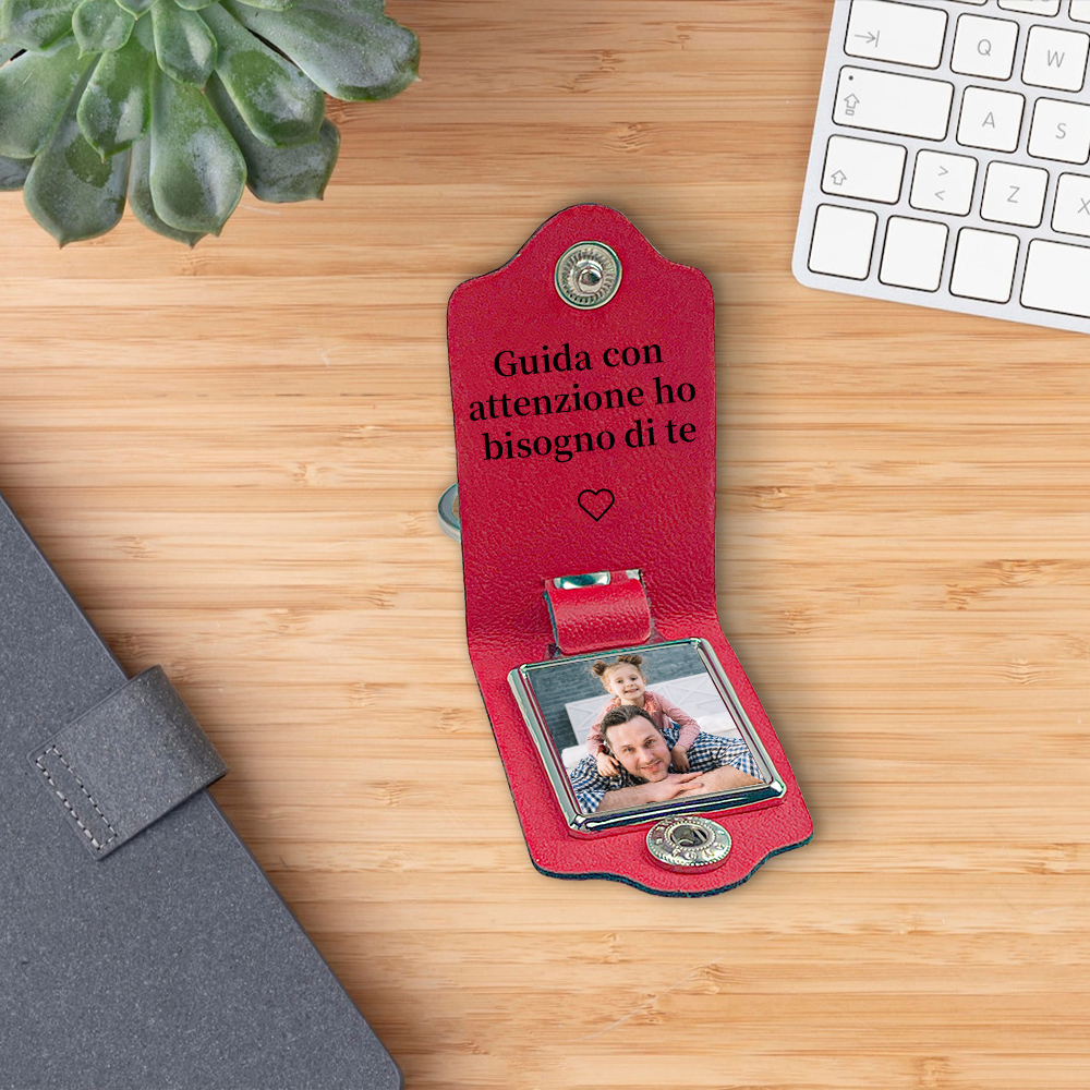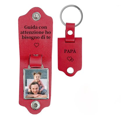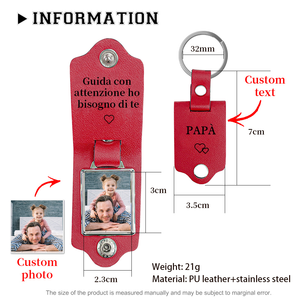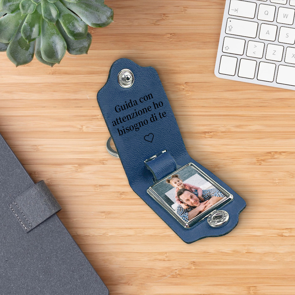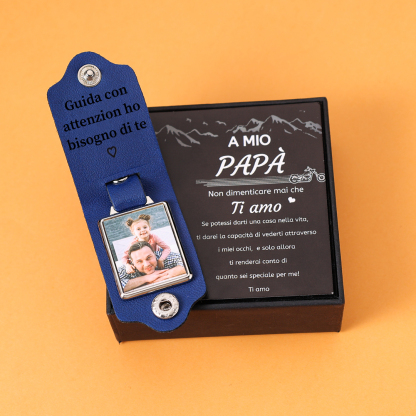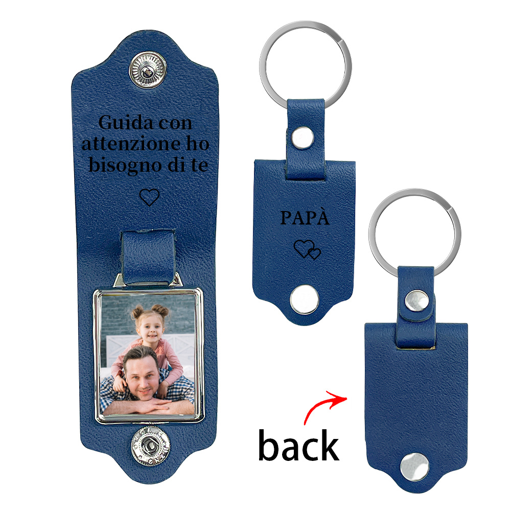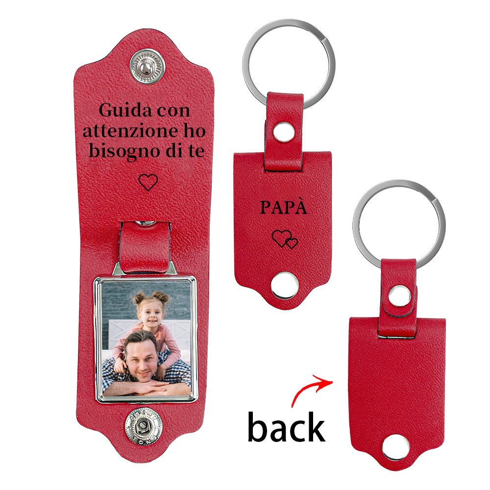 A mio papà-Guida con attenzioe Portachiavi Pelle 1 foto personalizzata per Papà