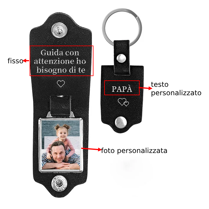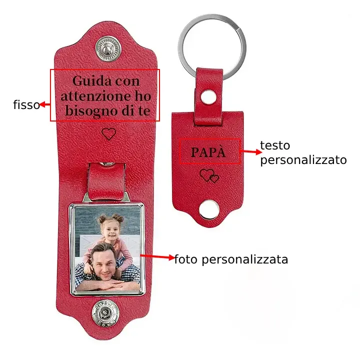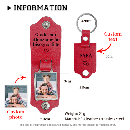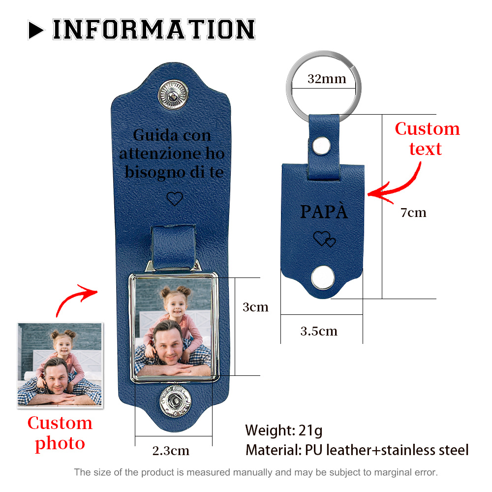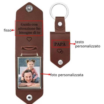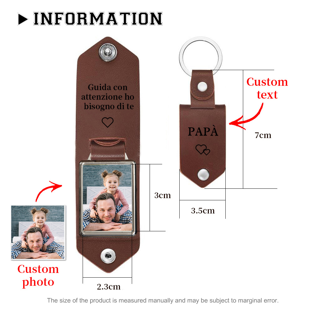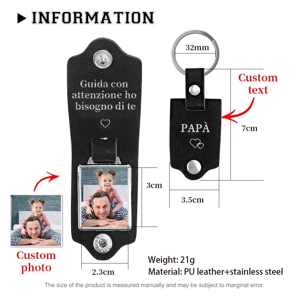 A mio papà-Guida con attenzioe Portachiavi Pelle 1 foto personalizzata per Papà