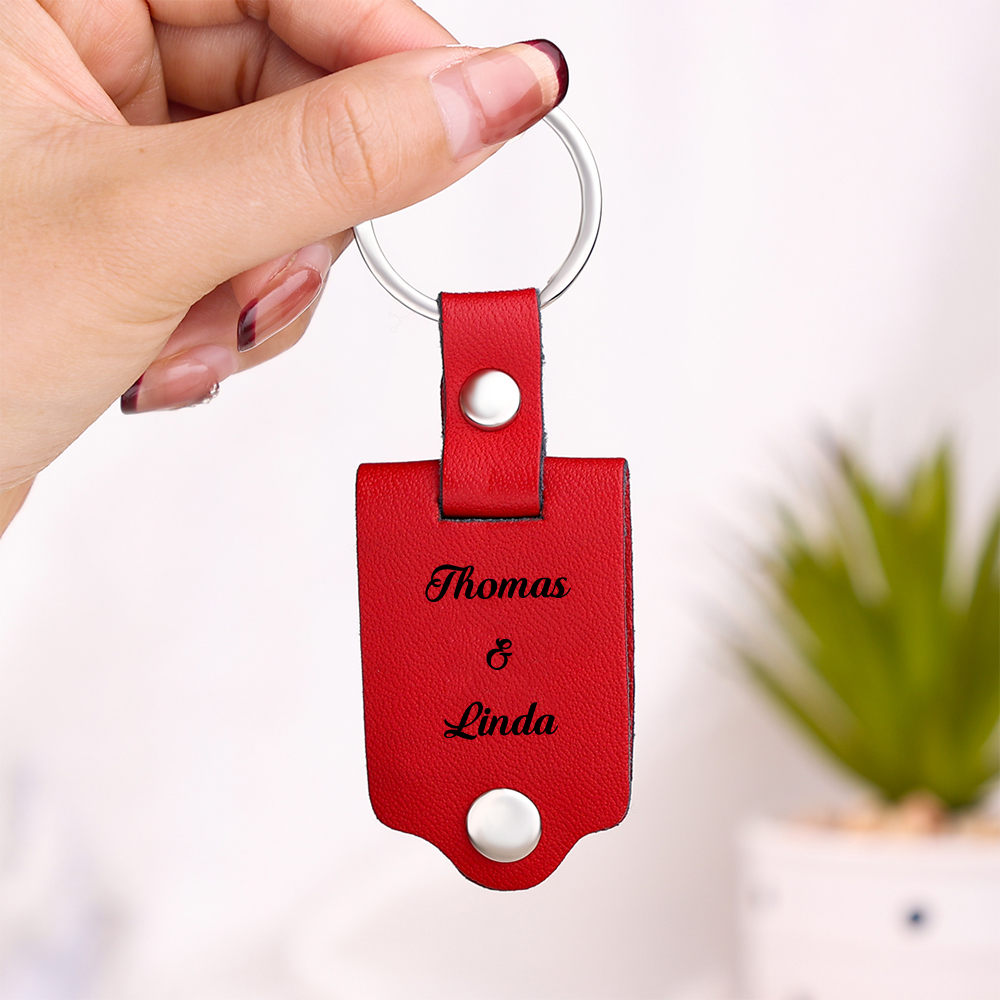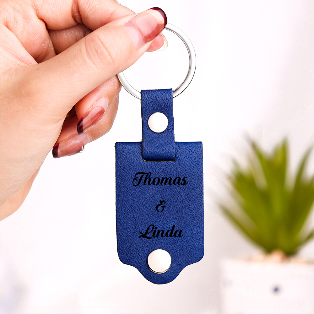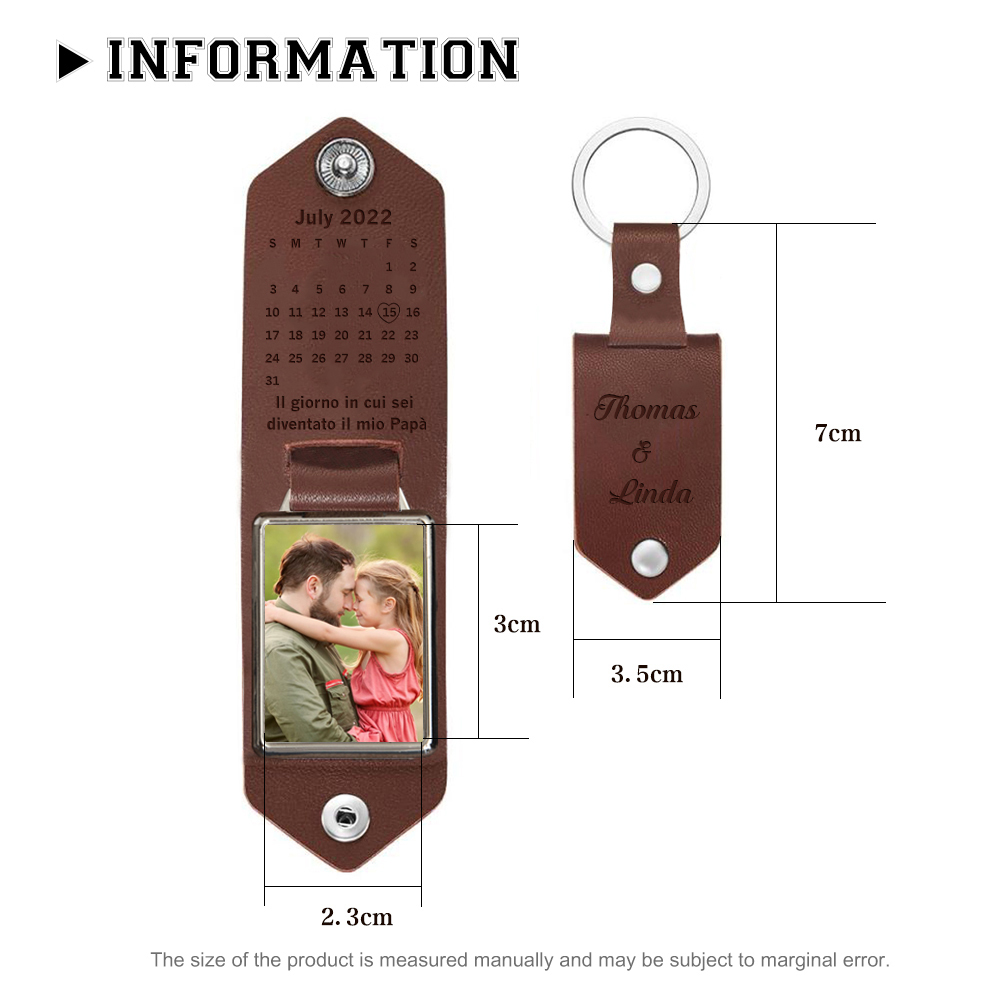 A mio papà-Portachiavi Pelle 1 foto e 1 data di calendario e 2 nomi personalizzabili regalo per Papà