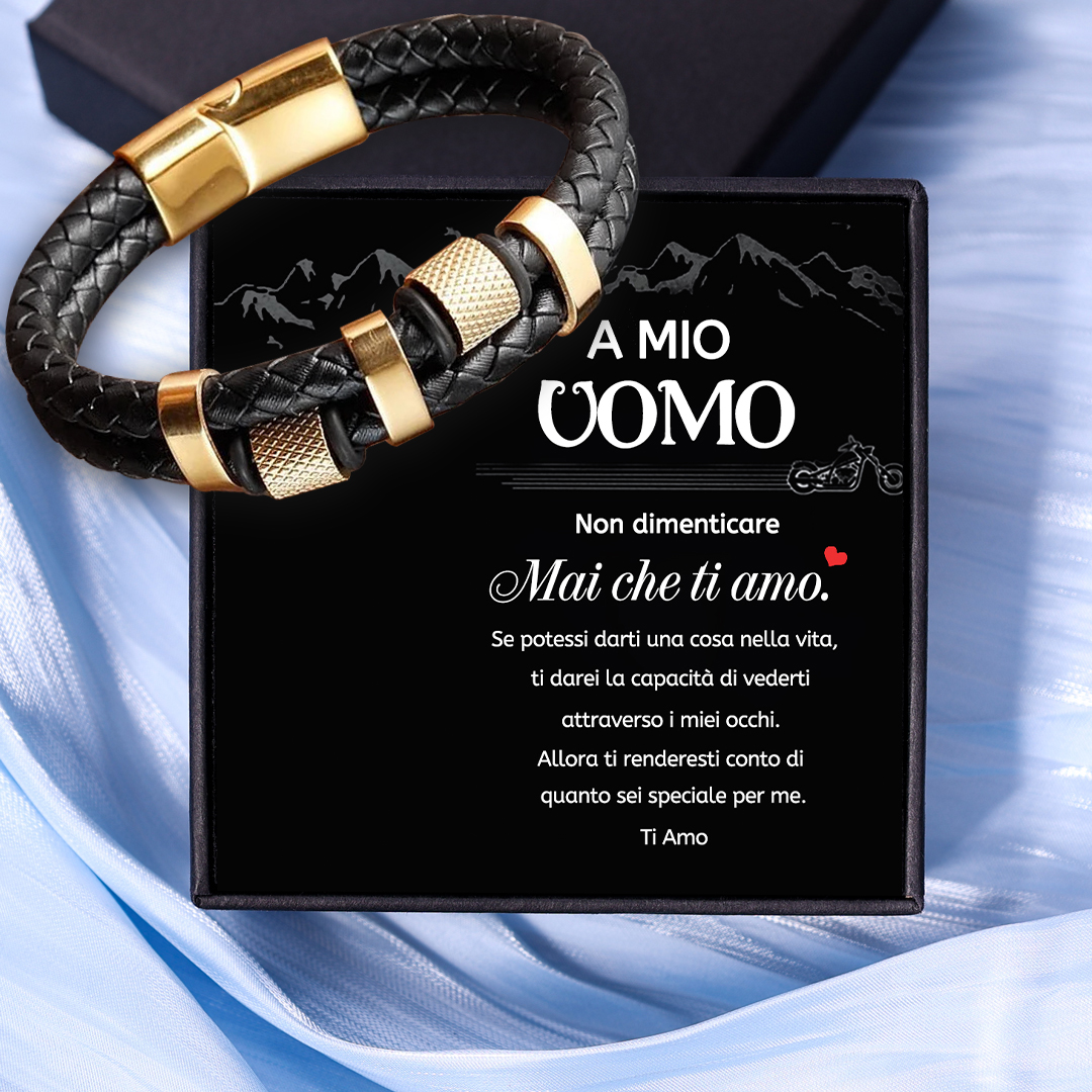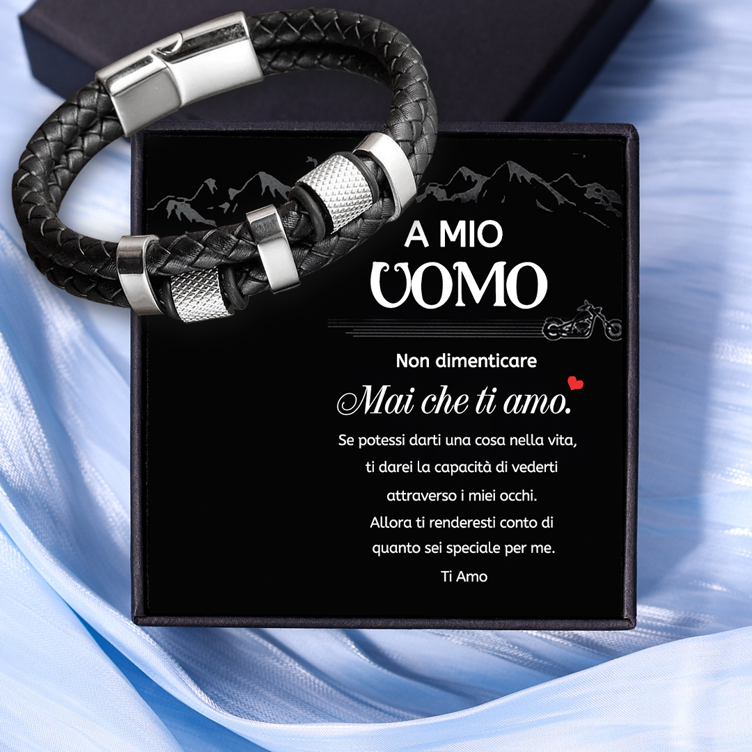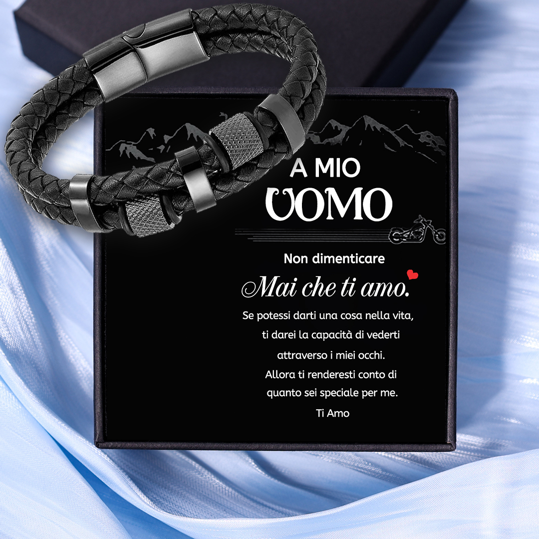 A Mio Uomo-Bracciale pelle e acciaio inossidabile per mio marito con carta e scatola