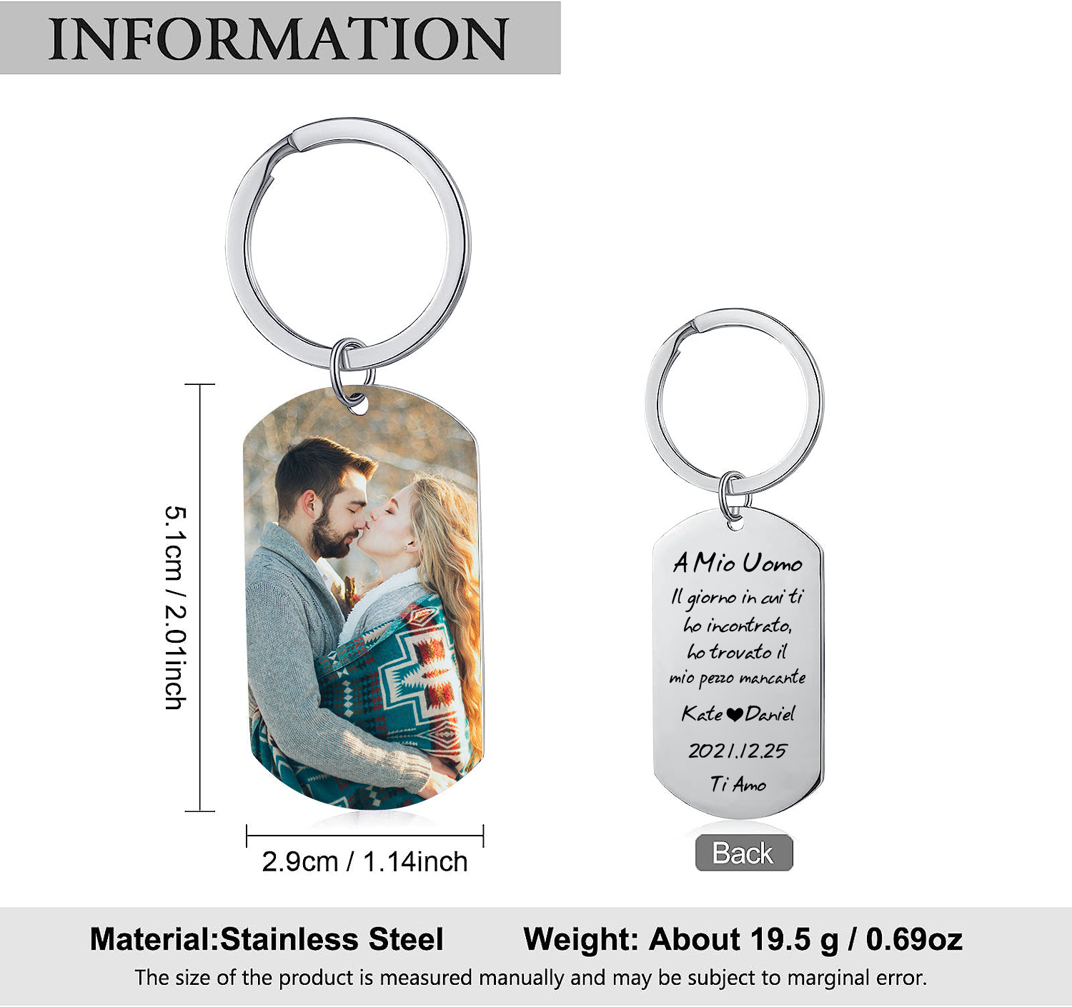 A mio uomo-Portachiavi 1 foto 1 testo 2 nomi e 1 data personalizzati regalo per coppia per San valentino