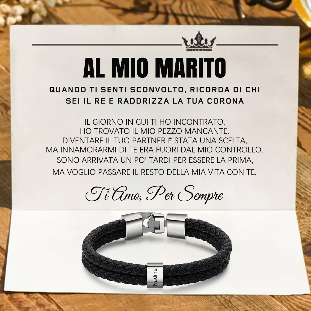 AL MIO MARITO Bracciale in pelle 1 perline Bracciale da uomo personalizzato con nome e cognome