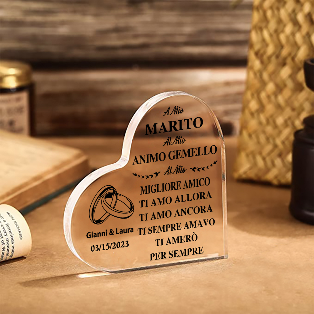 Al mio marito-Deco acrilico cuore per coppia 1 foto e 2 nomi personalizzabili