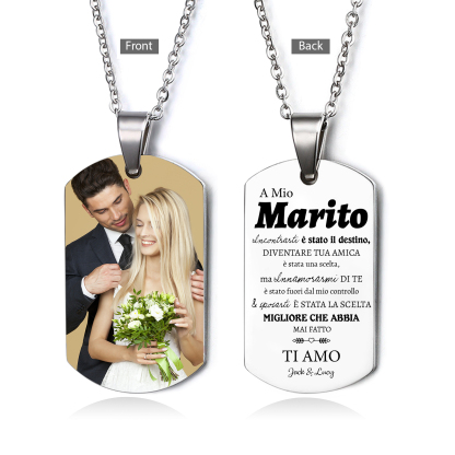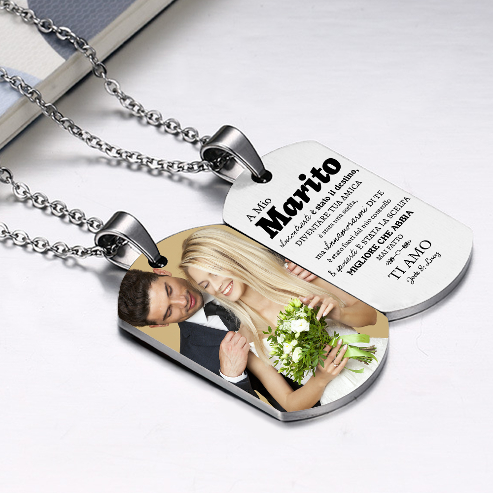 Al mio marito incontrarti è stato il destinato-Collana acciaio inox per coppia 2 nomi e 1 foto personalizzabili