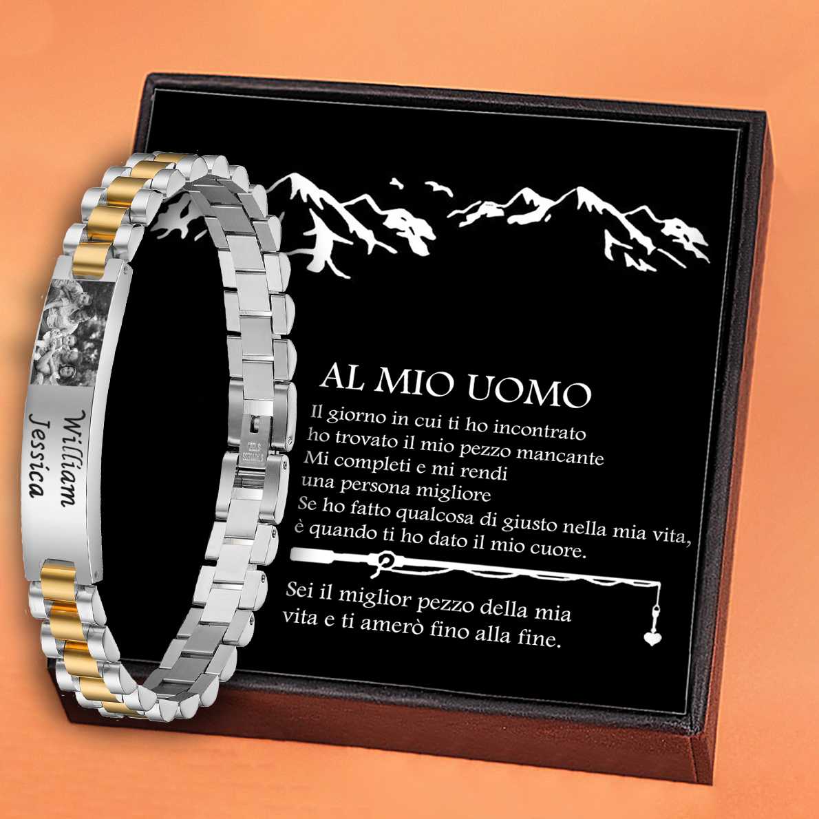 AL MIO UOMO-Bracciale acciaio inox con foto personalizzato per coppia
