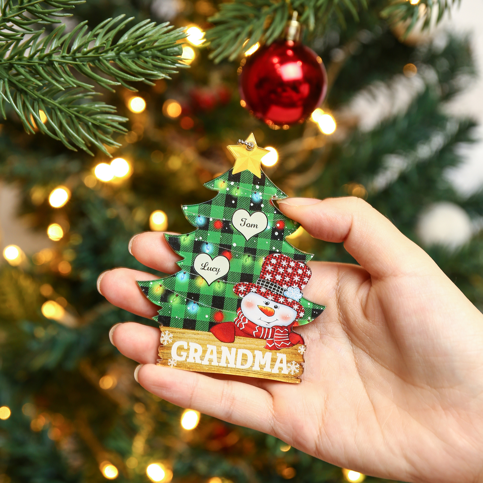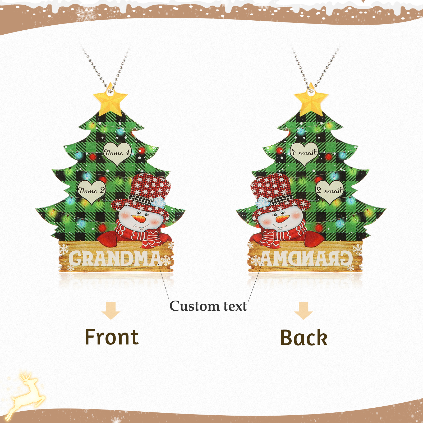 Albero di Natale-Ciondolo familiare 2 nomi personalizzabili pupazzo di neve