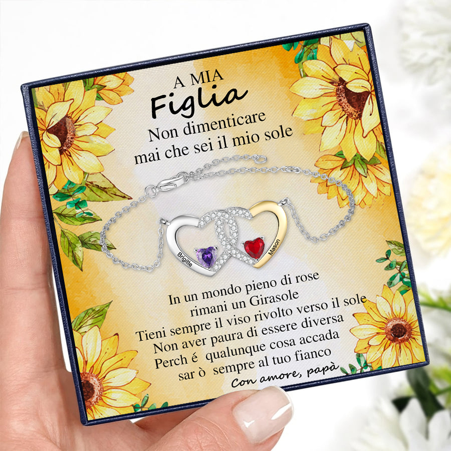 Alla Mia Bellissima Figlia-Bracciale femminile con 2 nomi e gemma mensili personalizzati