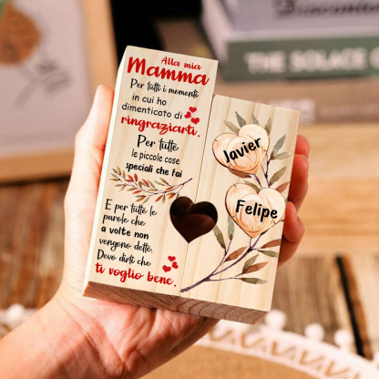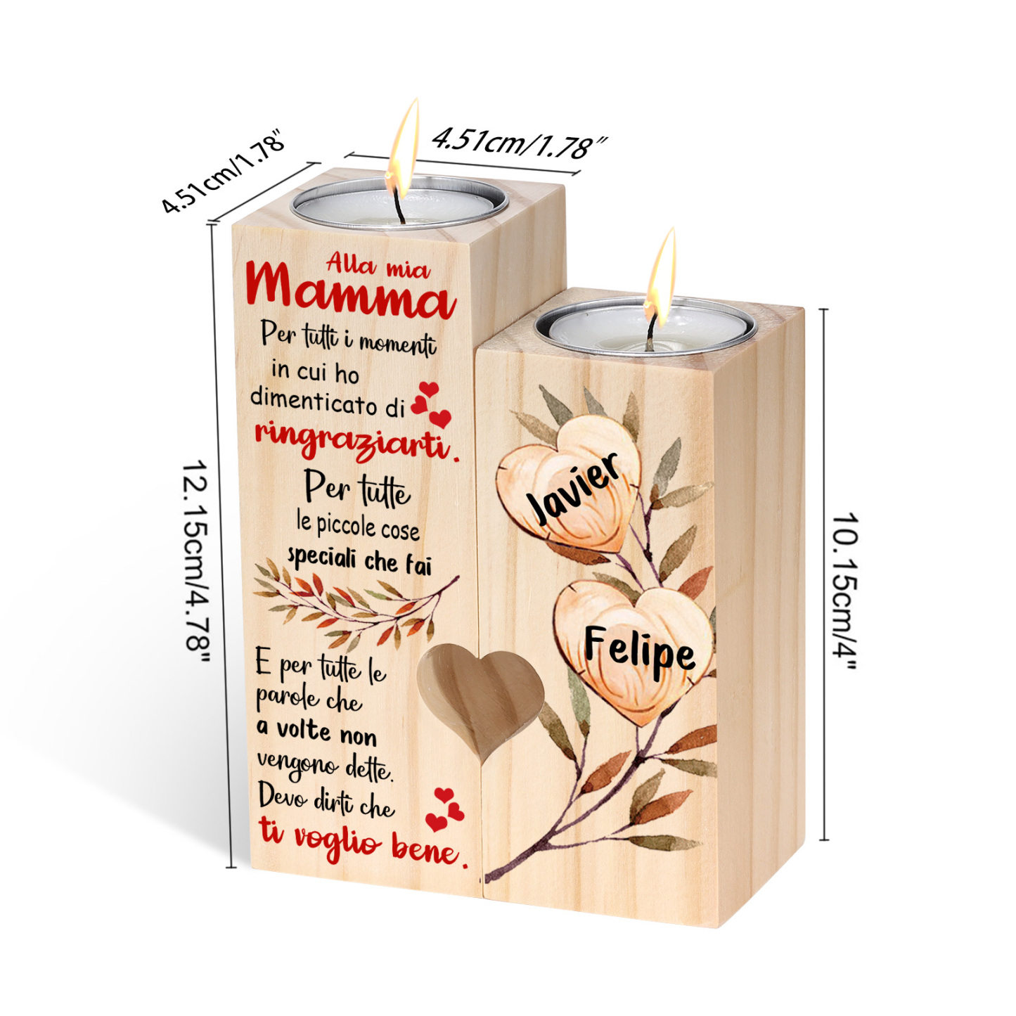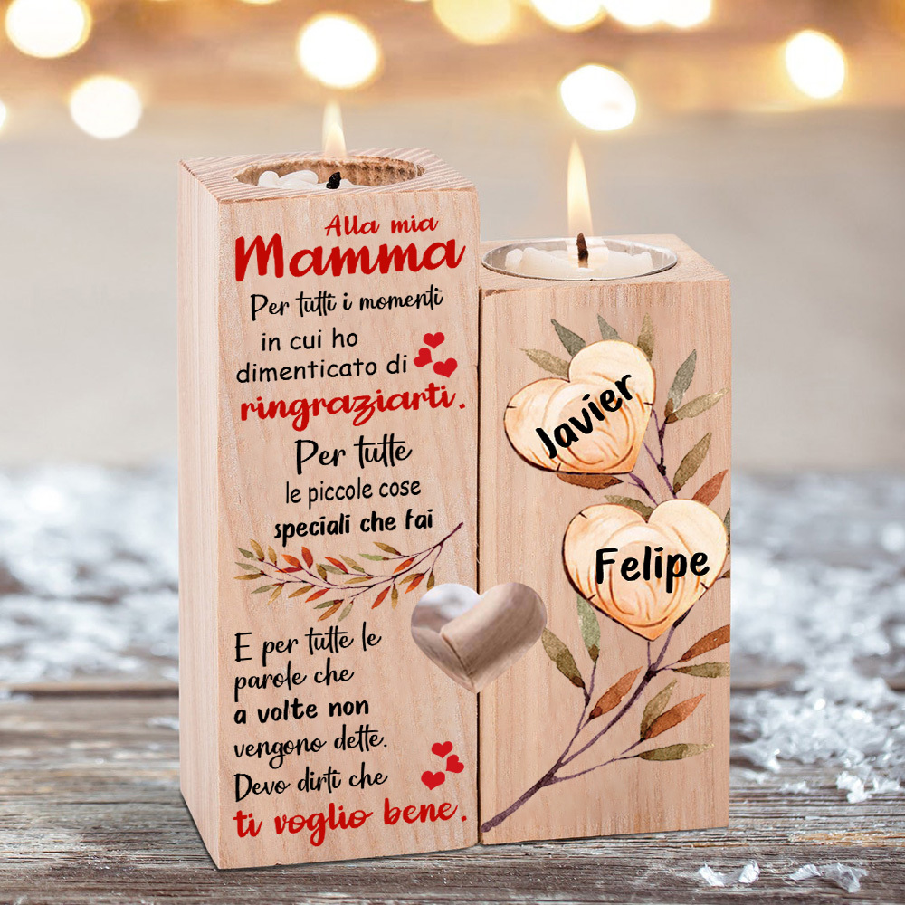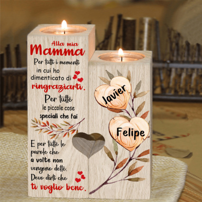 Alla mia mamma-Candeliere a forma di cuore con foglie e cuore 2 nomi personalizzati per mamma/nonna