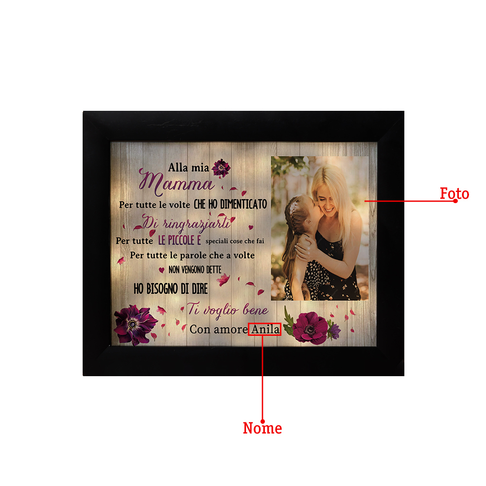 Alla mia Mamma-Cornice con LED luce 1 nome e 1 foto personalizzati regalo per mamma