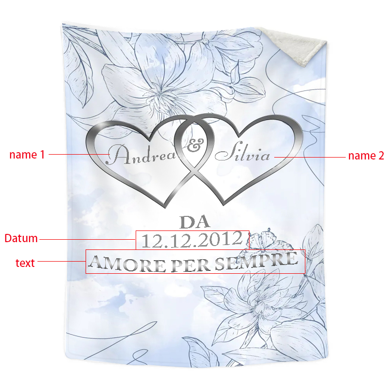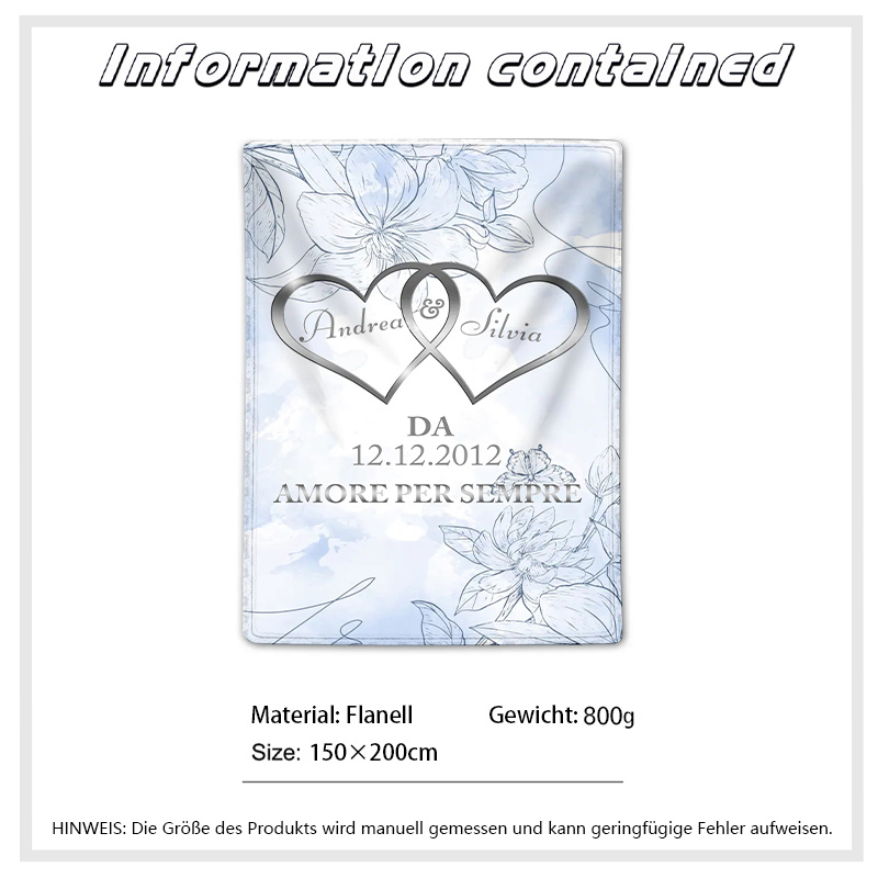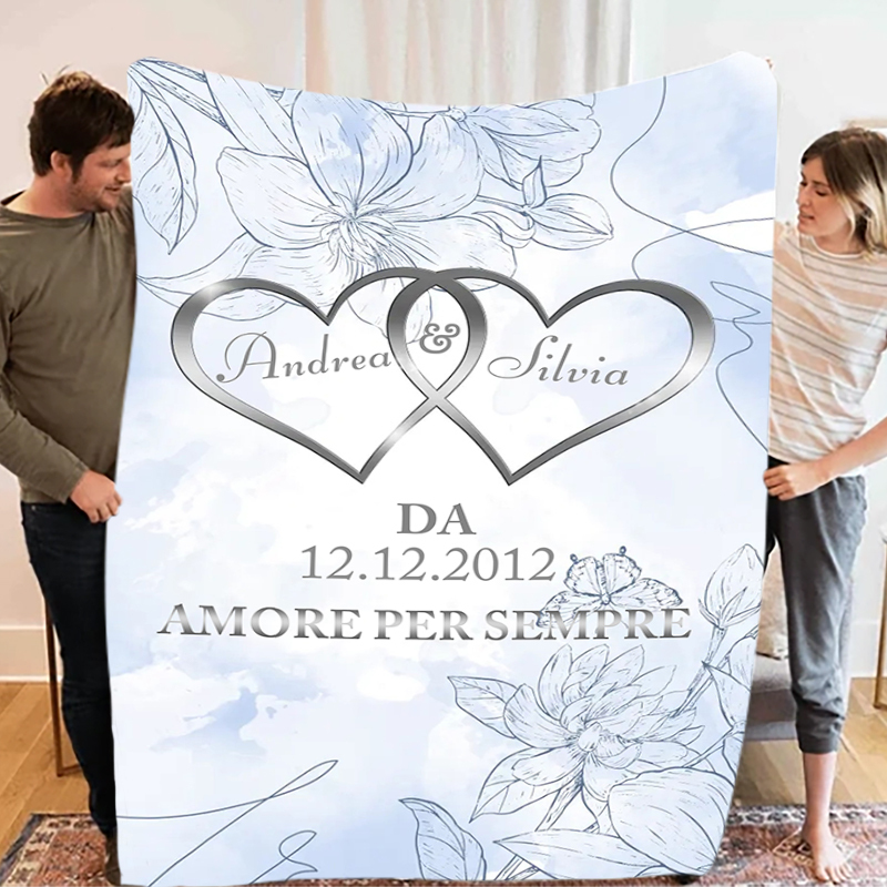 Amore per sempre cuori legati coperta celeste per coppia personalizzabili 2 nomi