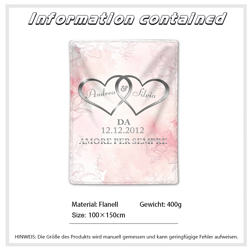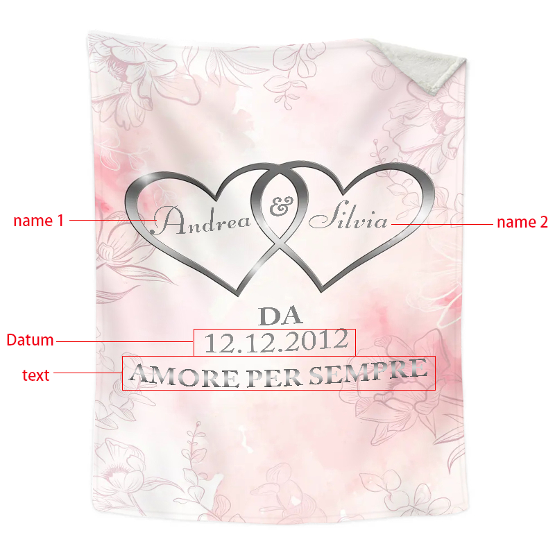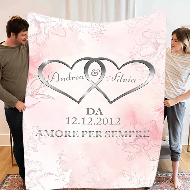 Amore per sempre cuori legati coperta sakura per coppia personalizzabili 2 nomi