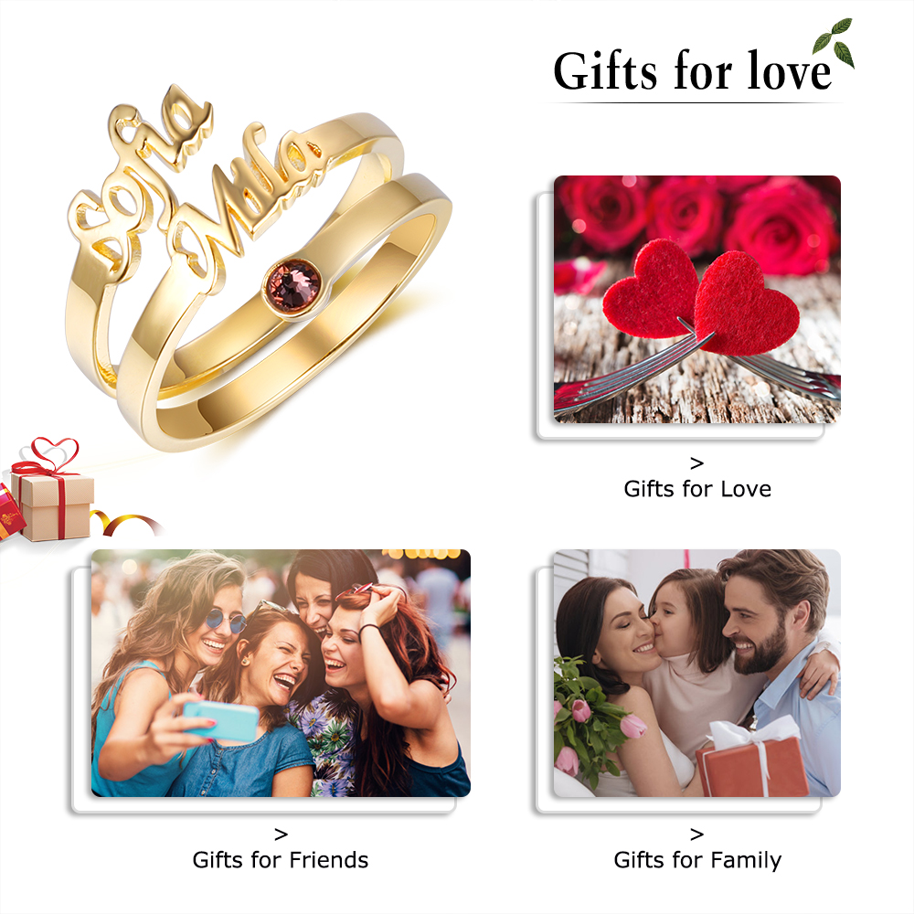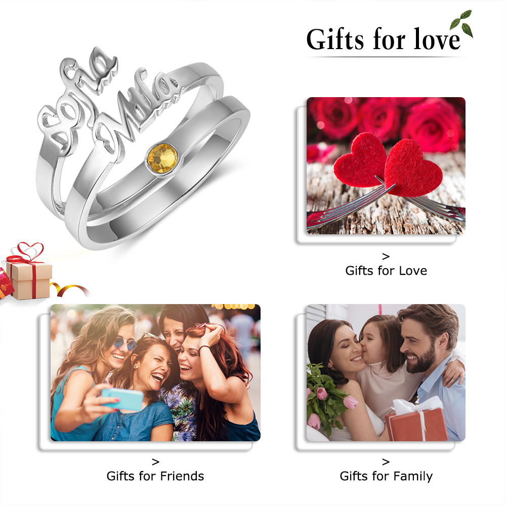 💖 Un Simbolo d'Amore Eterno 💖 Questo anello speciale è un tributo all'amore duraturo e alle connessioni profonde. La personalizzazione con il nome aggiunge un tocco personale, mentre la pietra di nascita rappresenta il mese in cui il vostro amore è nato.