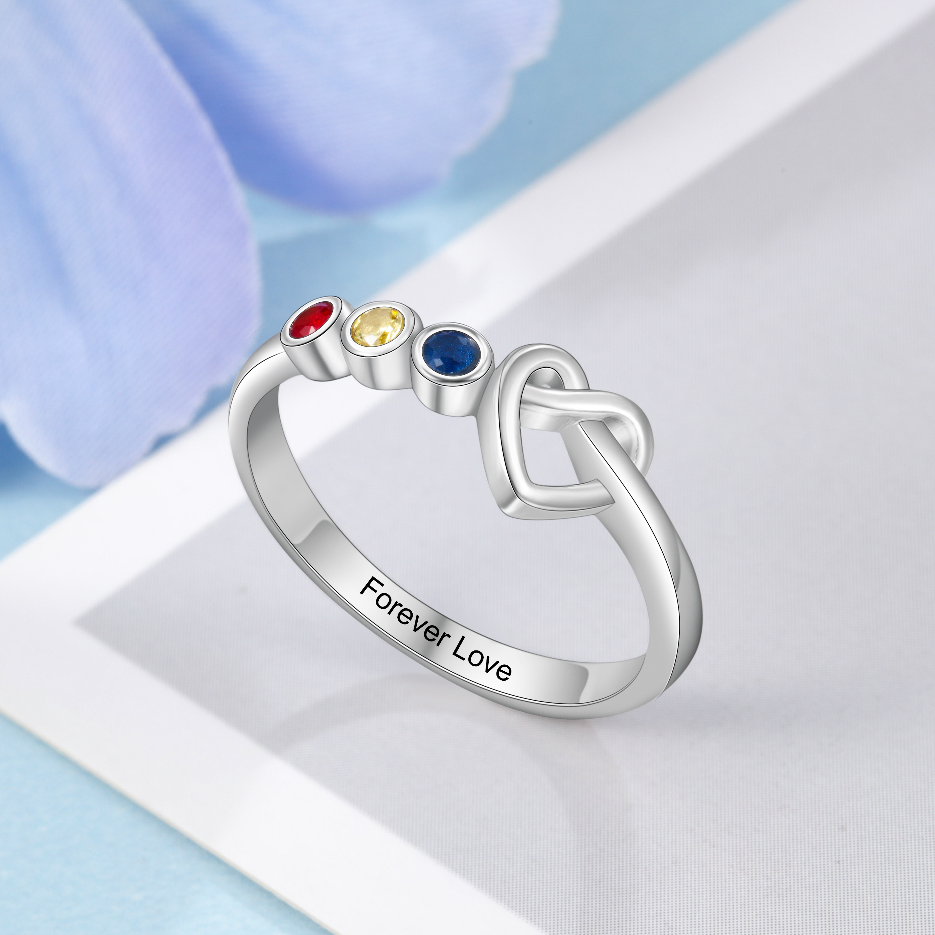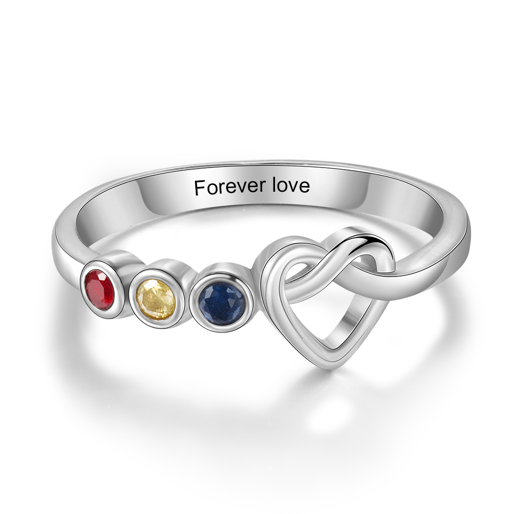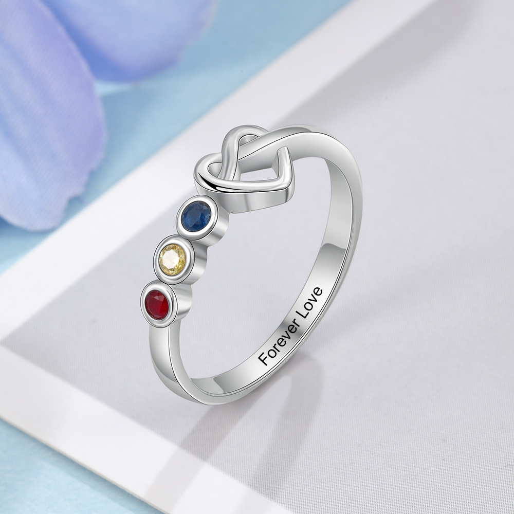 Anello cuore con 3 pietre di nascita e 1 testo personalizzati regalo per donna