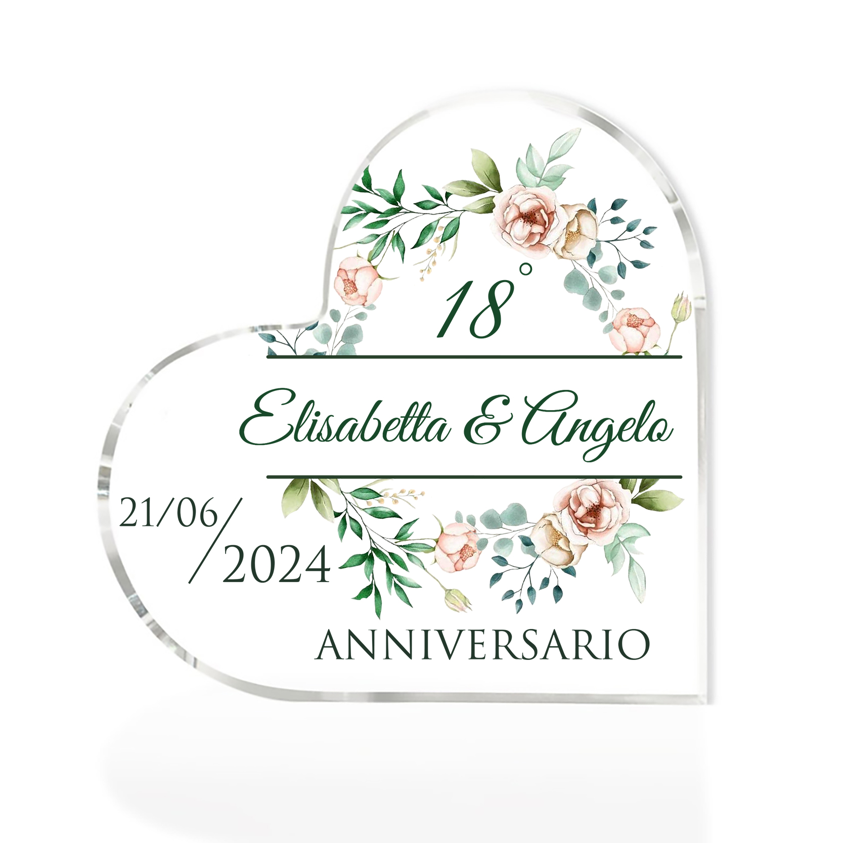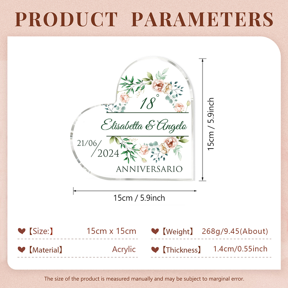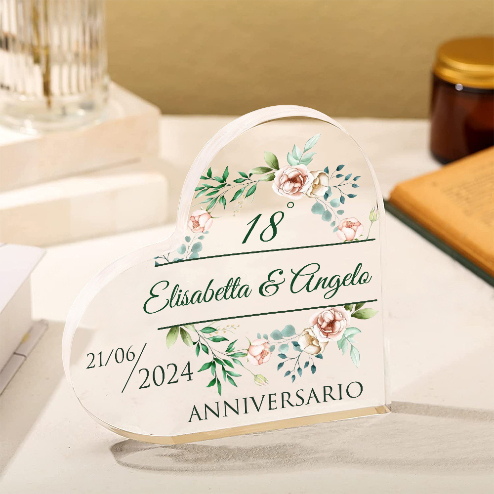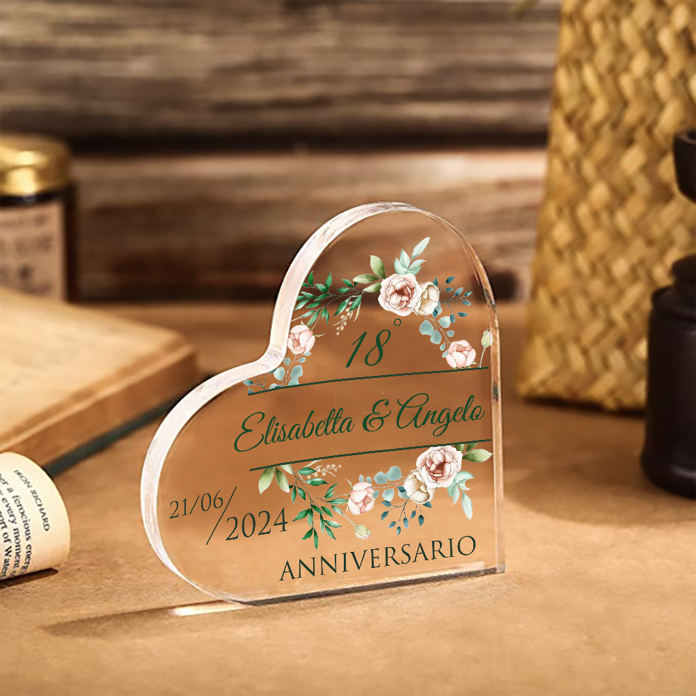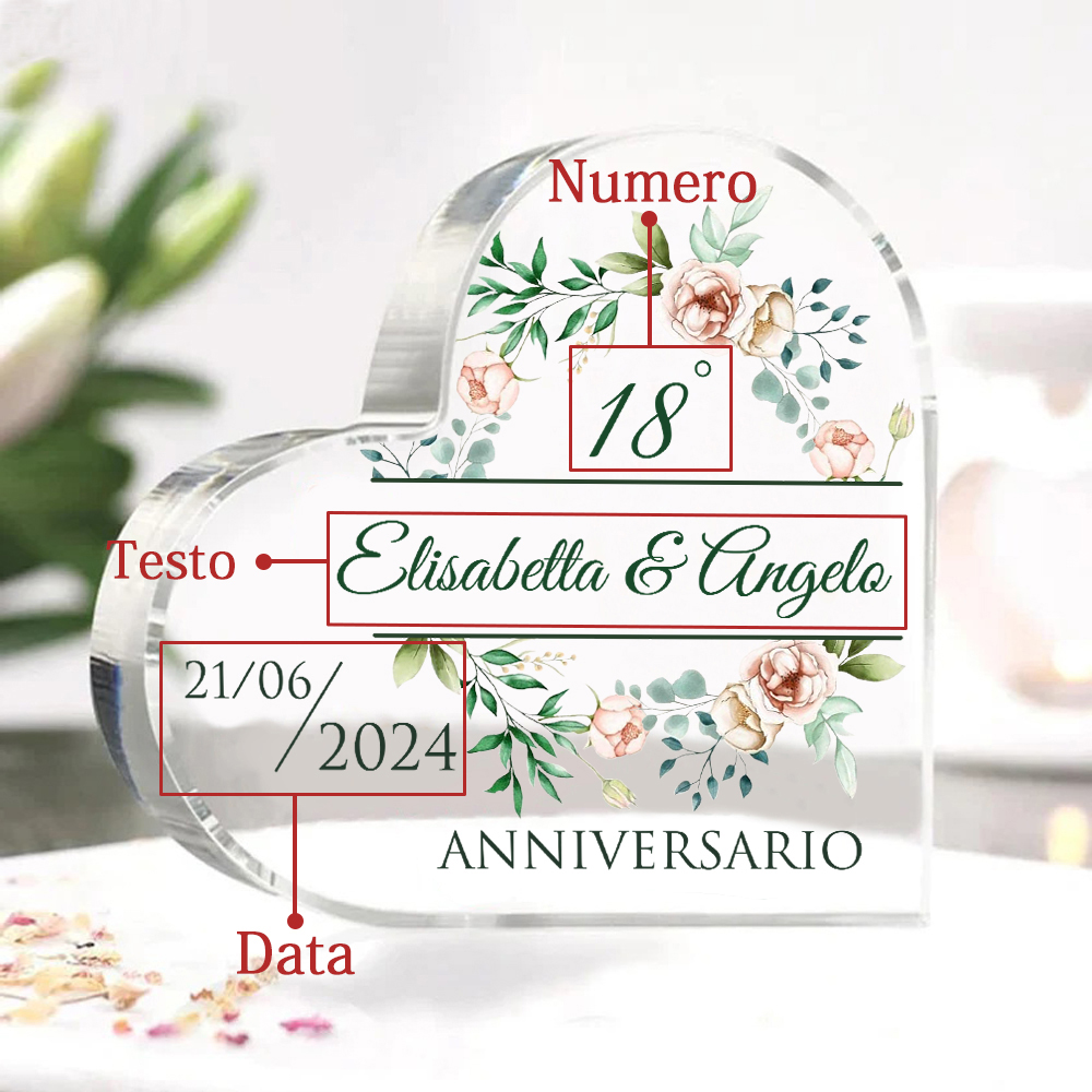 Anniversario-Decorazione acrilica cuore regalo per matrimonio nozze personalizzata con 1 numero e 1 testo e 1 data