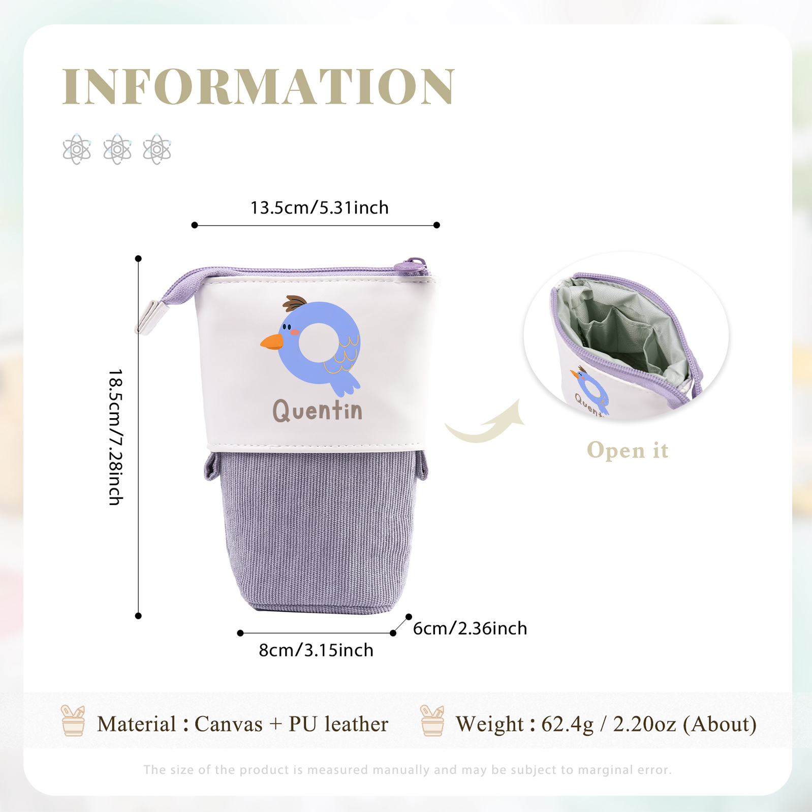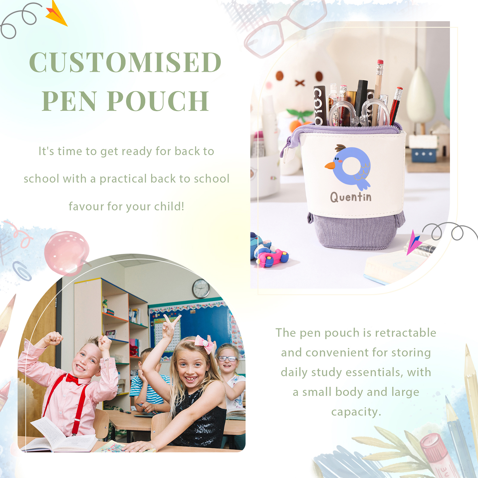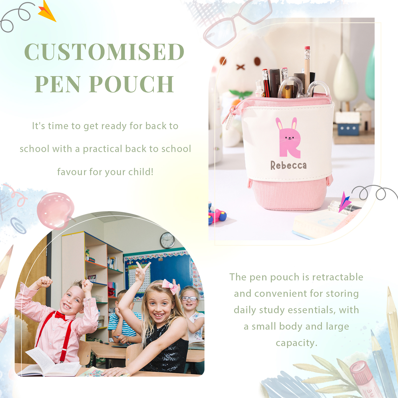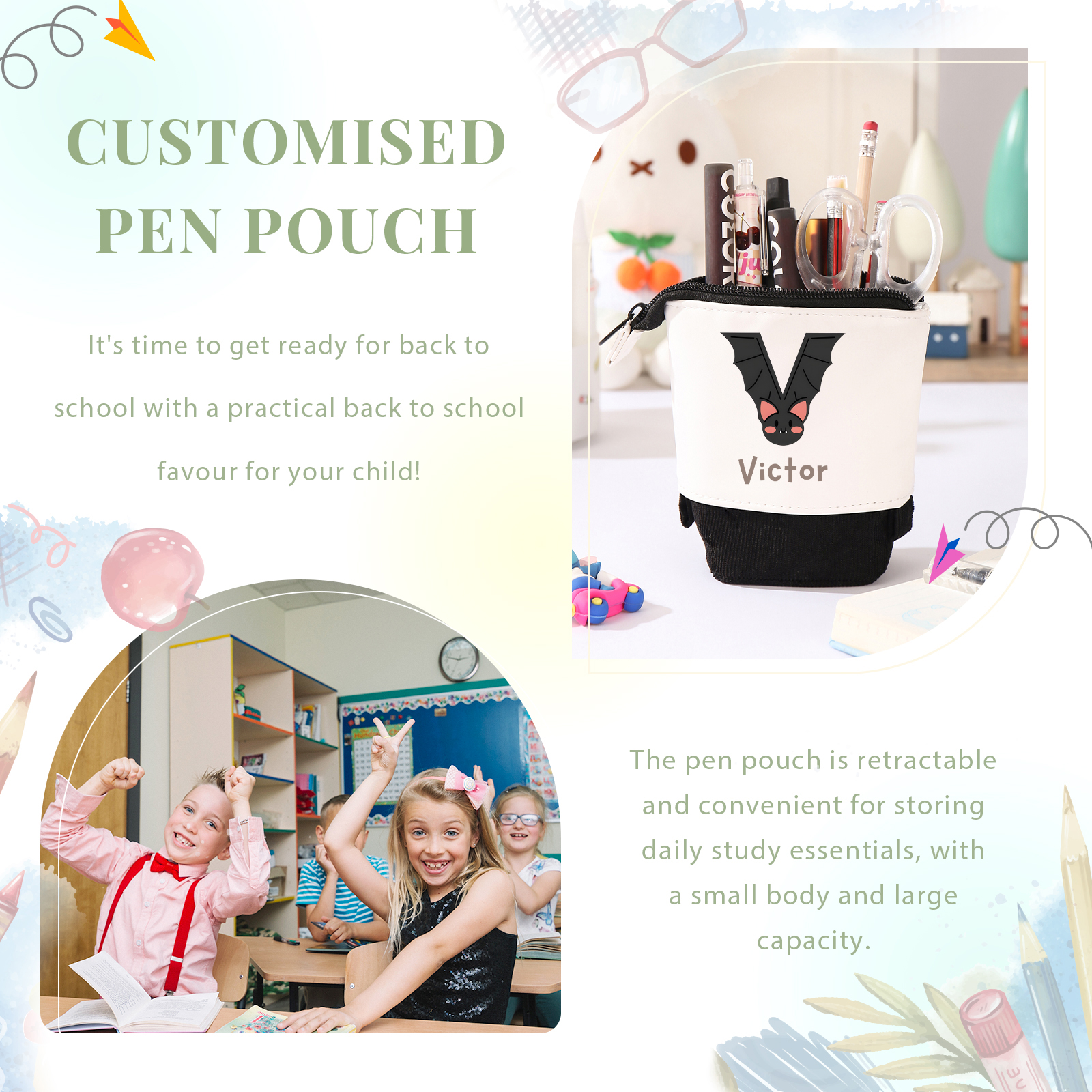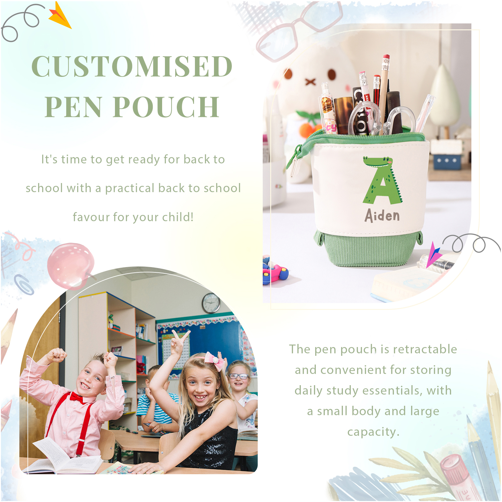 Astuccio per matite lettera di animale personalizzato con 1 nome e 1 lettera regalo per scuola elementare bambini
