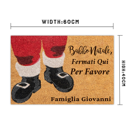Babbo Natale Ferma Per Favore-Zerbino natalizio con testo personalizzato tappeto familiare