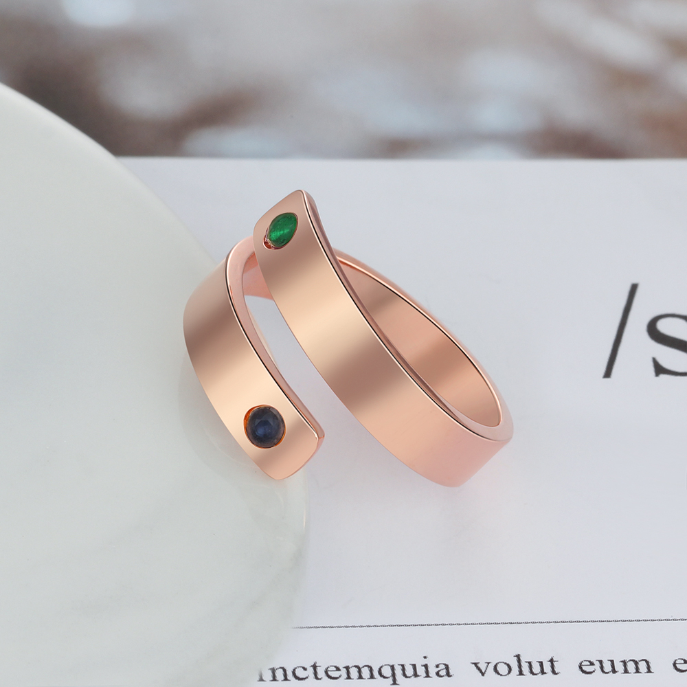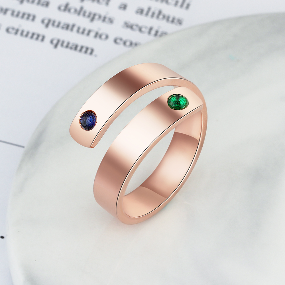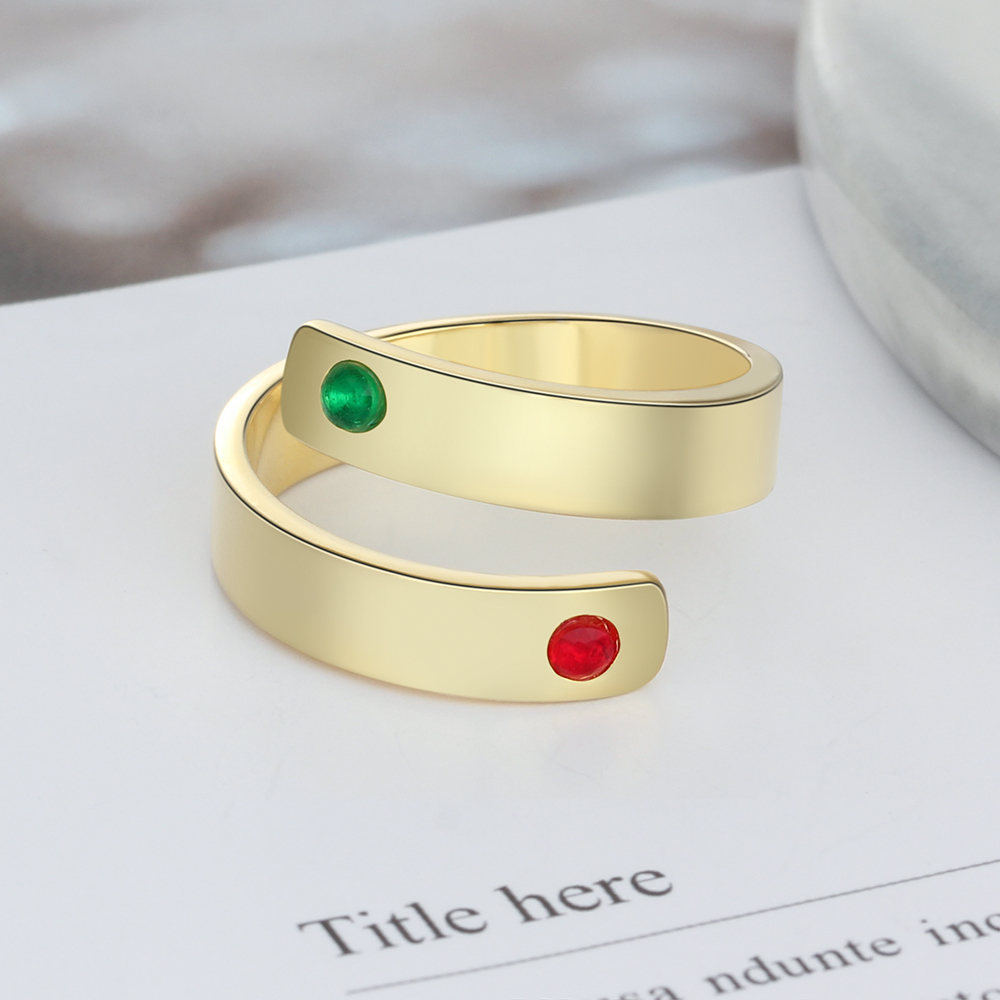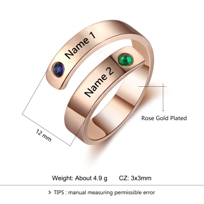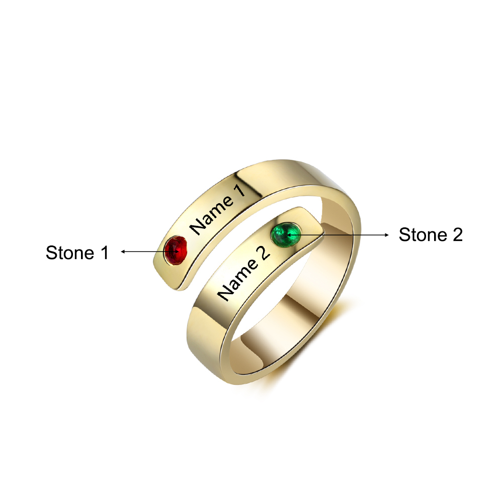 Anello regolabile personalizzato con 2 nomi e 2 pietre di nascita
