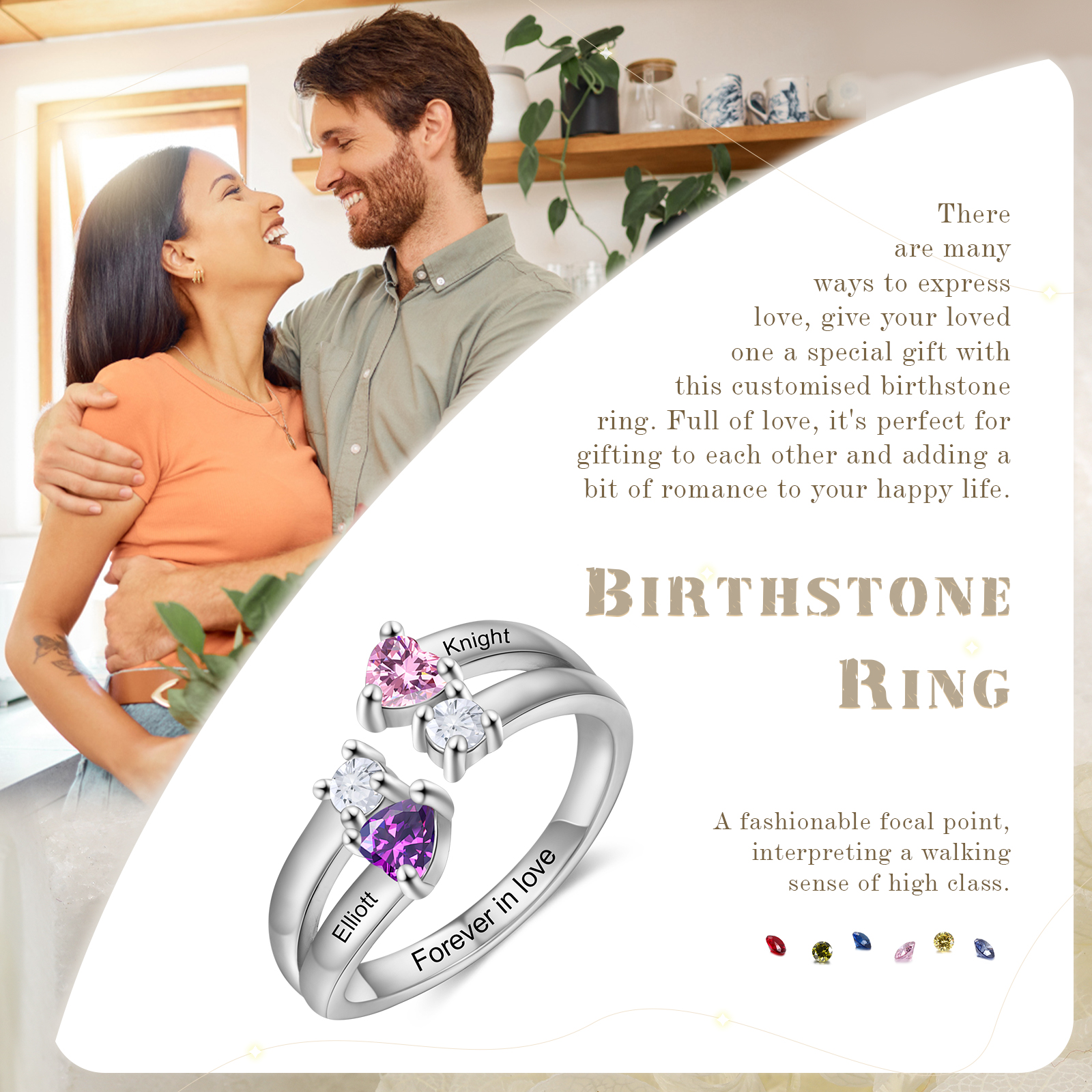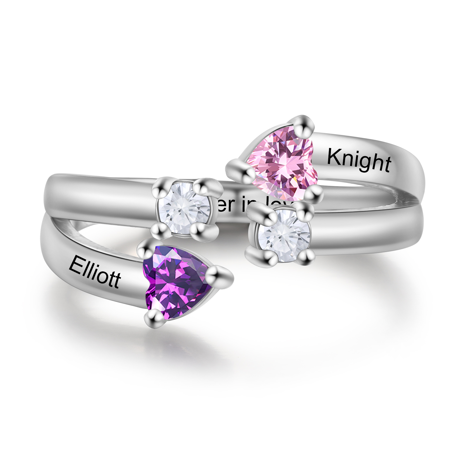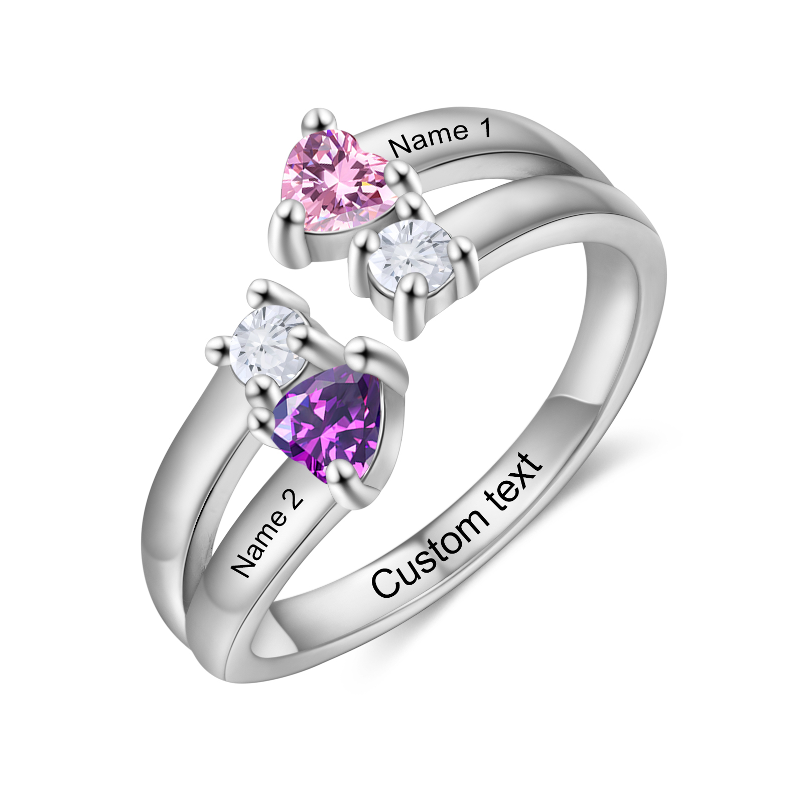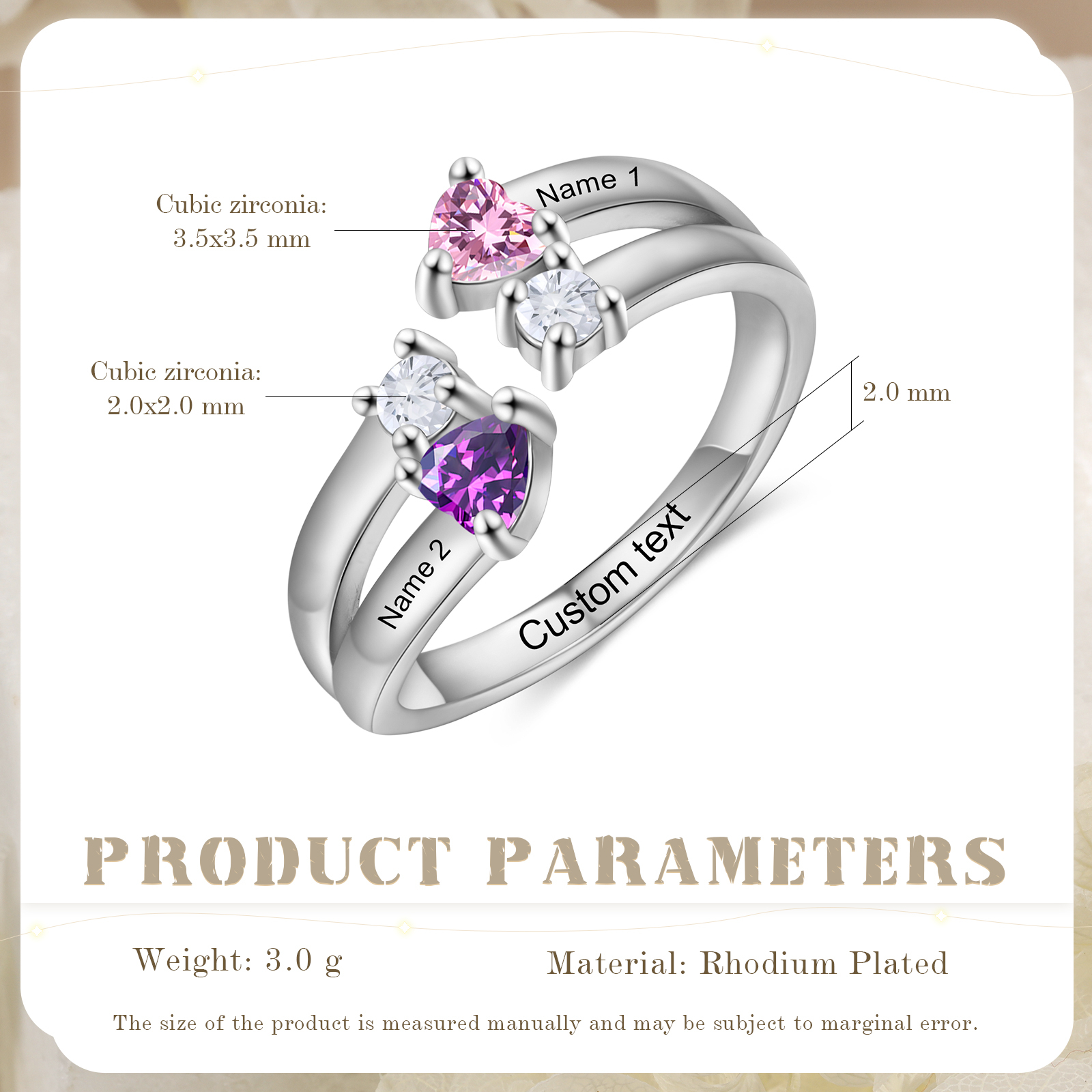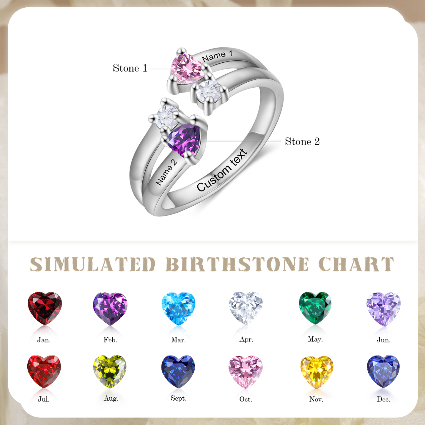 Anello sogno del blu personalizzato con 2 nomi e 2 pietre di nascita per coppia lei matrimonio