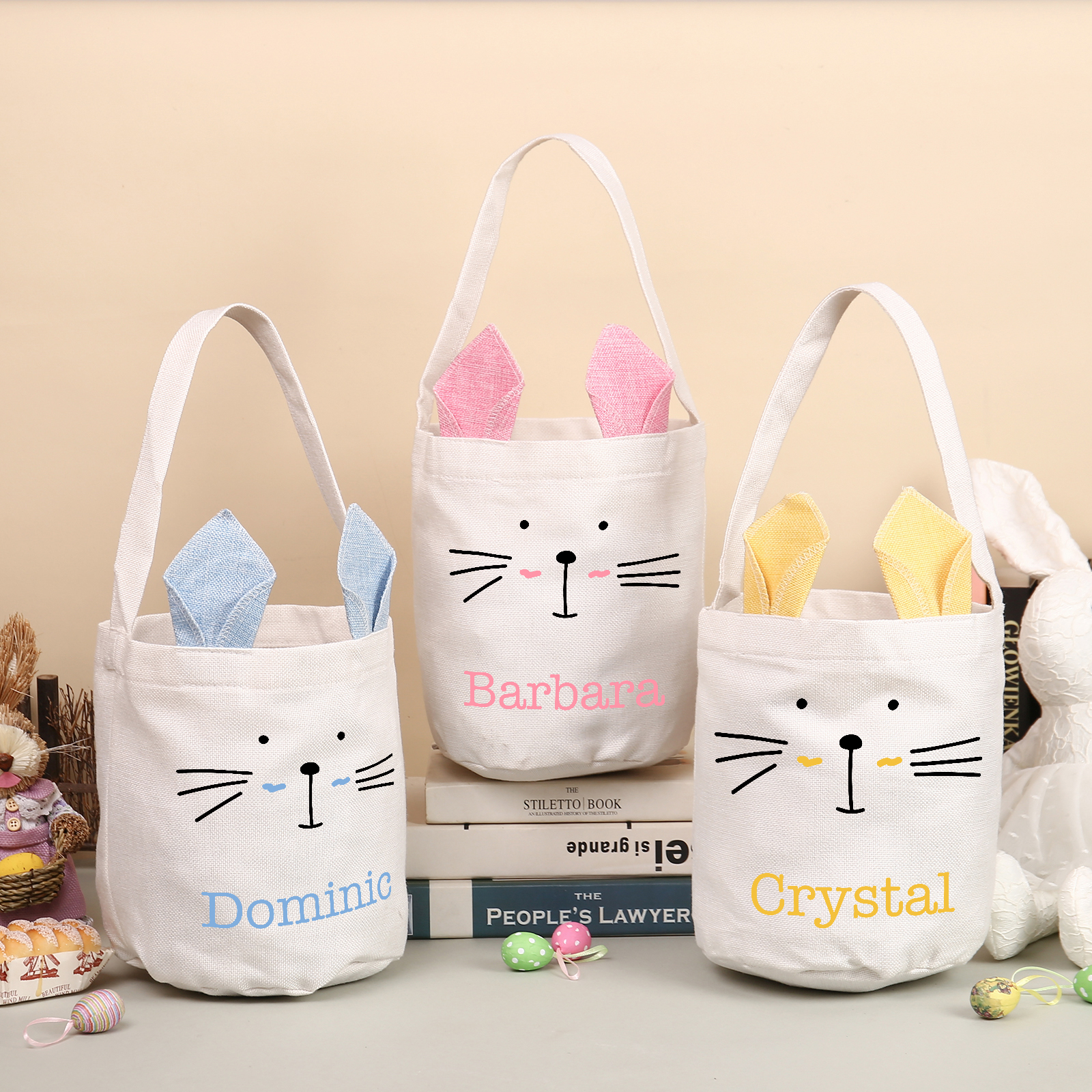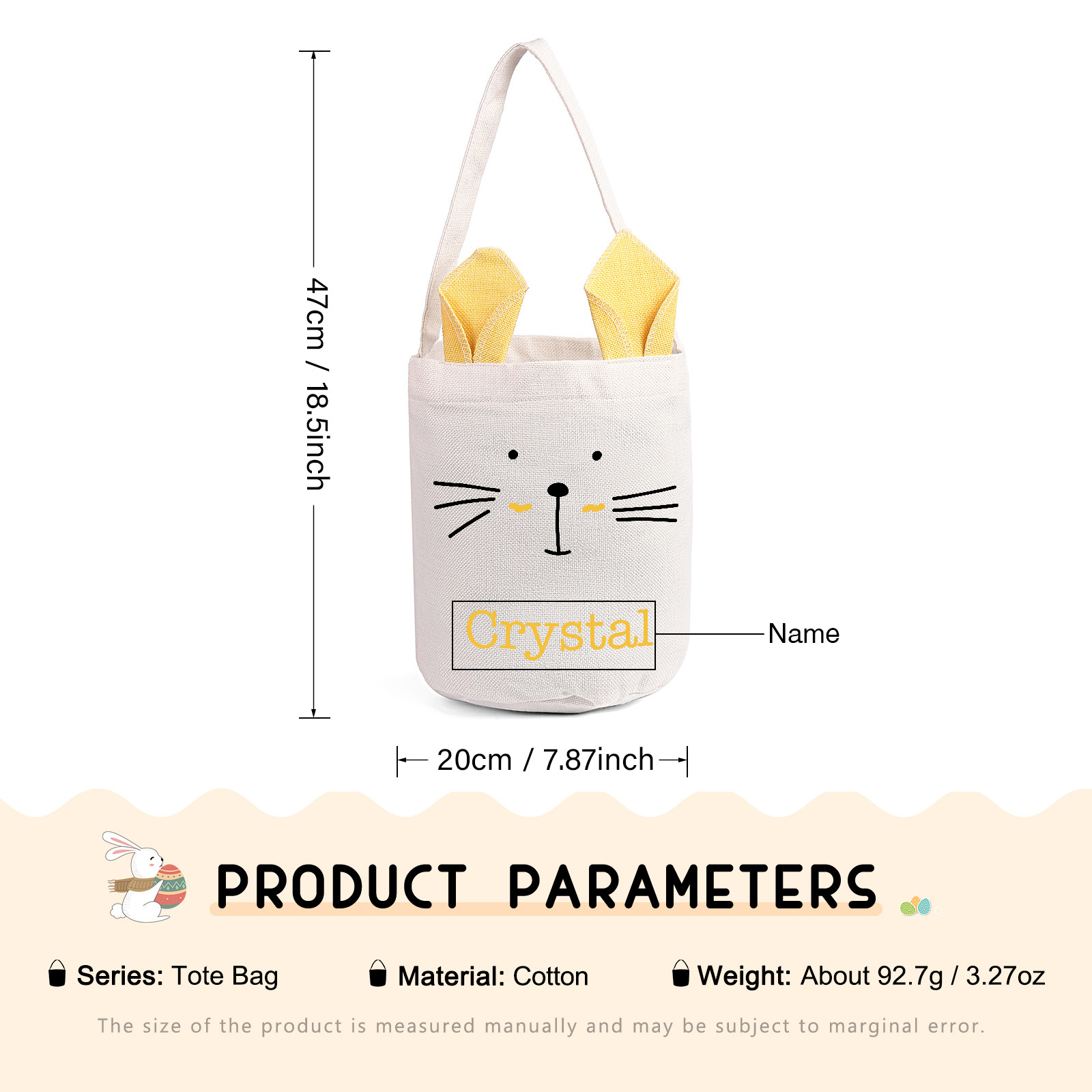 Borsa a tracolla carina per Pasqua in cotone lino 1 nome personalizzato regalo per Pasqua