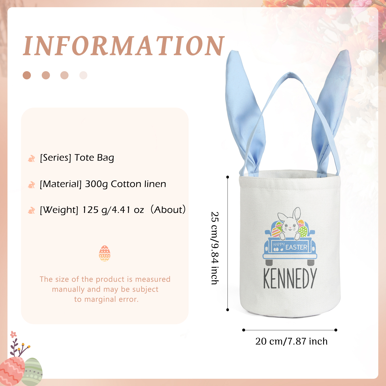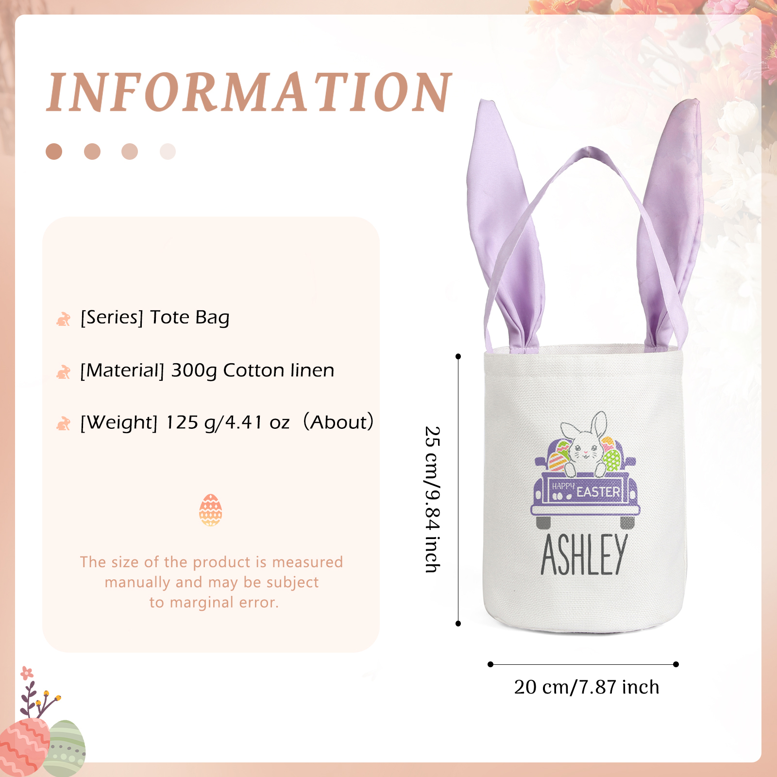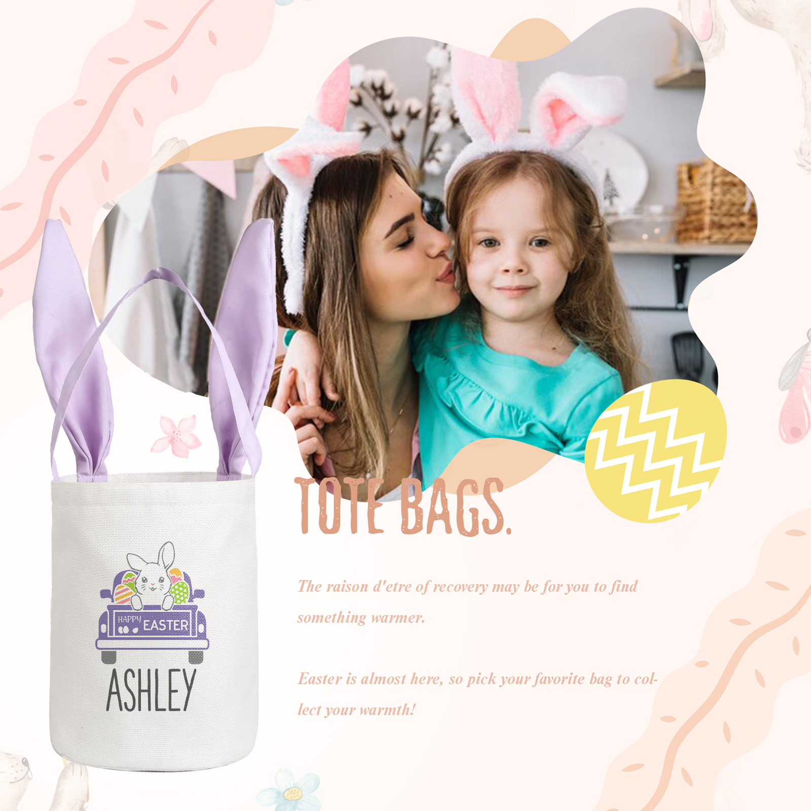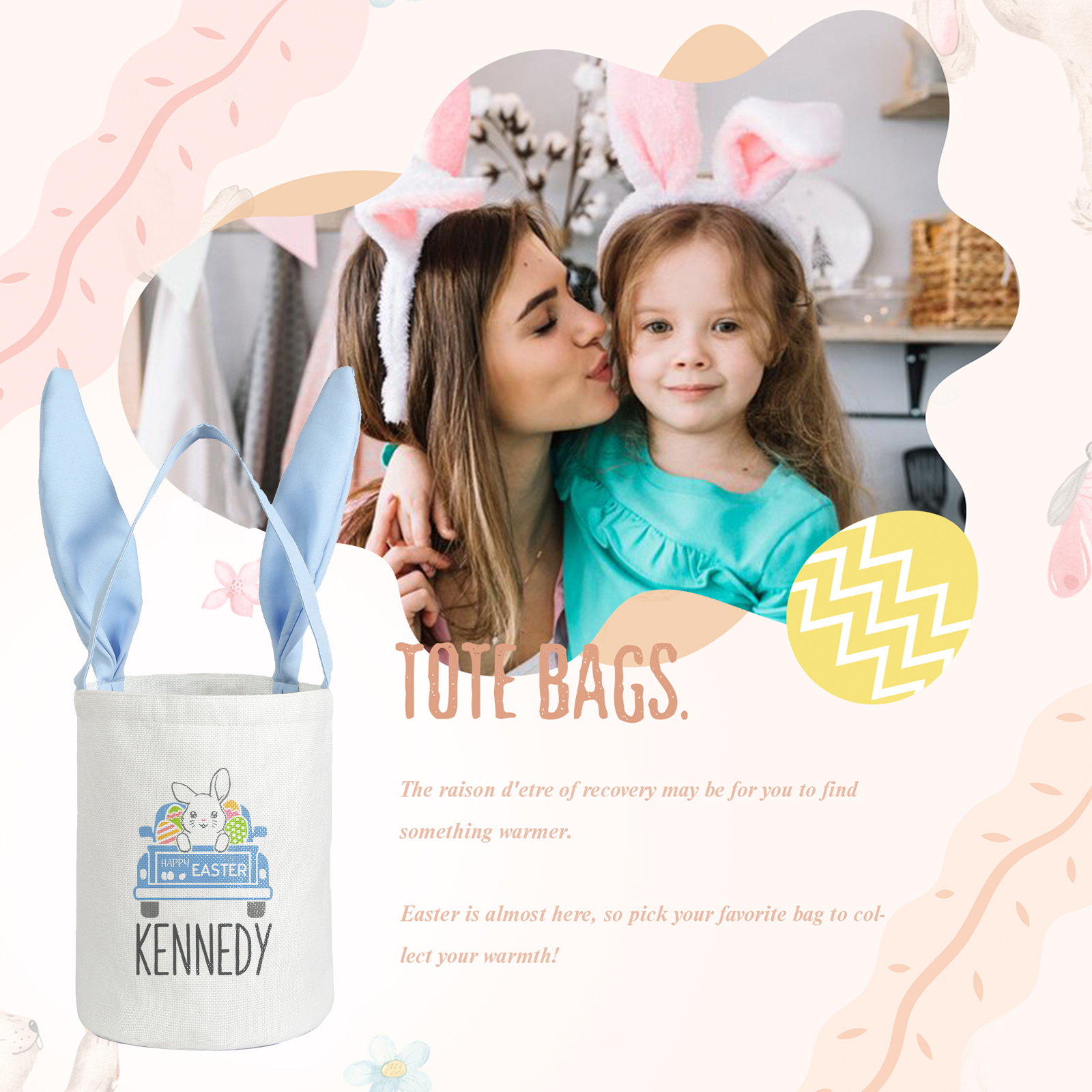 Borsa a tracolla per Pasqua in cotone lino 1 nome e 1 testo personalizzati regalo per Pasqua