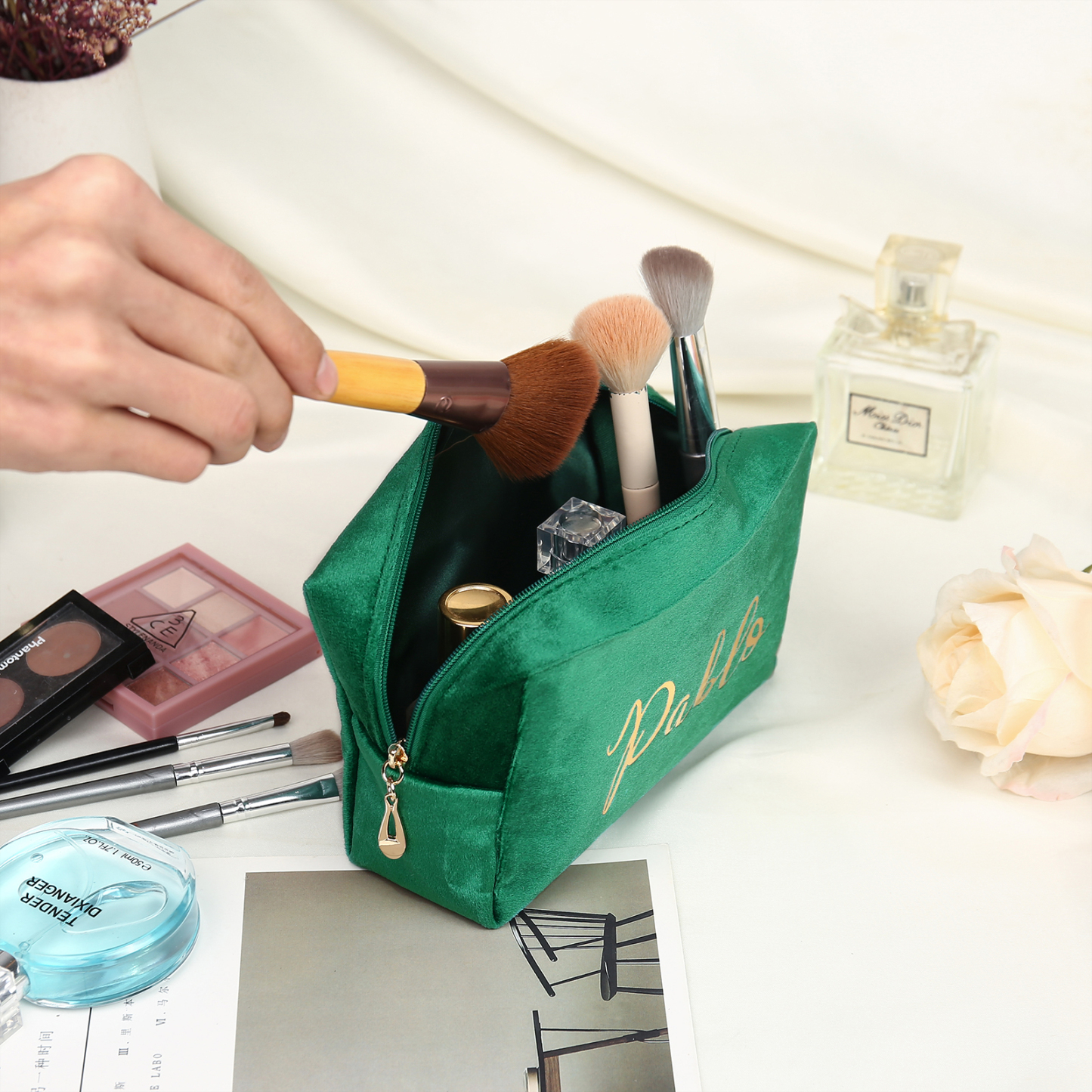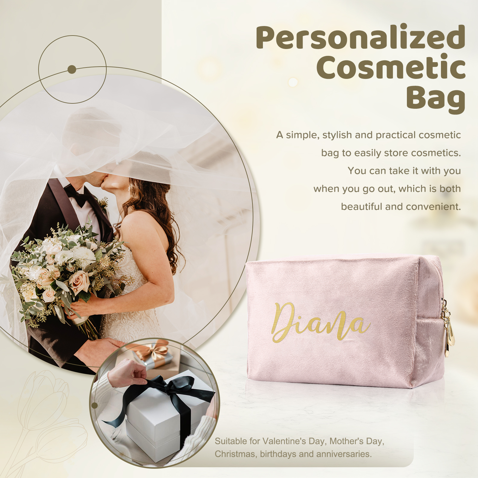 Borsa per cosmetici in flanella per donna 1 nome personalizzato regalo per donna