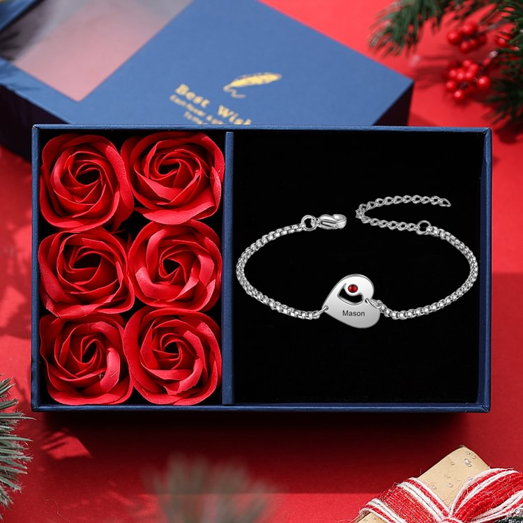 Bracciale a cuore da donna nome e pietra di nascita personalizzati