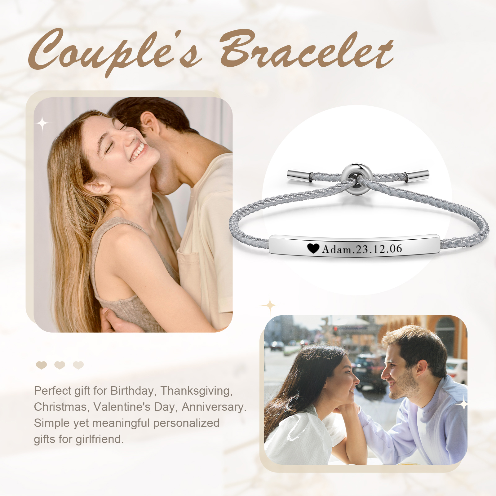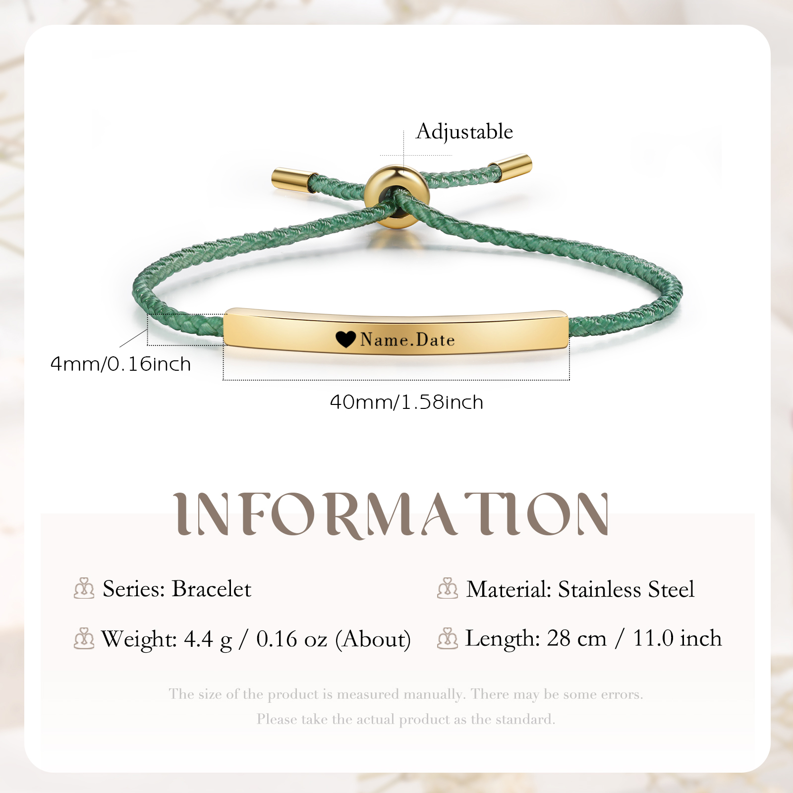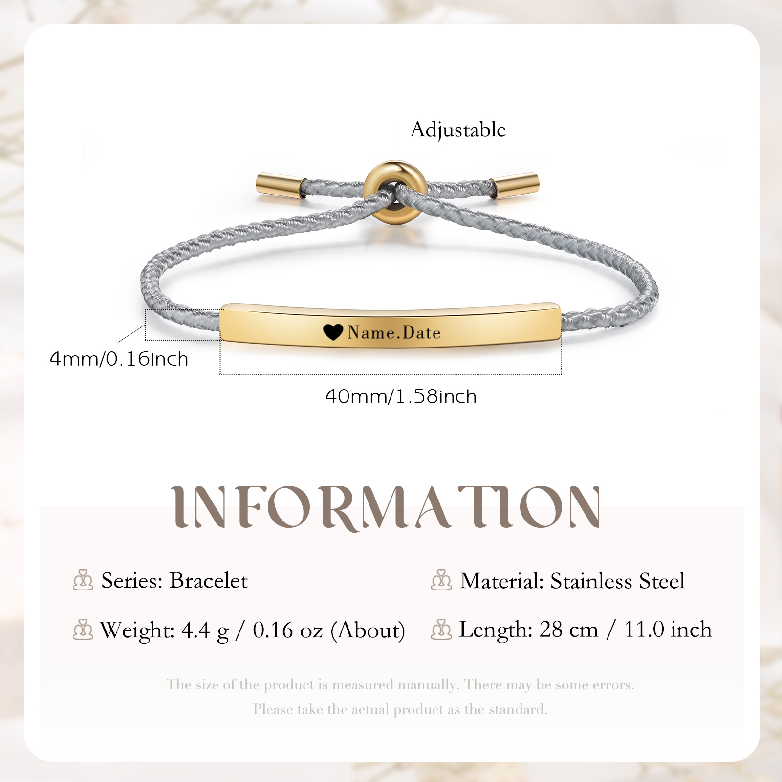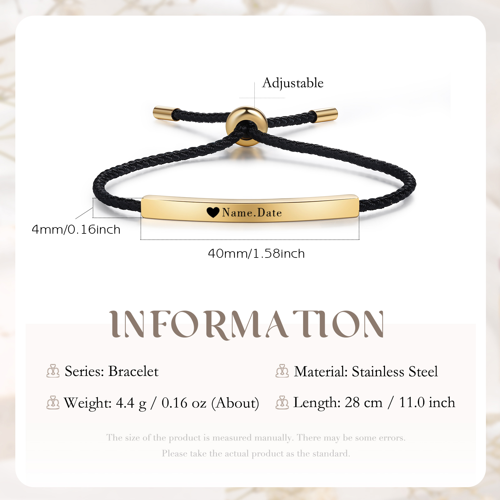 Bracciale acciaio inox 1 nome e 1 data personalizzati multicolori da sceglier