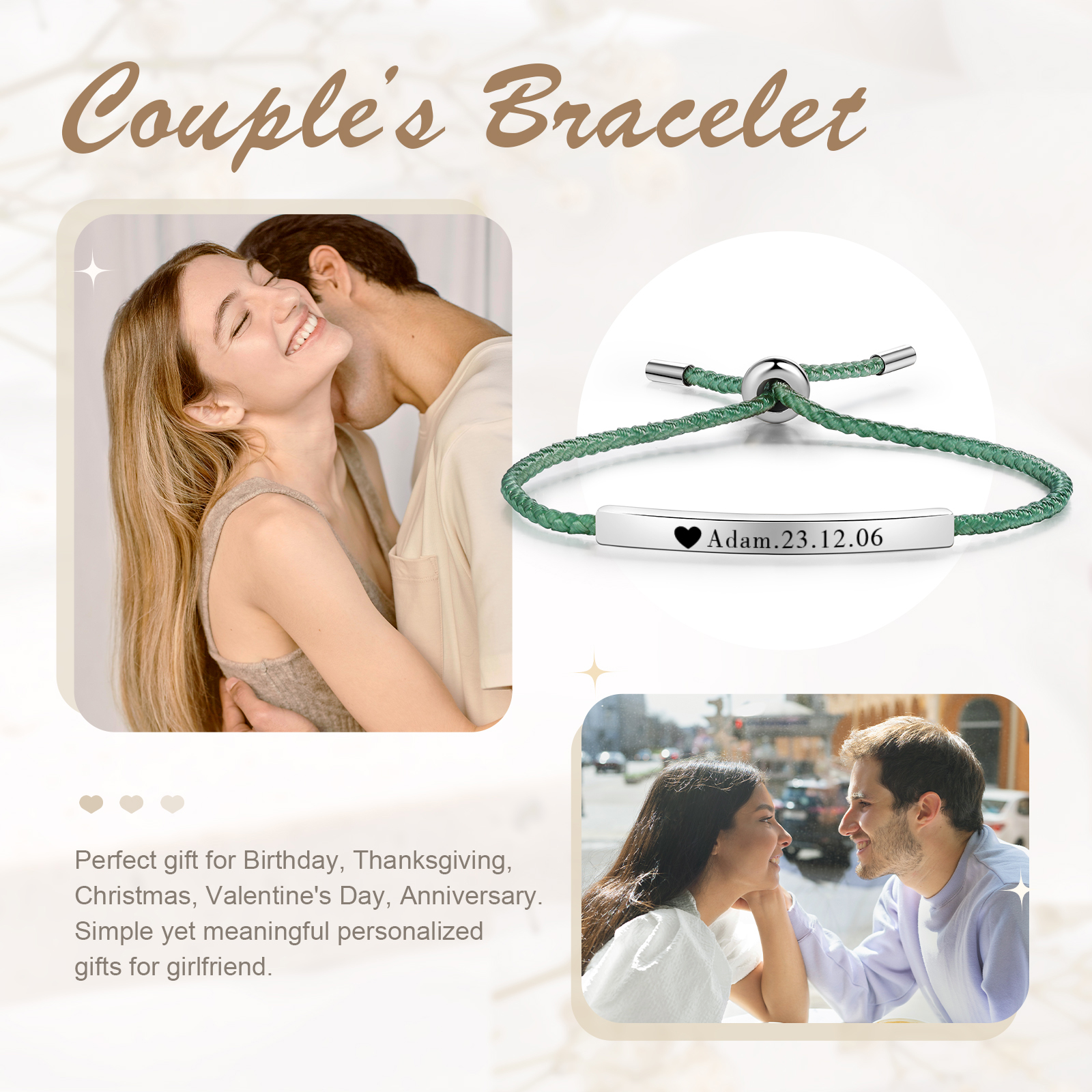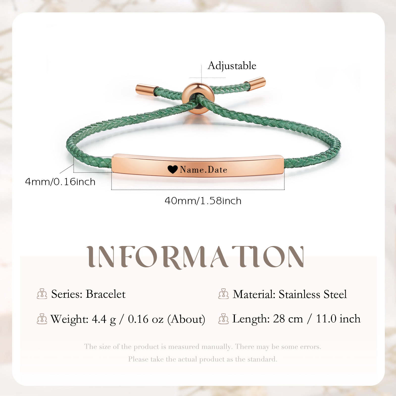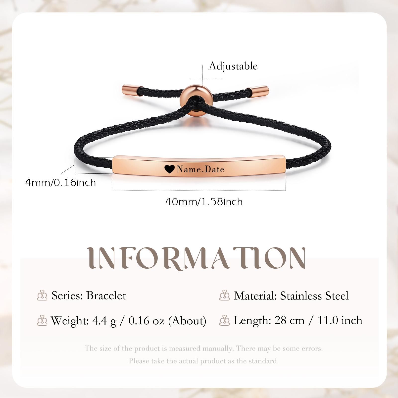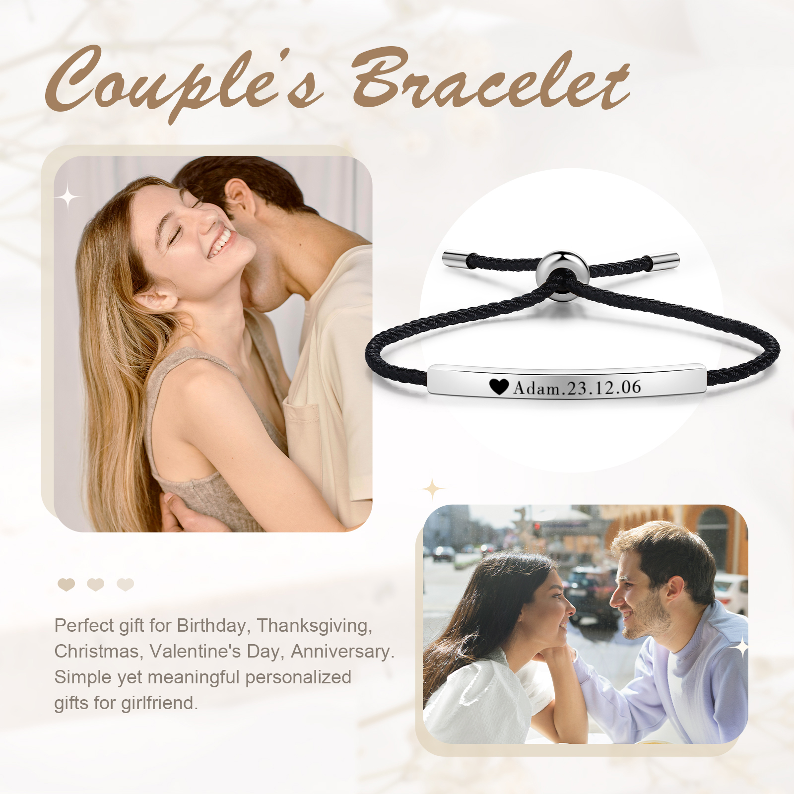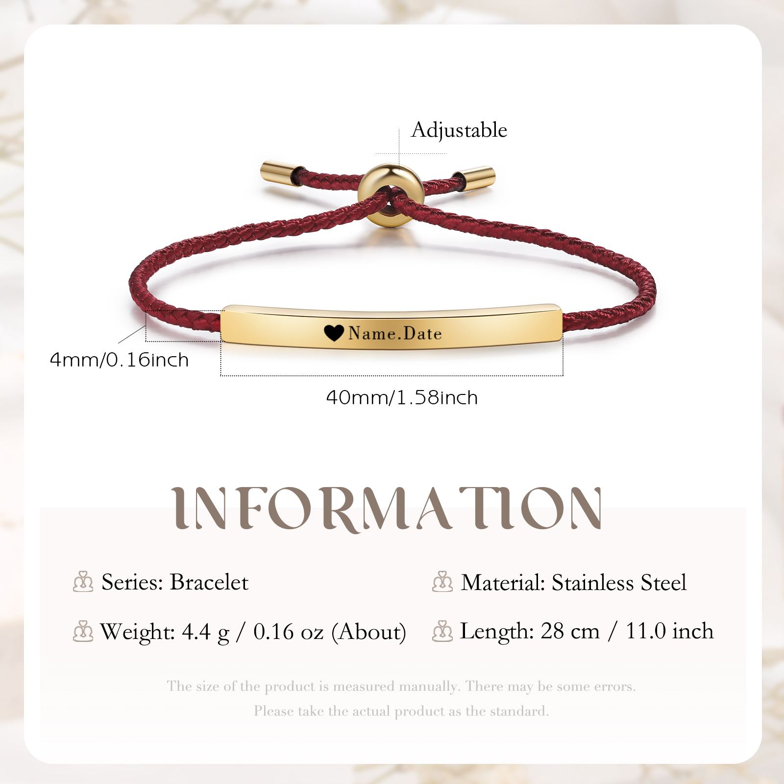 Bracciale acciaio inox 1 nome e 1 data personalizzati multicolori da sceglier