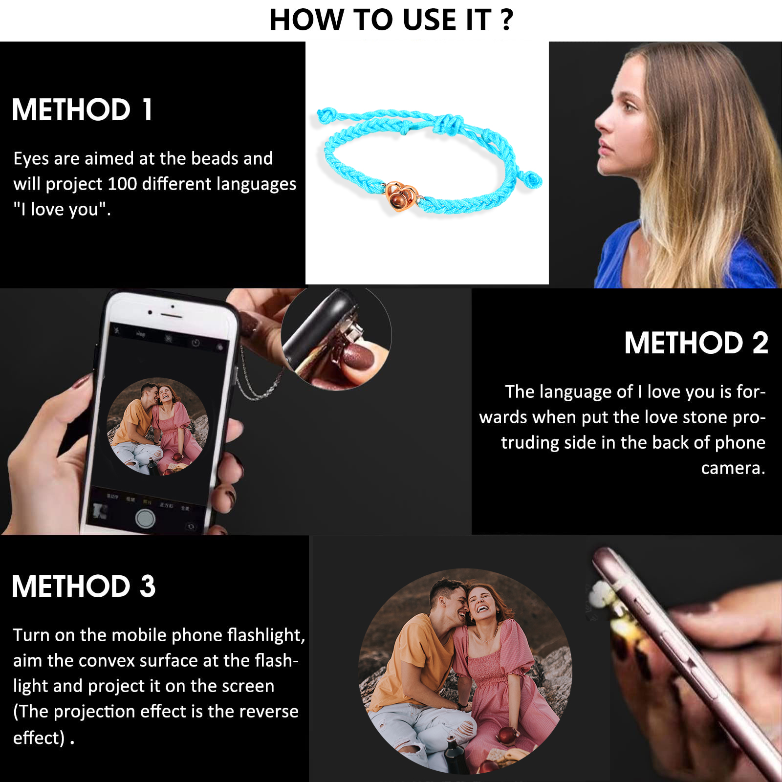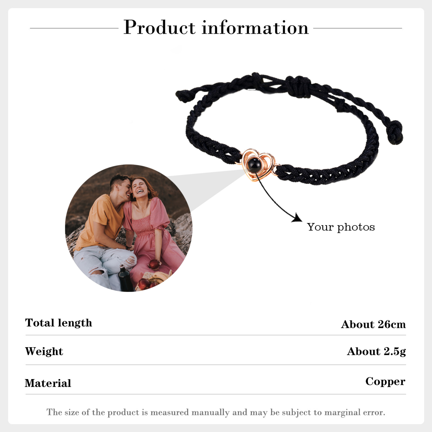 Bracciale in corda con pietra proiezione di foto per coppia marito moglie fidanzati