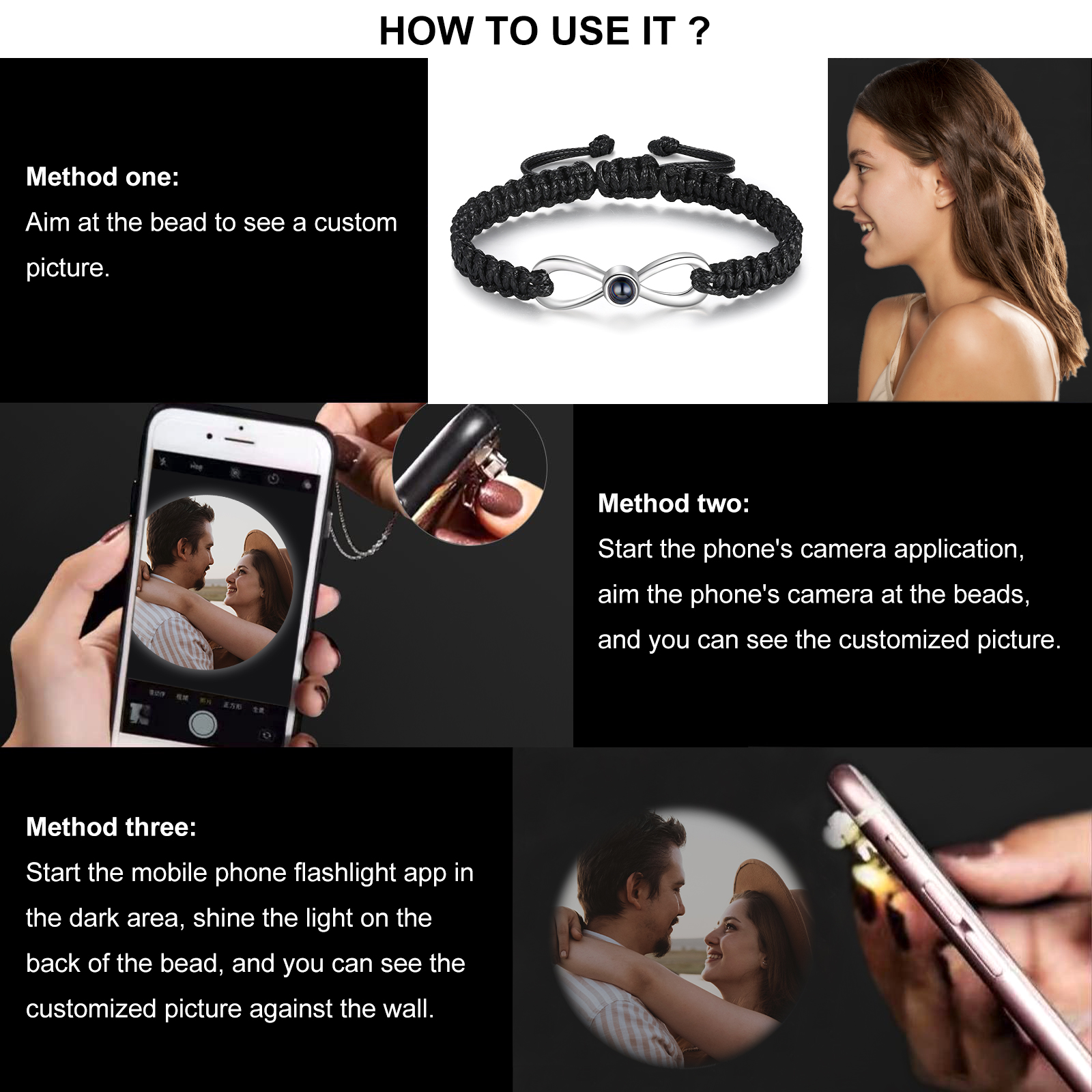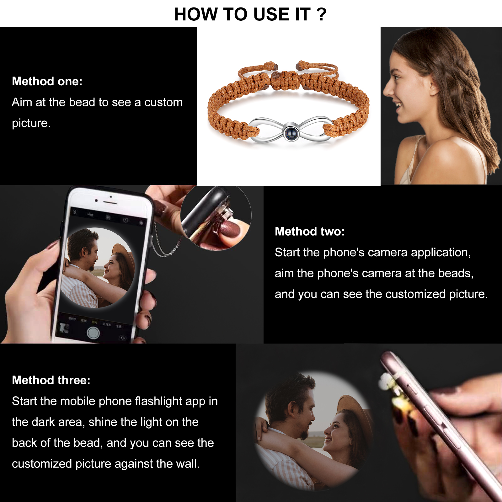 Bracciale in corda con pietra proiezione di foto per coppia marito moglie fidanzati