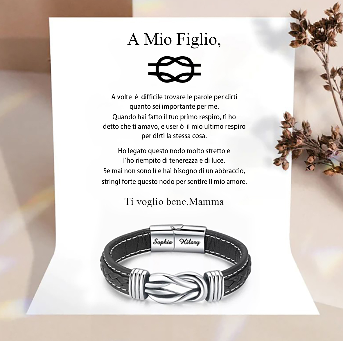 Bracciale per mio figlio con 2 nomi personalizzabili carta emozionale