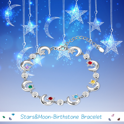 Bracciale Luna 6 nomi personalizzati con 6 pietre di nascita