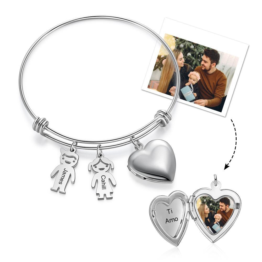 Bracciale personalizzabile con 2 nomi foto e ciondoli di bambino