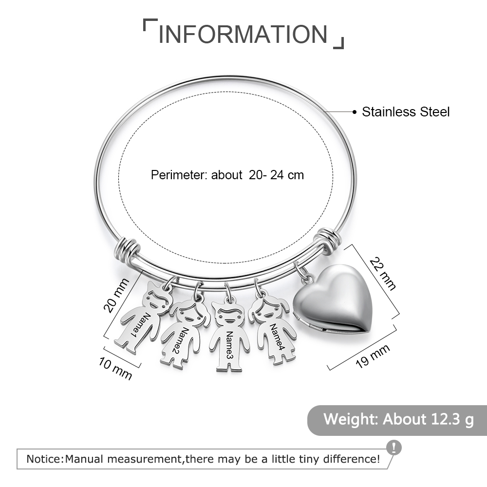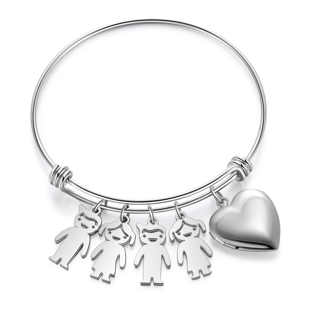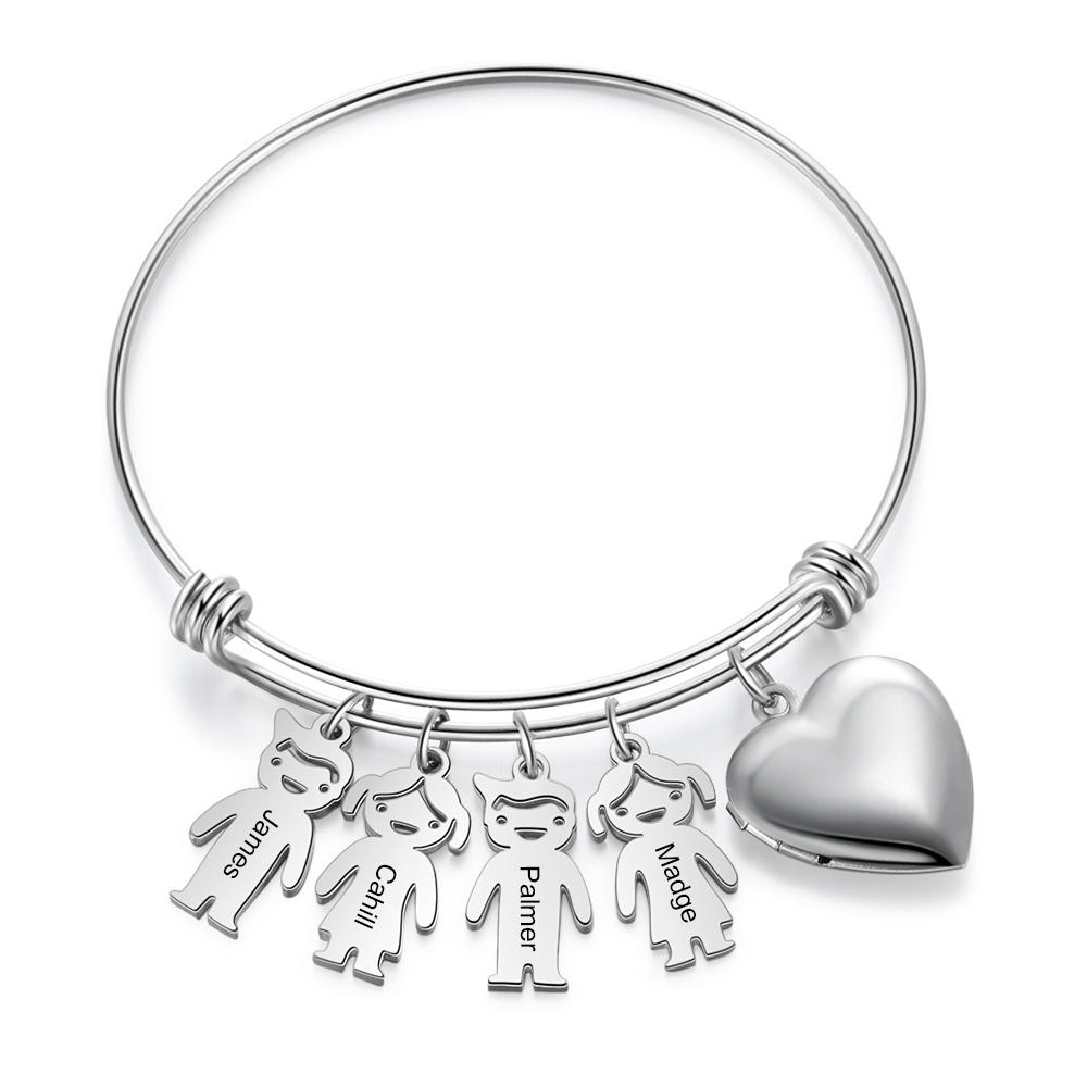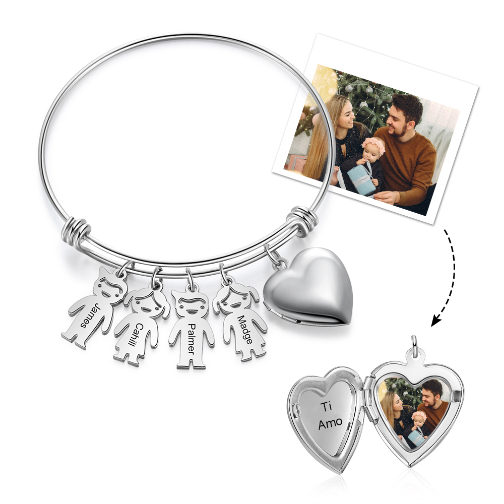 Bracciale personalizzabile con 4 nomi foto e ciondoli di bambino