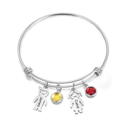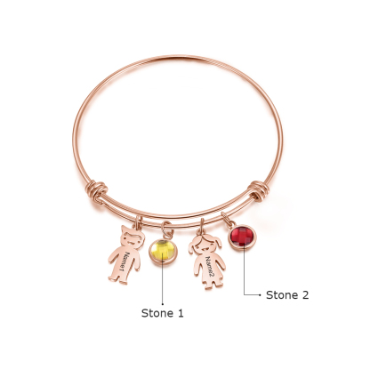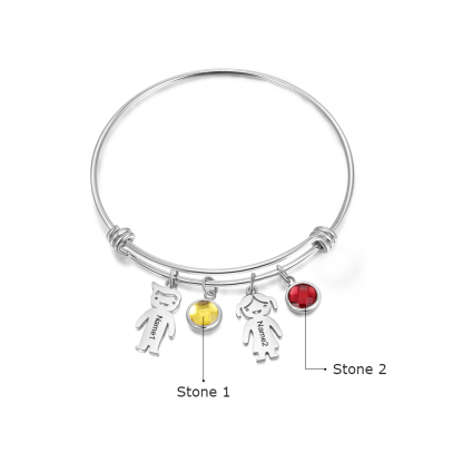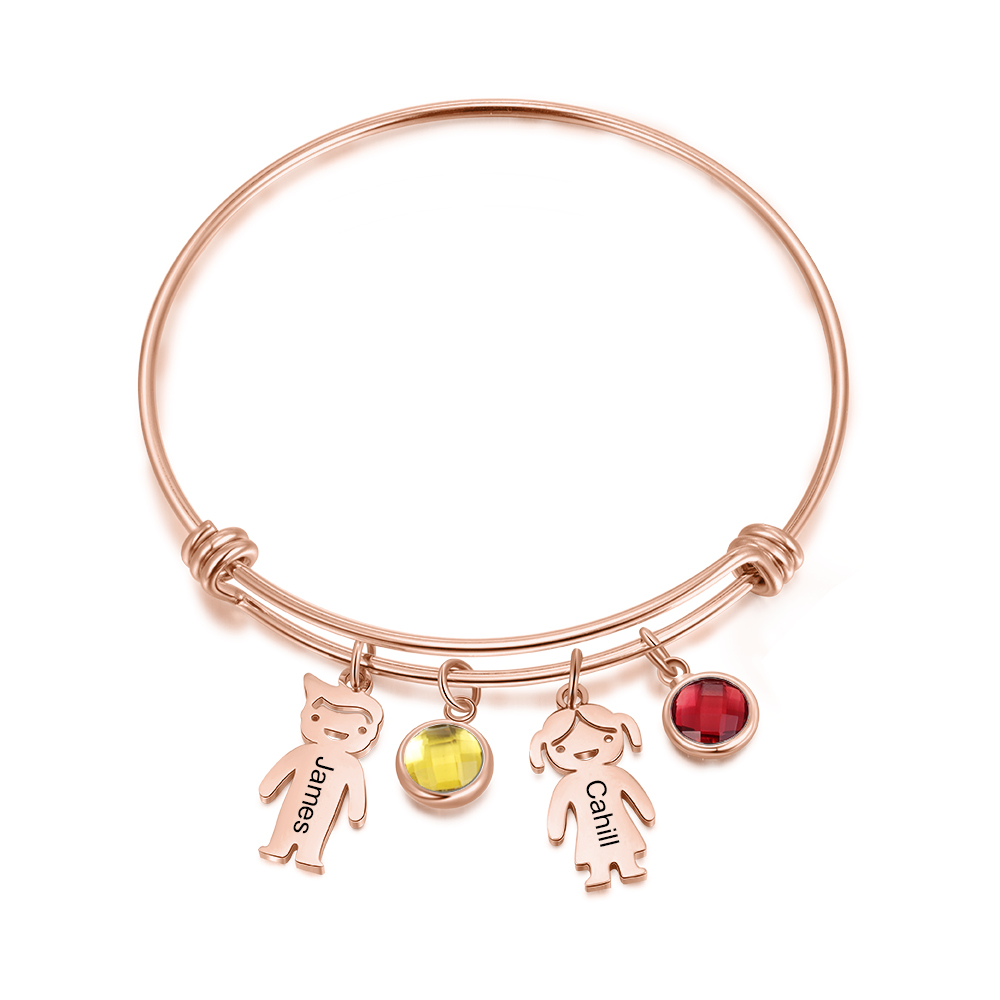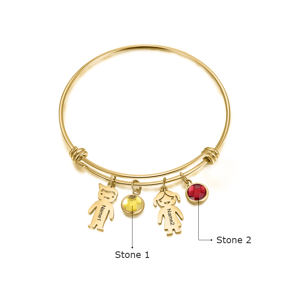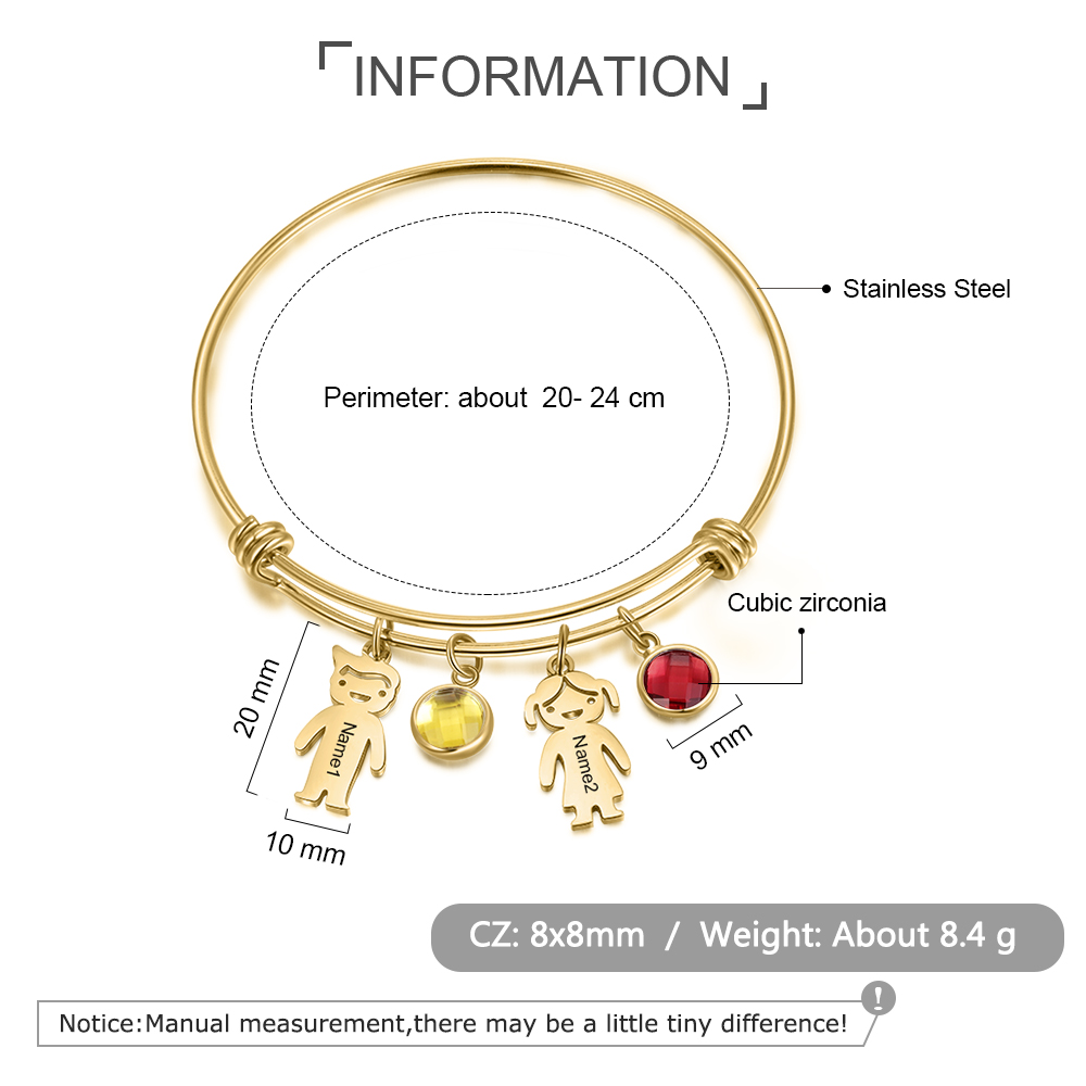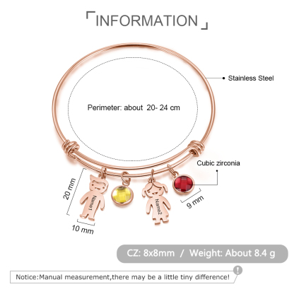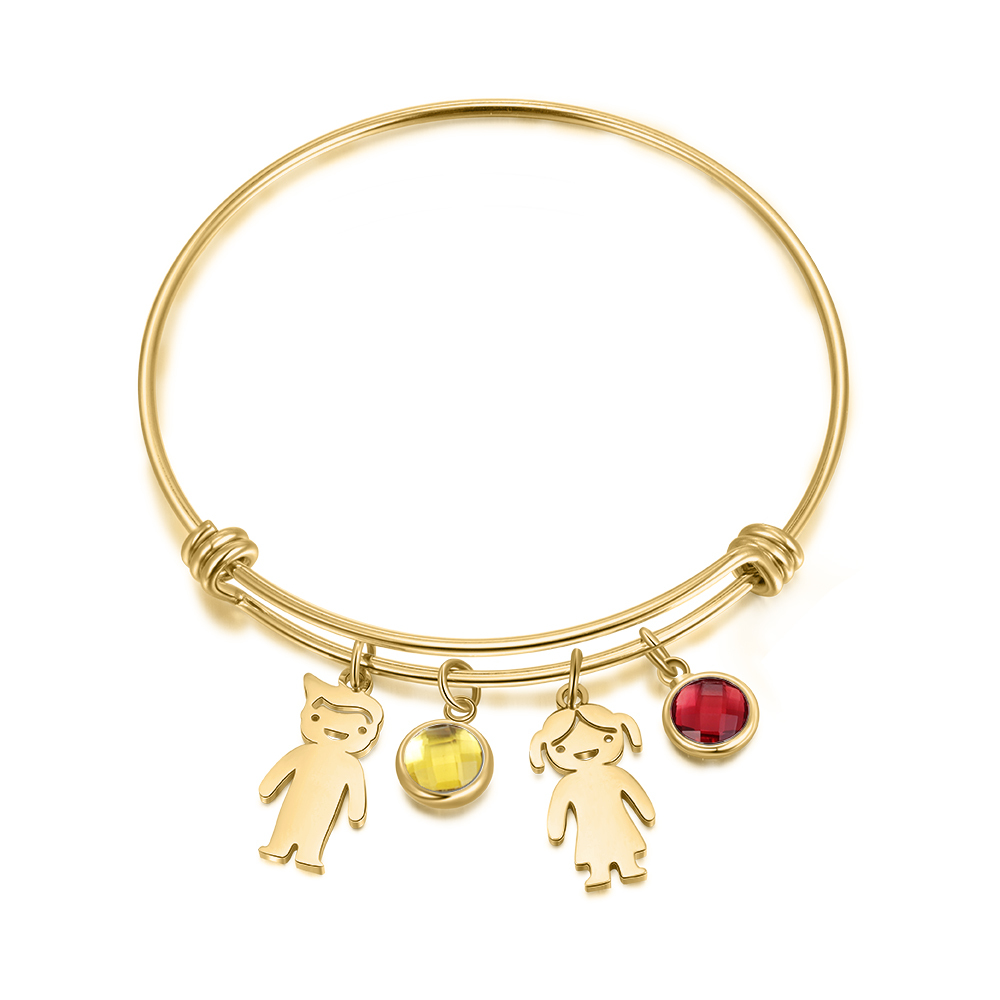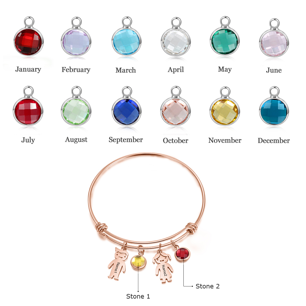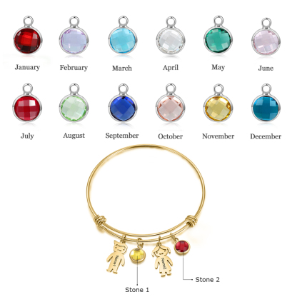 Bracciale regolabile Jessemade con 2 ciondoli per bambini e 2 pietre di nascita