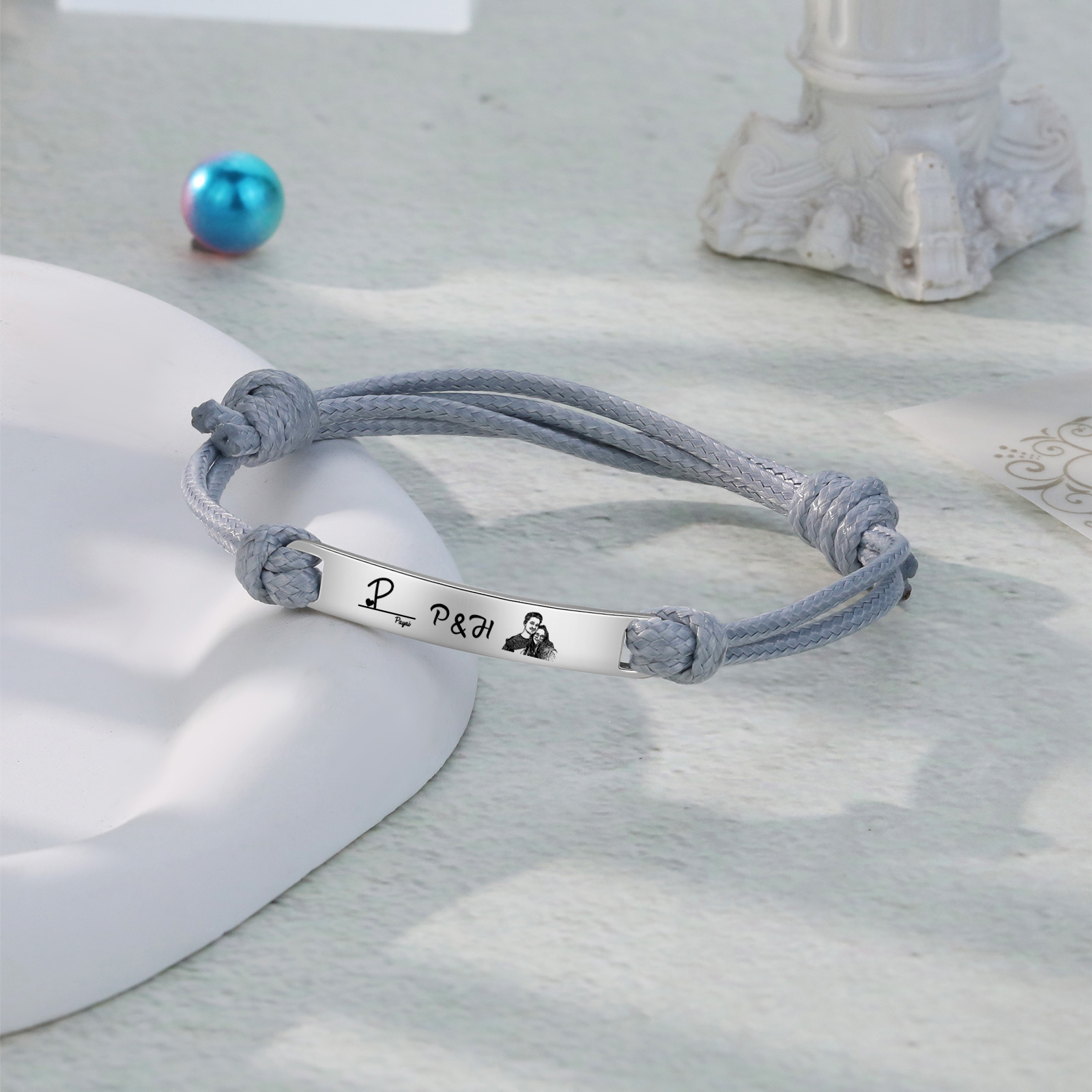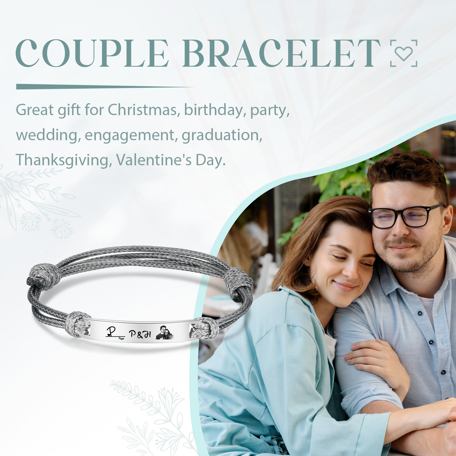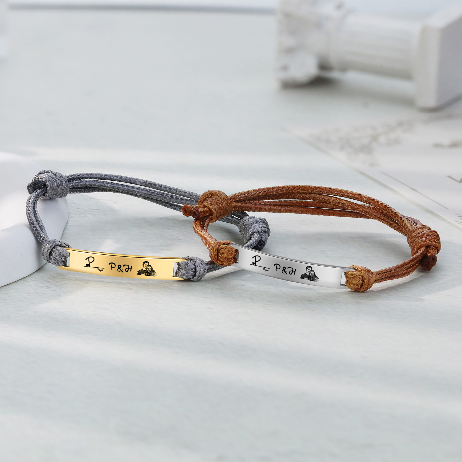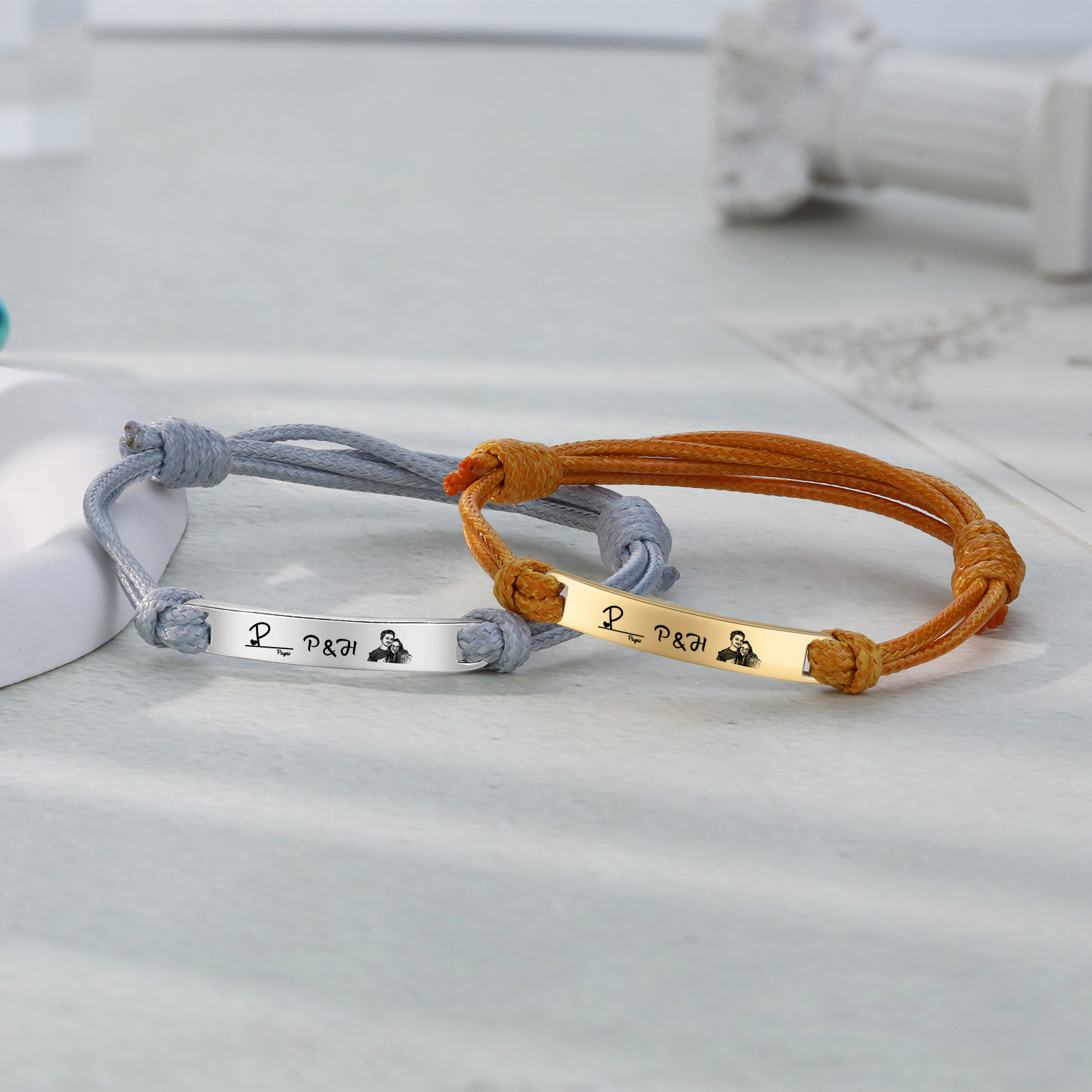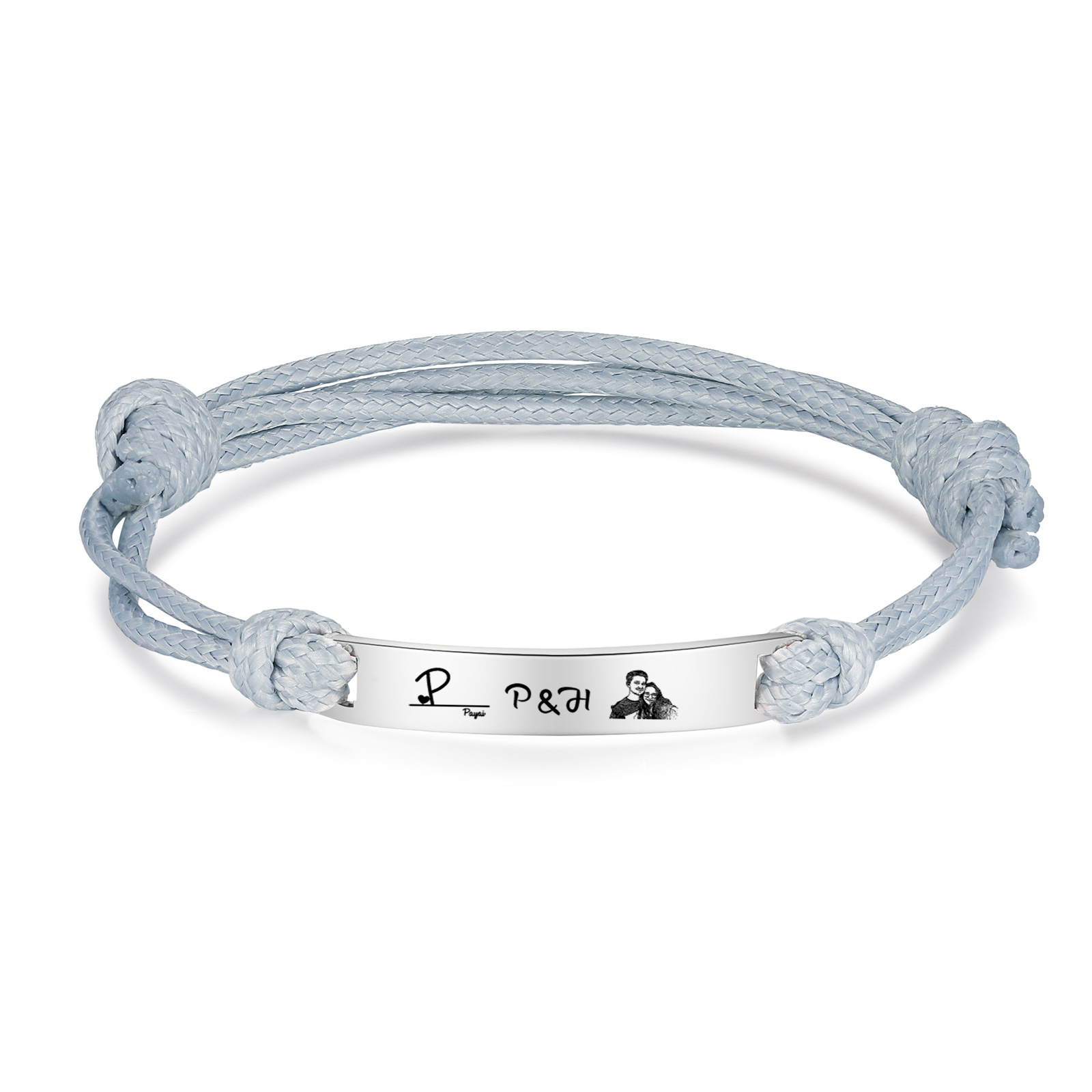 Braccialetti acciaio inox 1 nome 3 lettere e 1 foto personalizzabili per coppia multicolori da scegliere