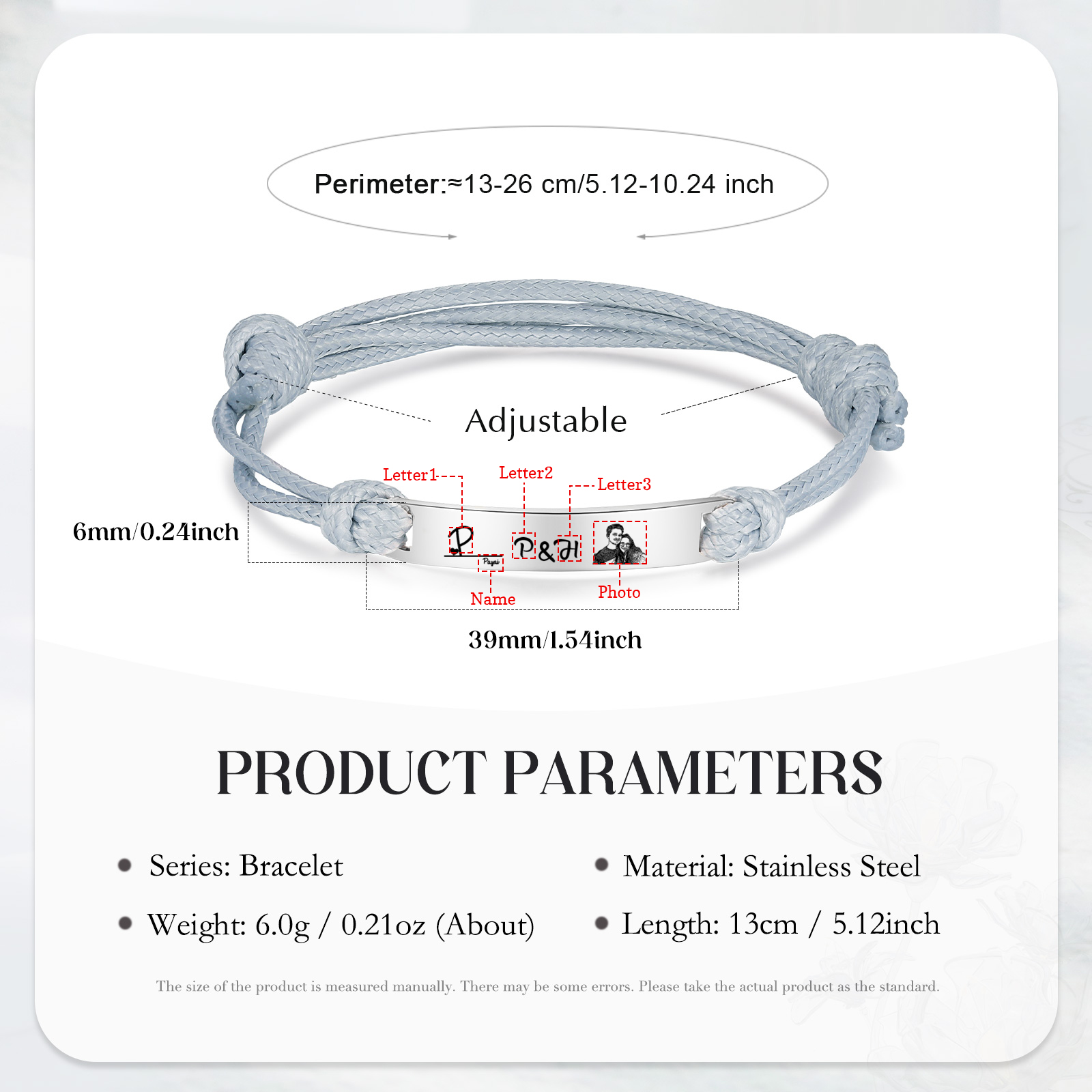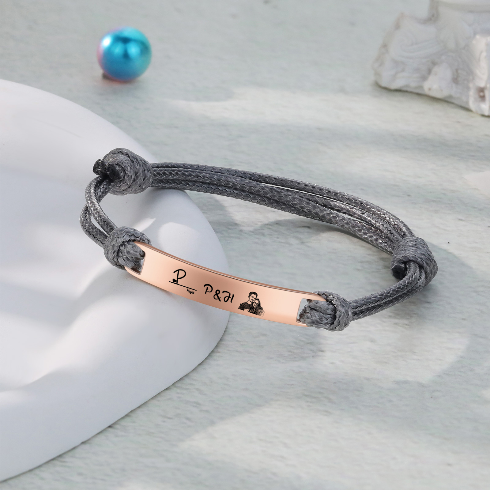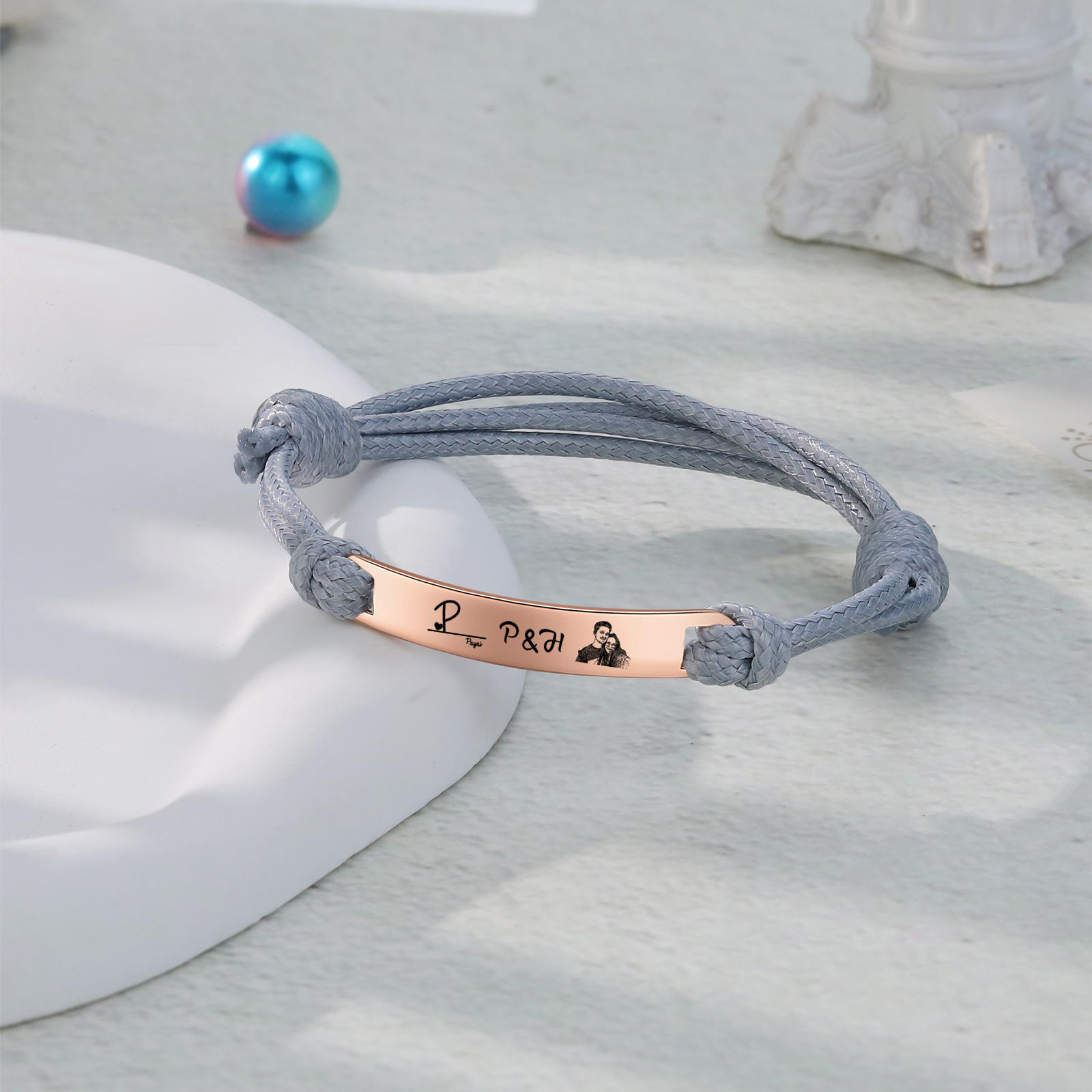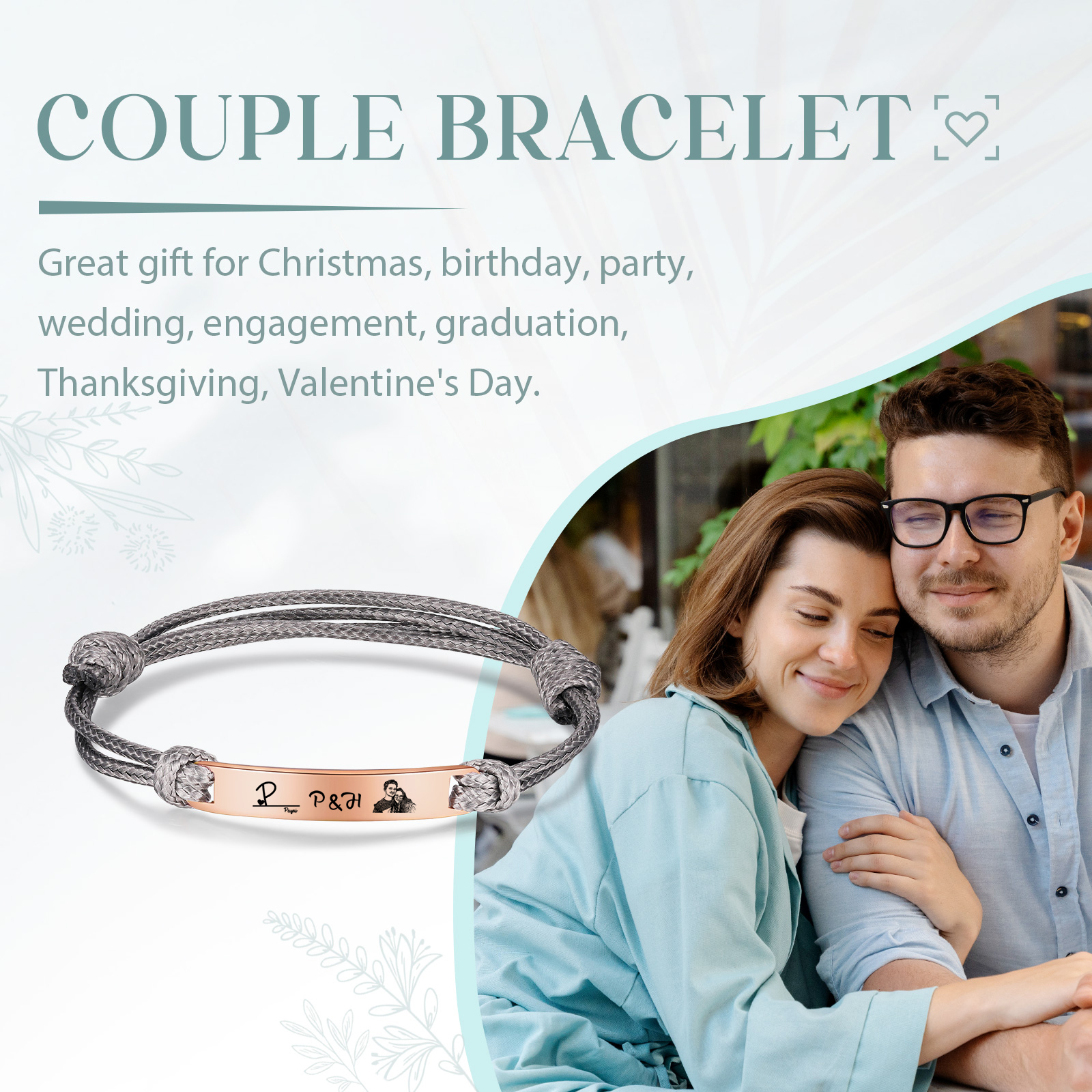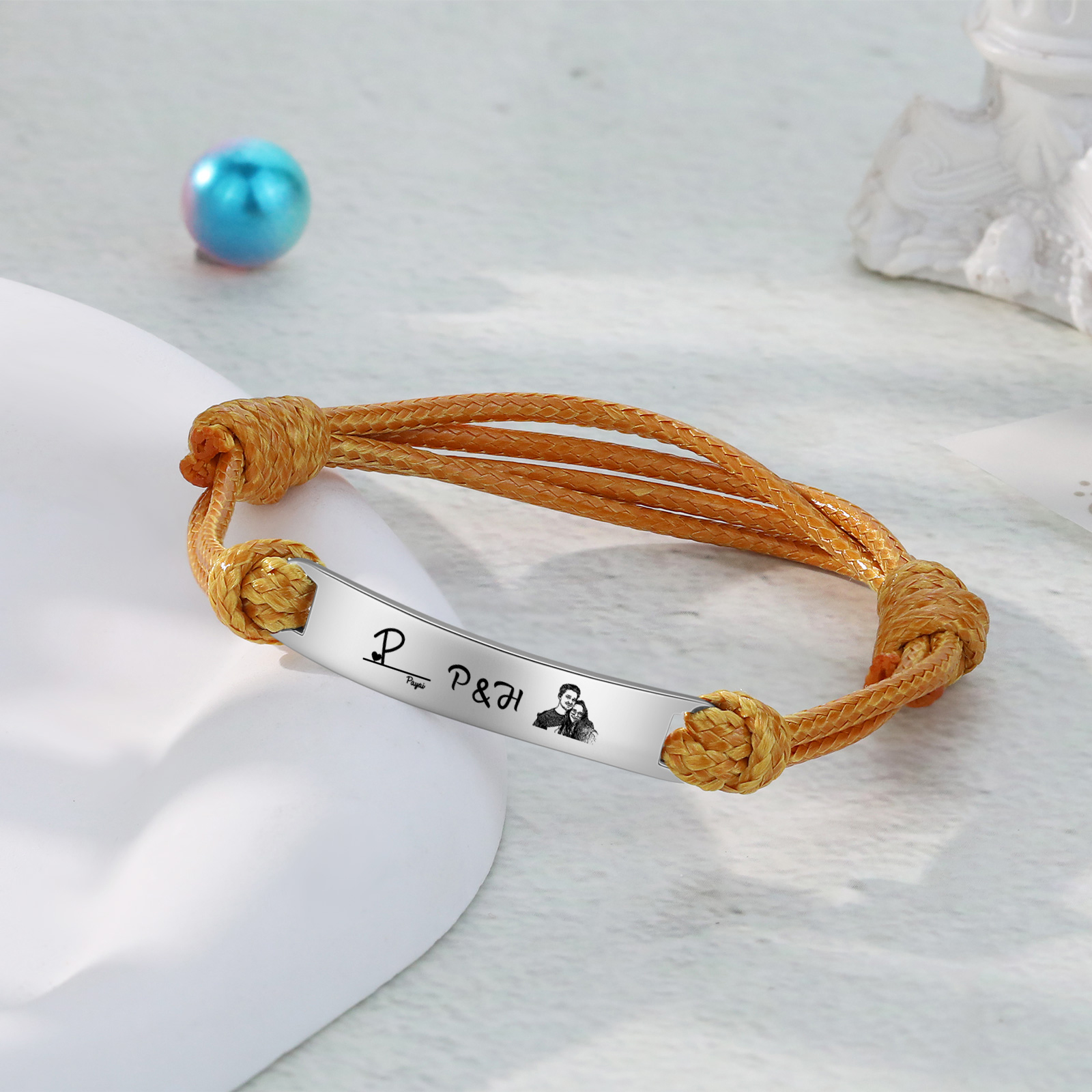 Braccialetti acciaio inox 1 nome 3 lettere e 1 foto personalizzabili per coppia multicolori da scegliere
