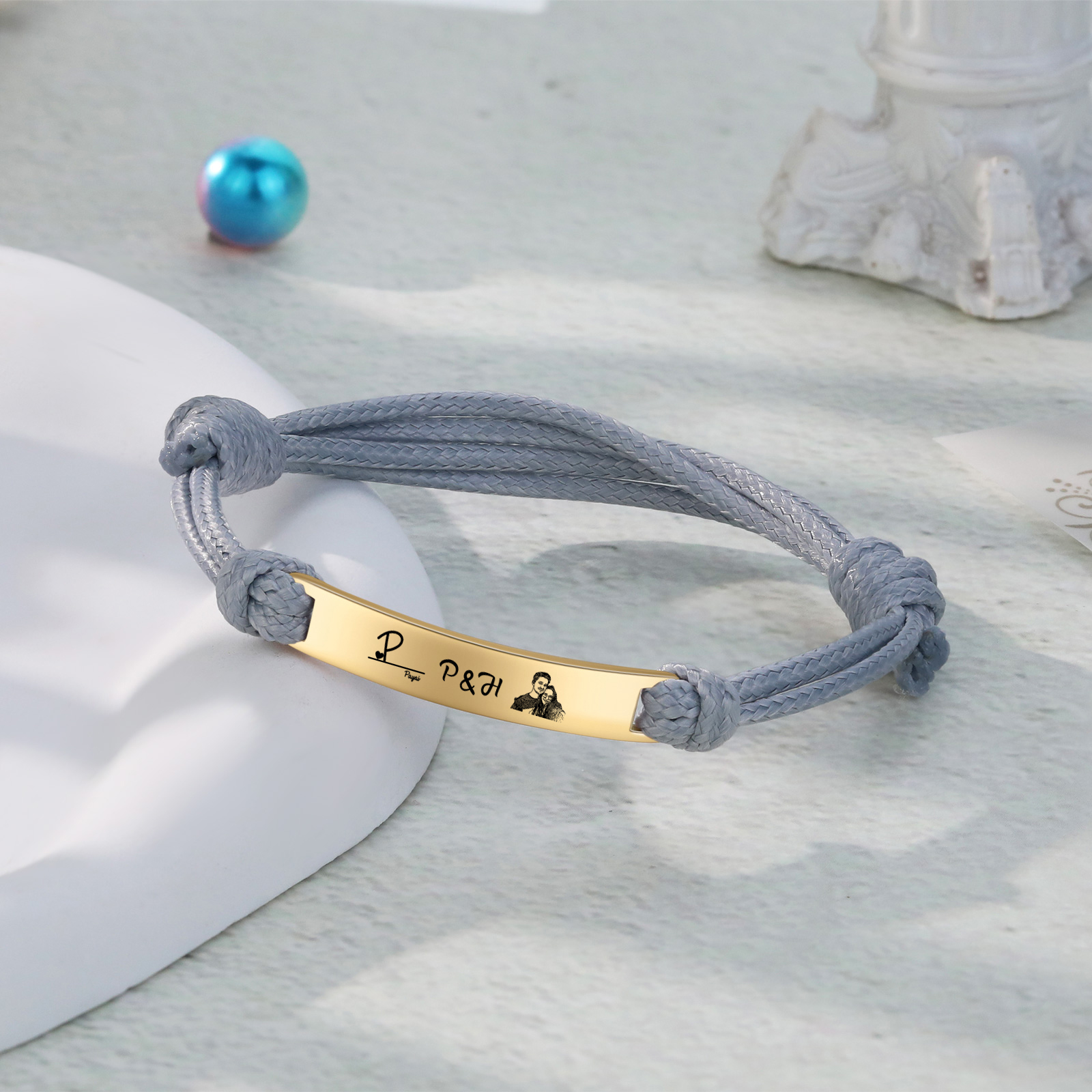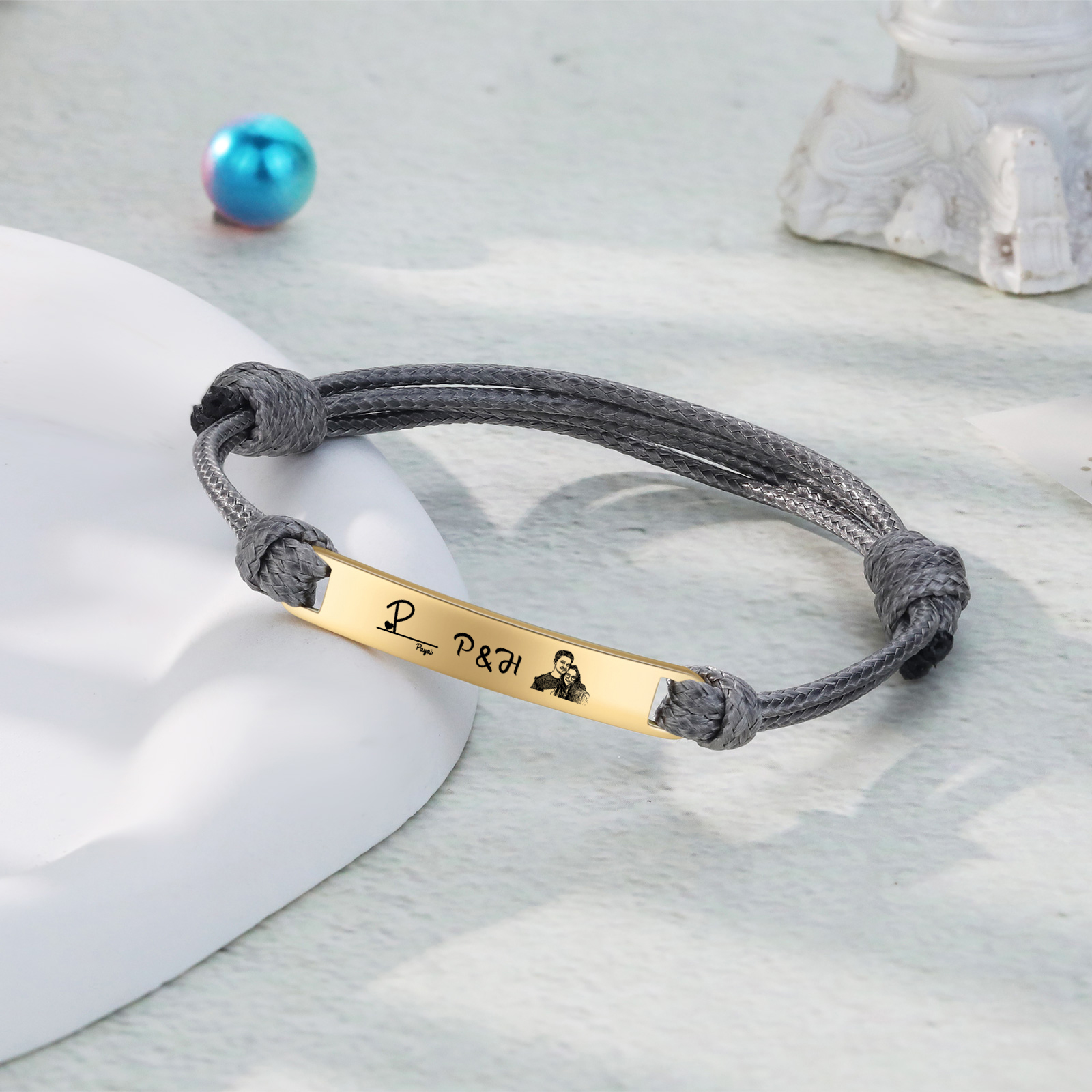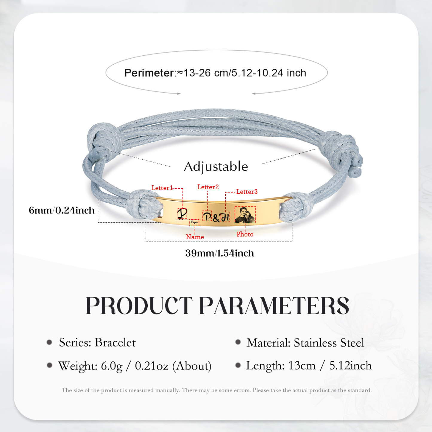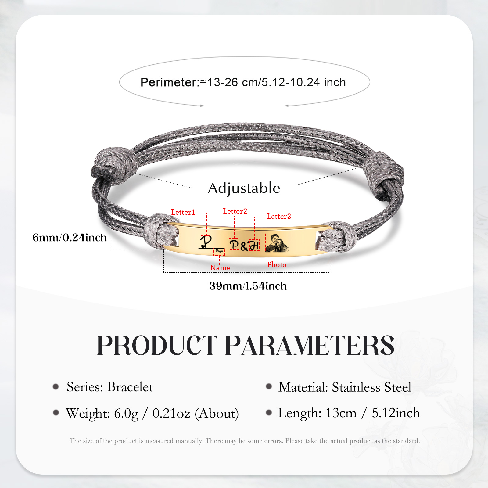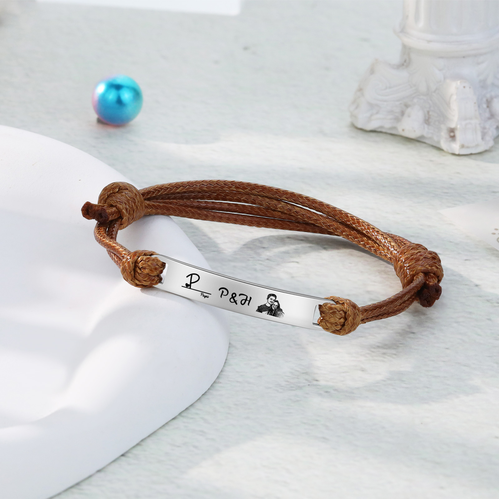Braccialetti acciaio inox 1 nome 3 lettere e 1 foto personalizzabili per coppia multicolori da scegliere