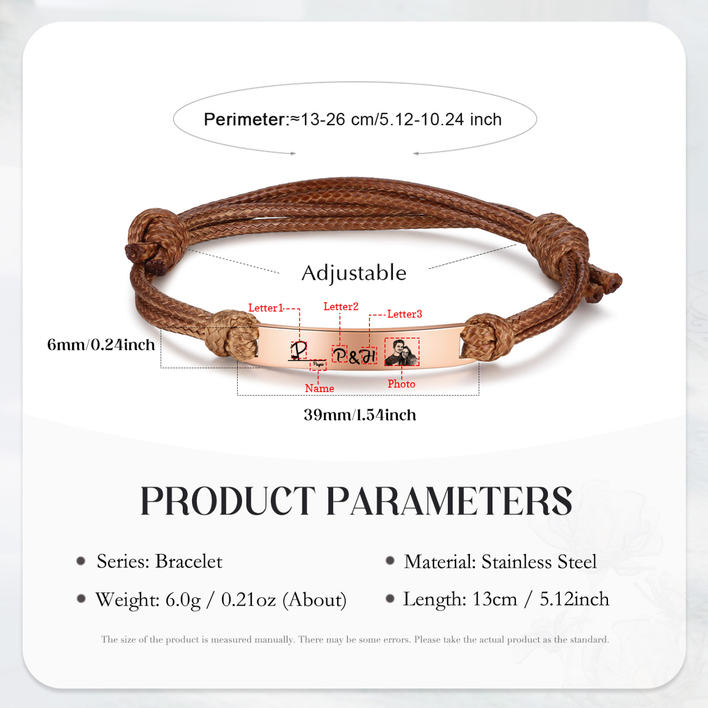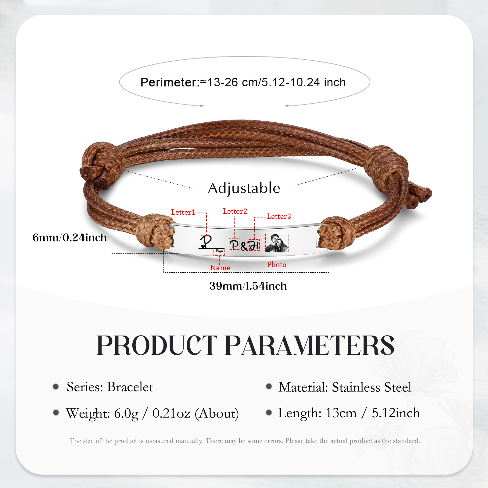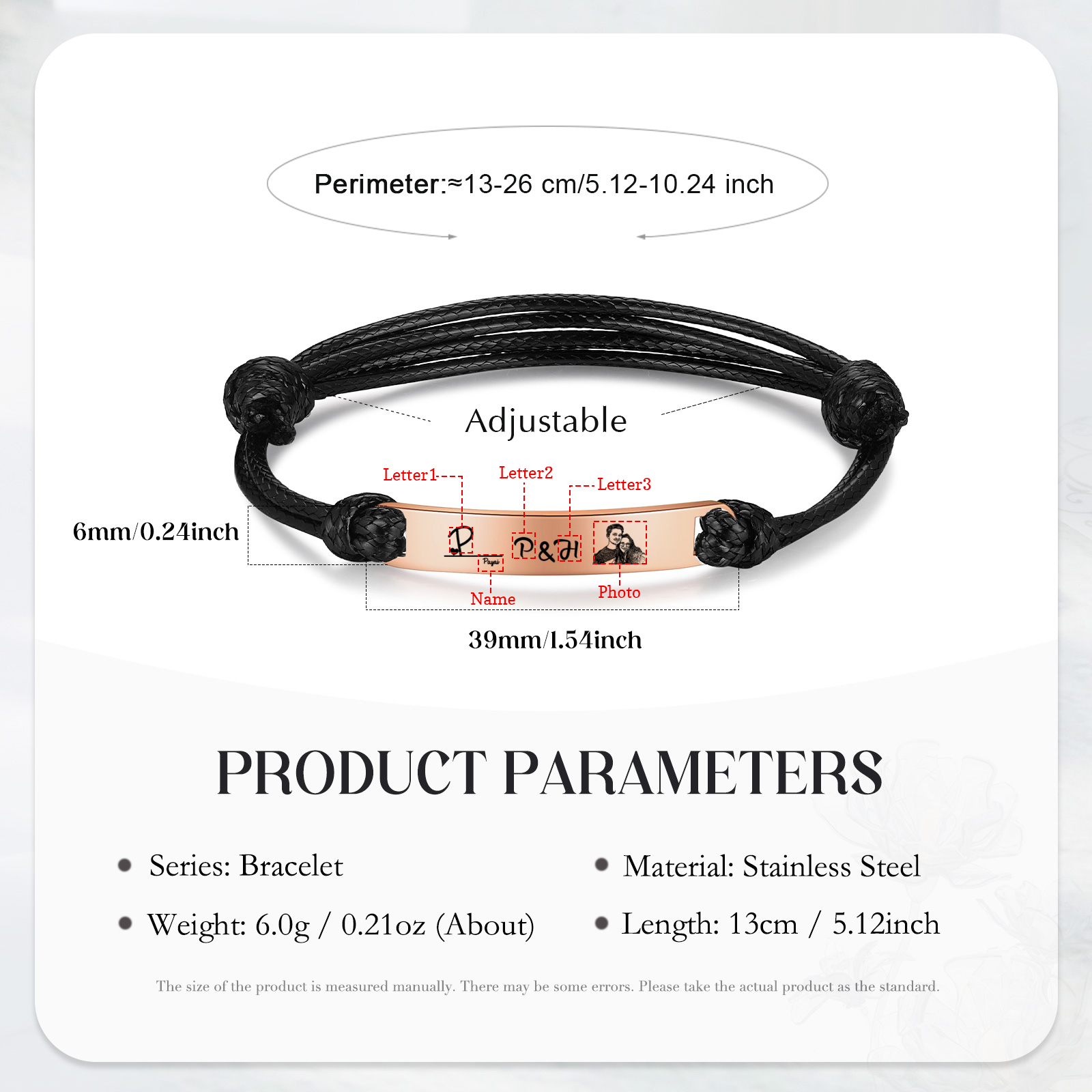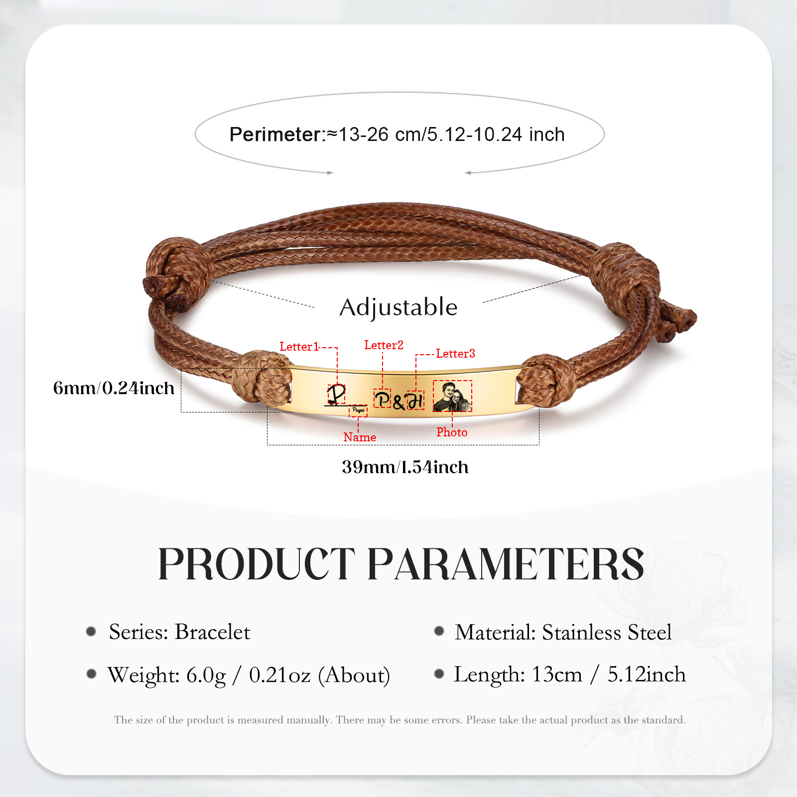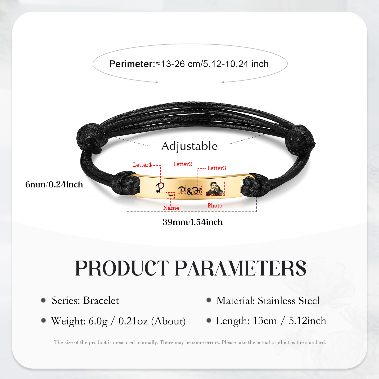 Braccialetti acciaio inox 1 nome 3 lettere e 1 foto personalizzabili per coppia multicolori da scegliere