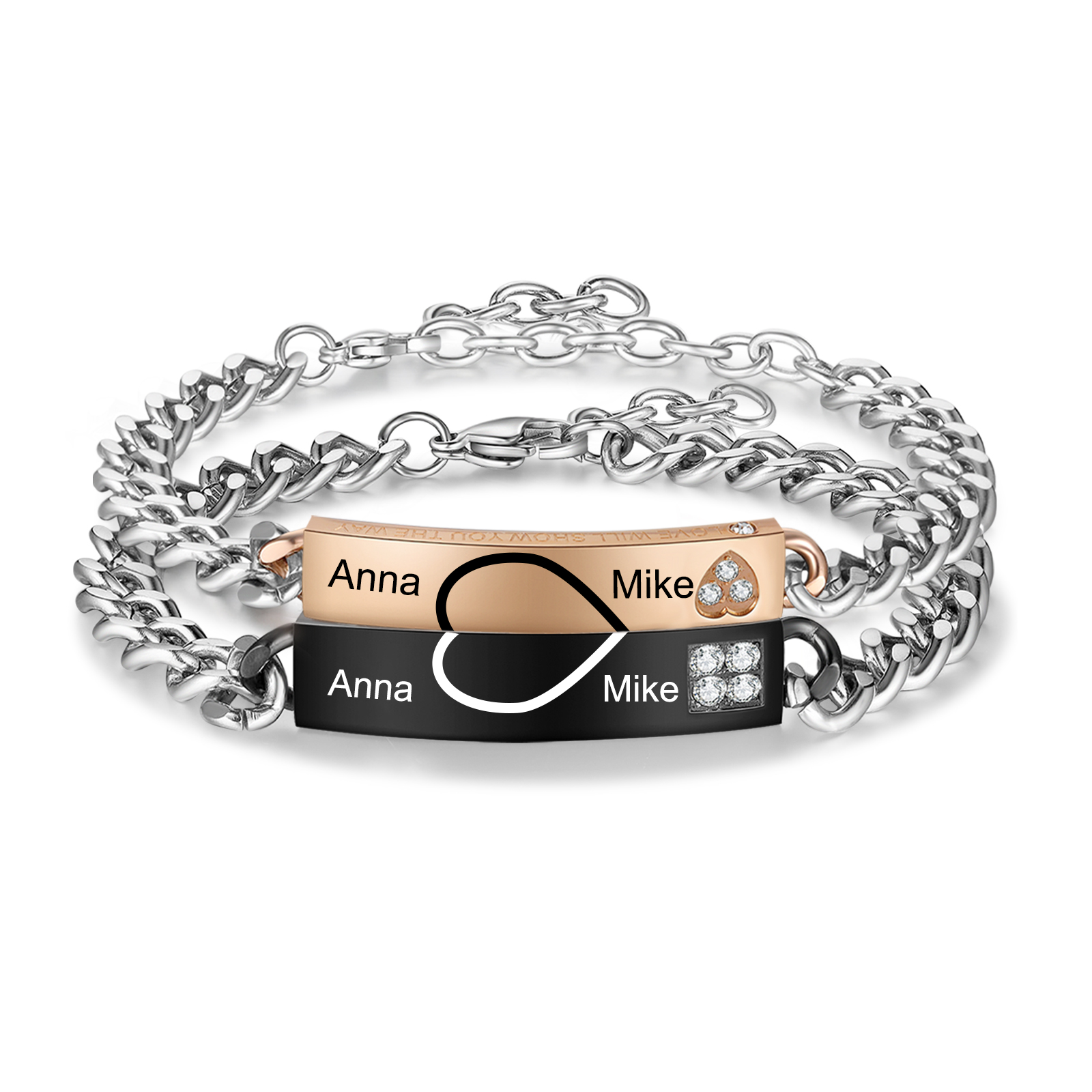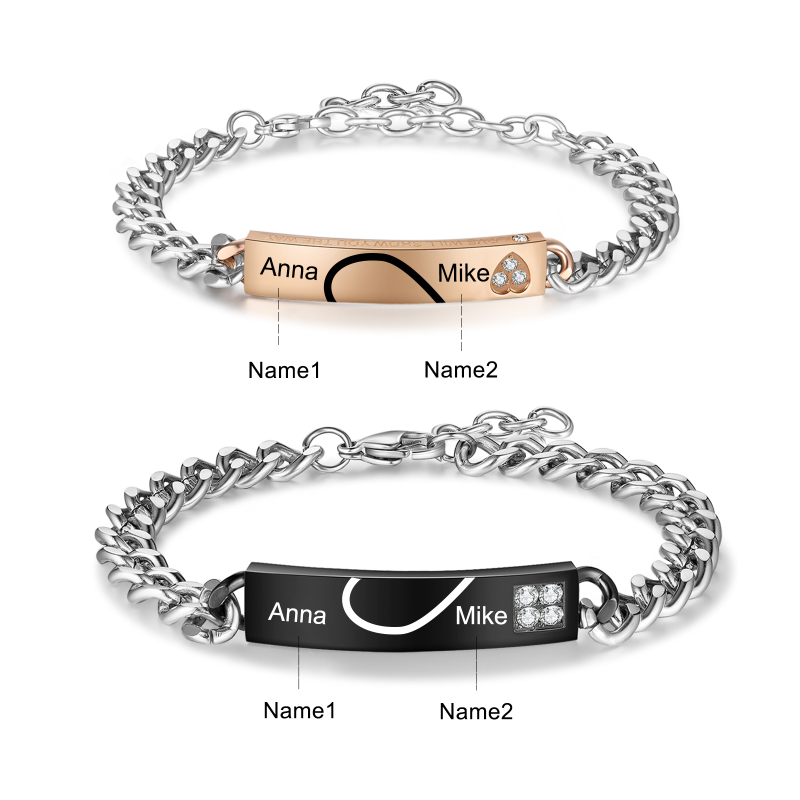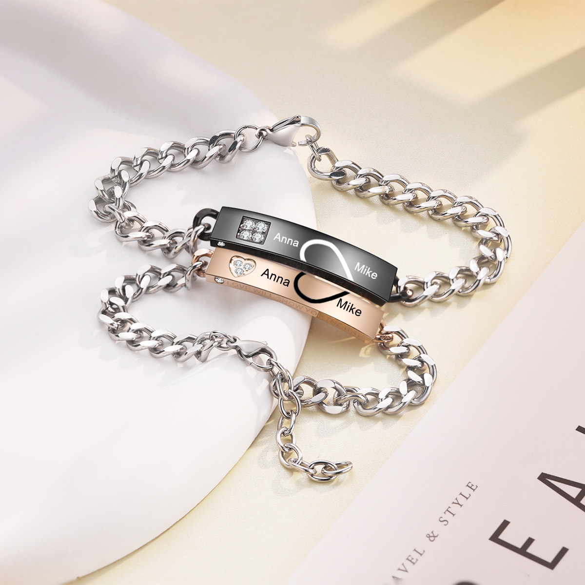 Braccialetti acciaio inox cuore per coppia 2 nomi personalizzabili 2 PCS