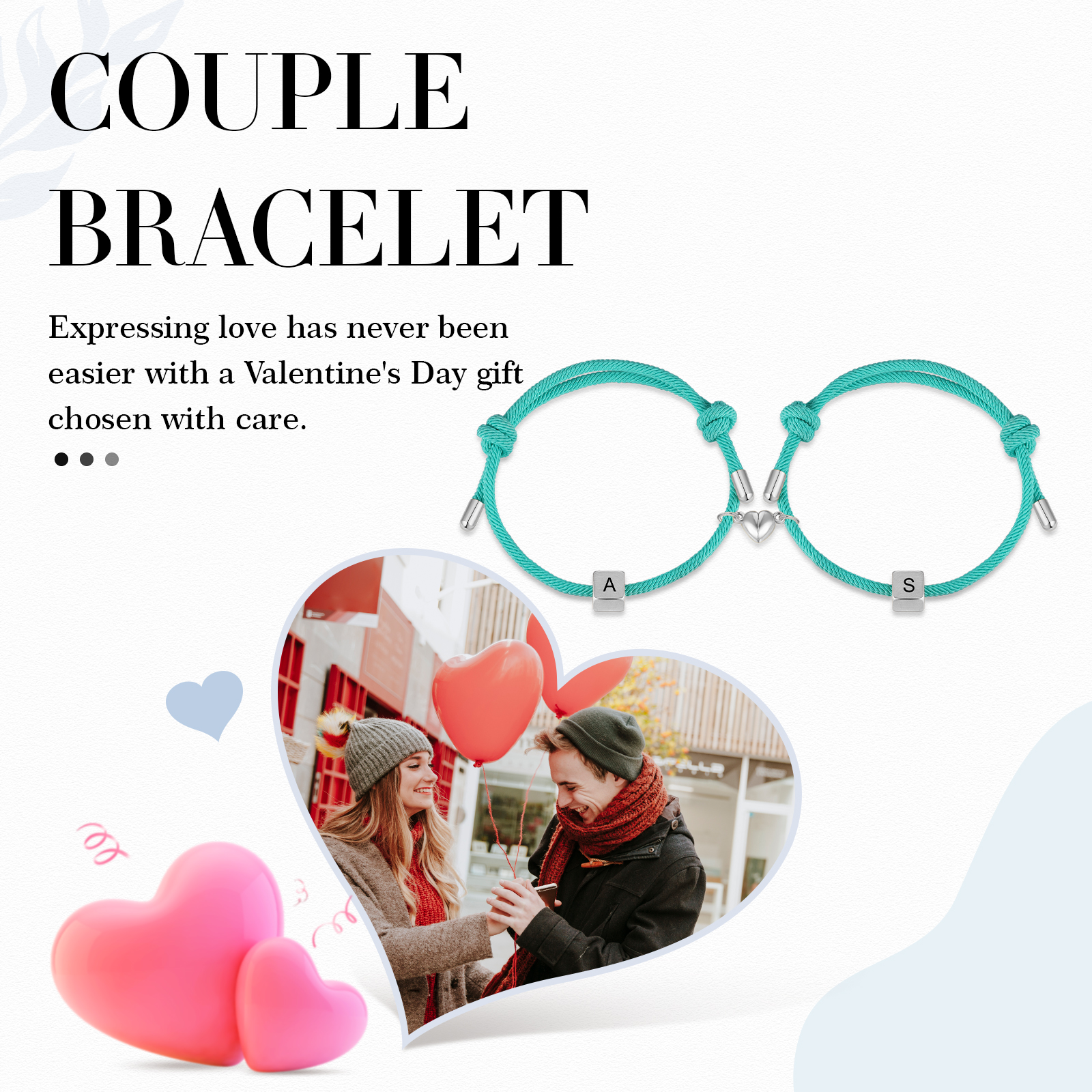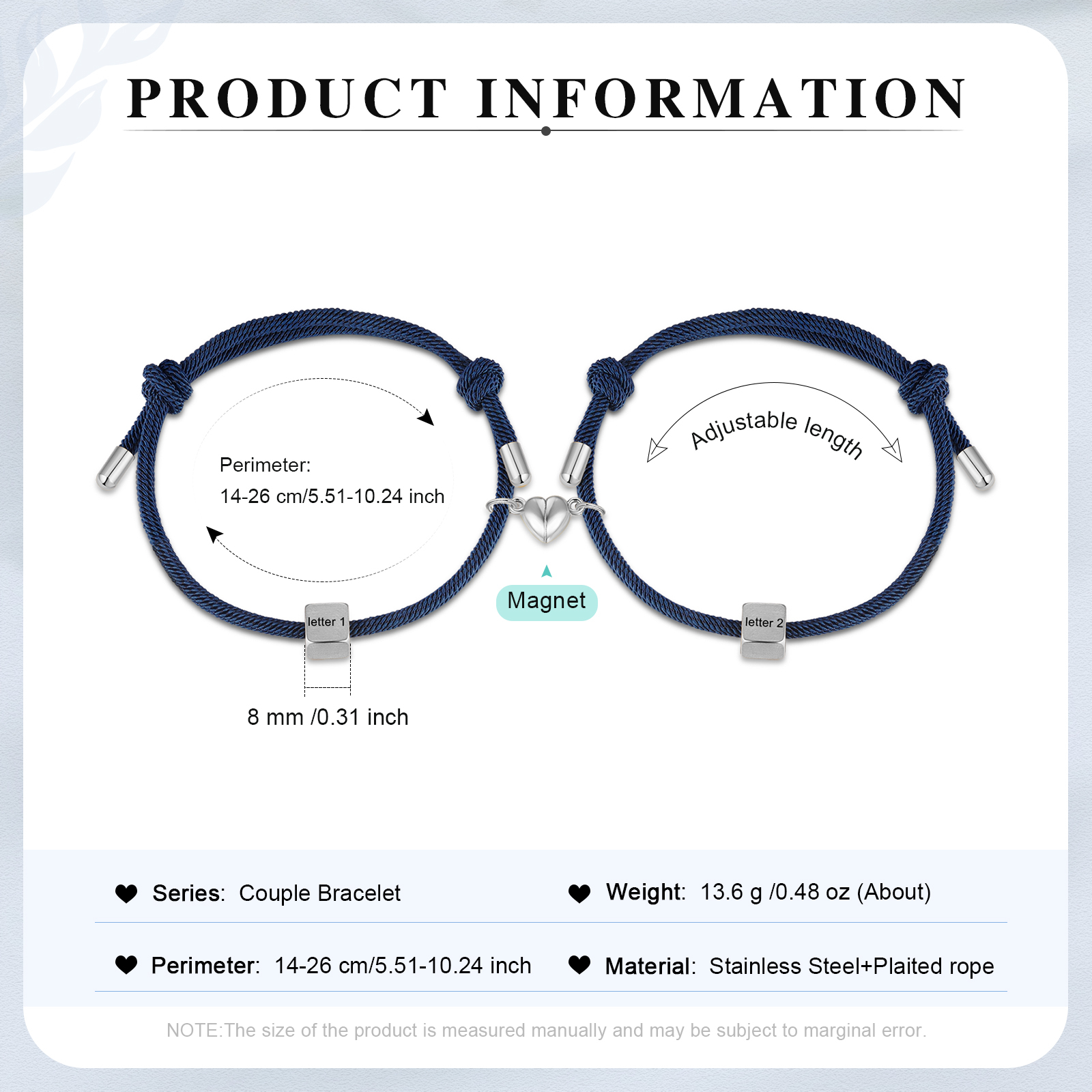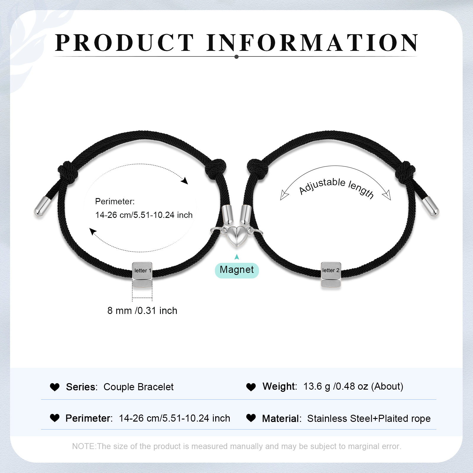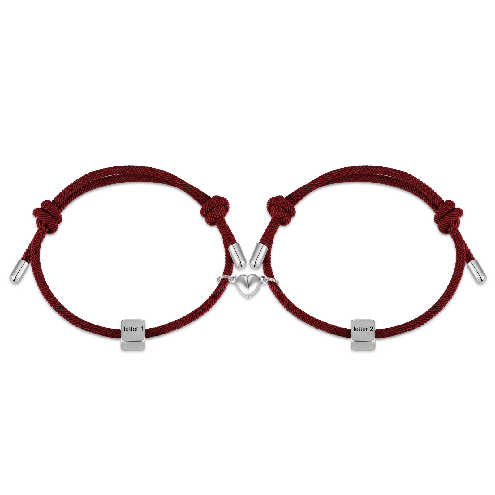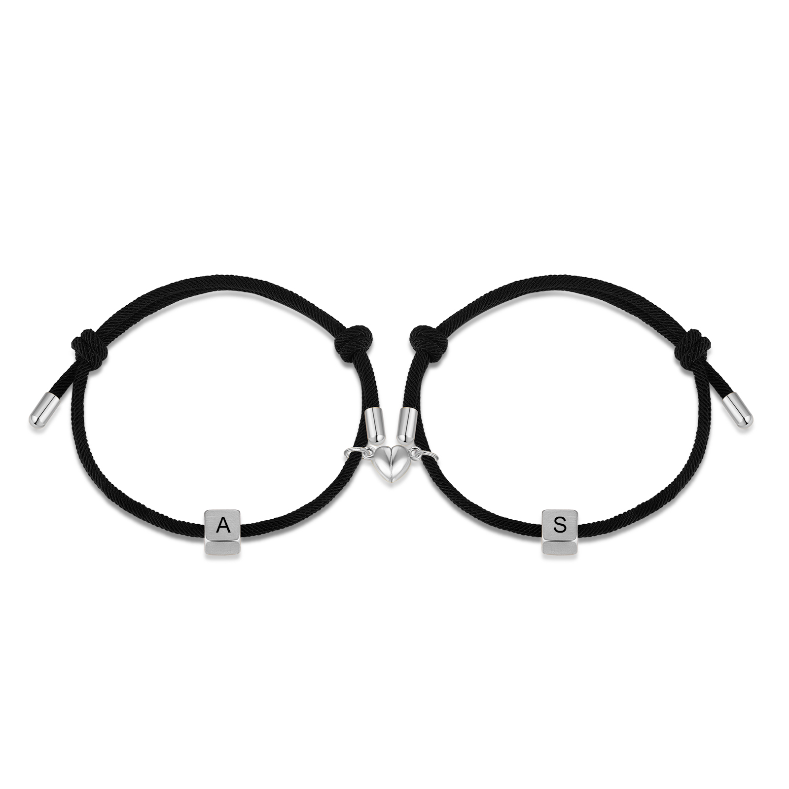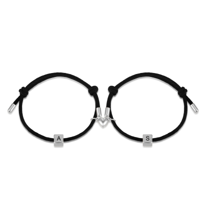 Braccialetti magnetici a corda 2 lettere personalizzate per coppia ciondolo argento