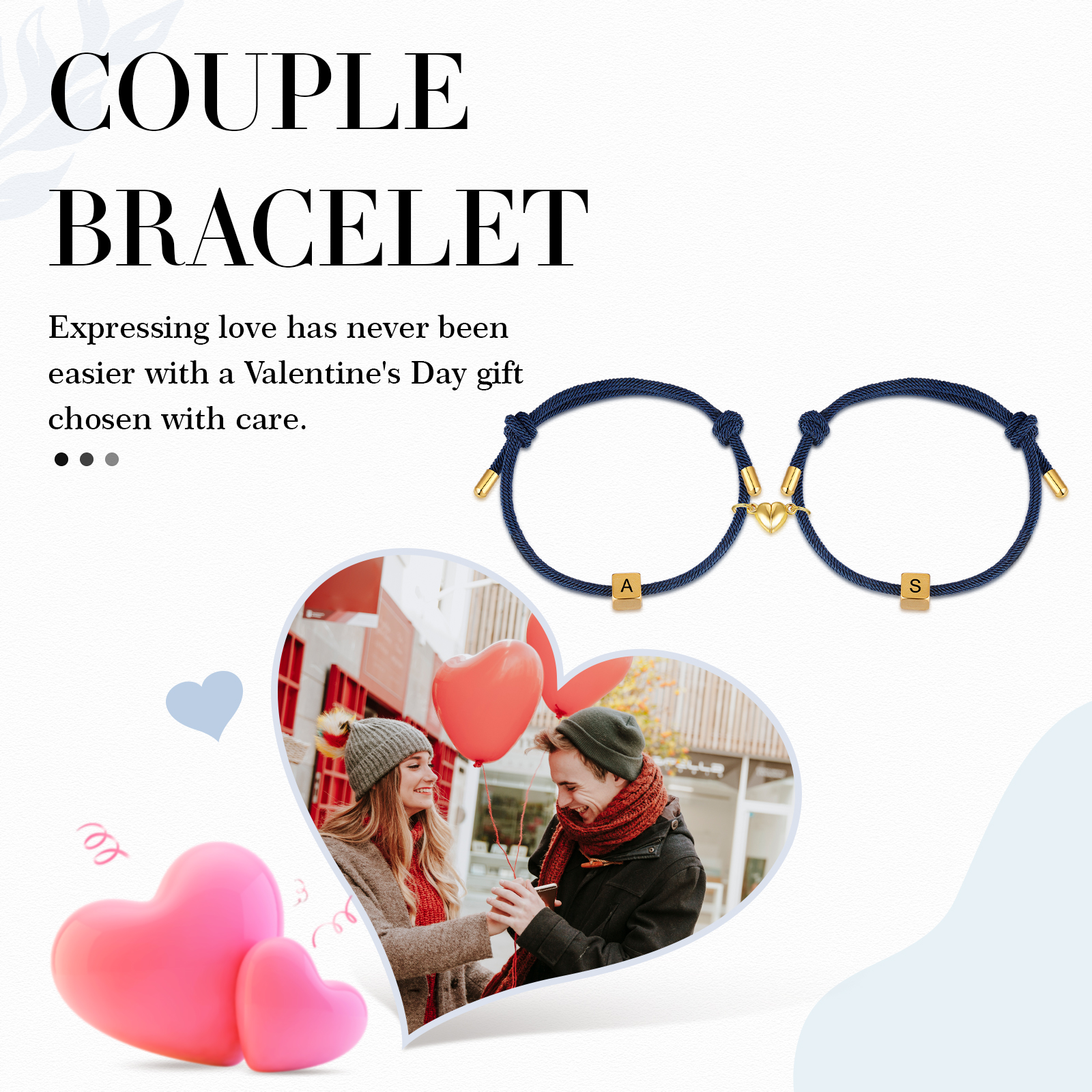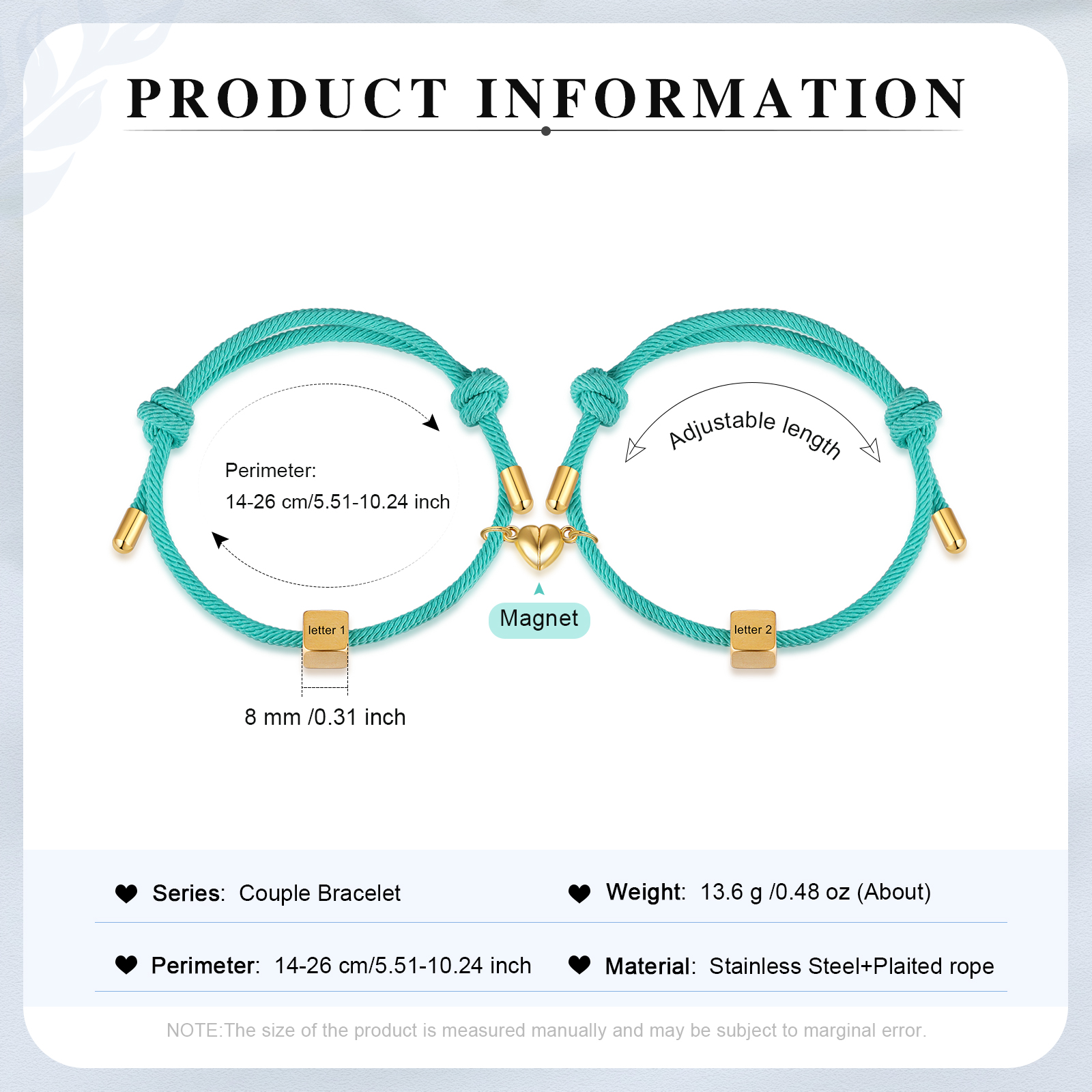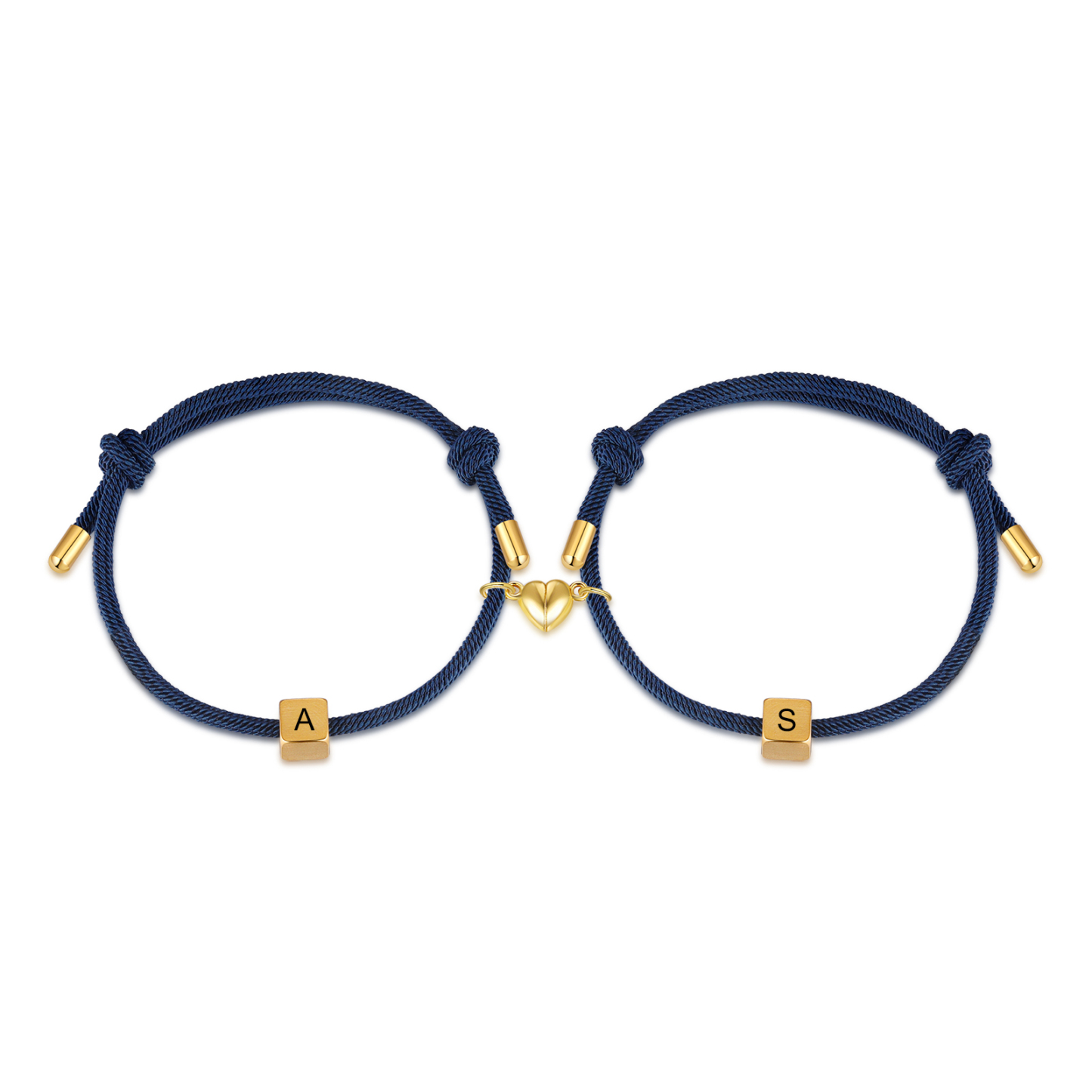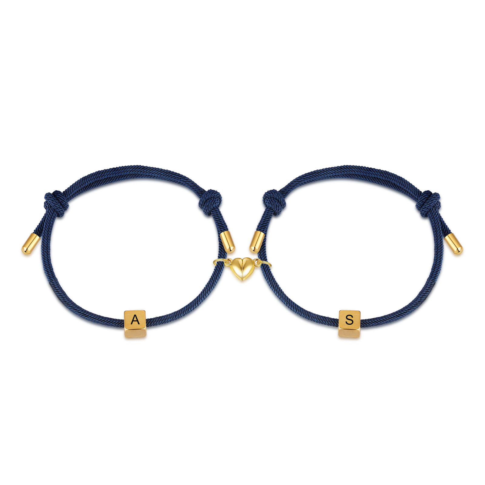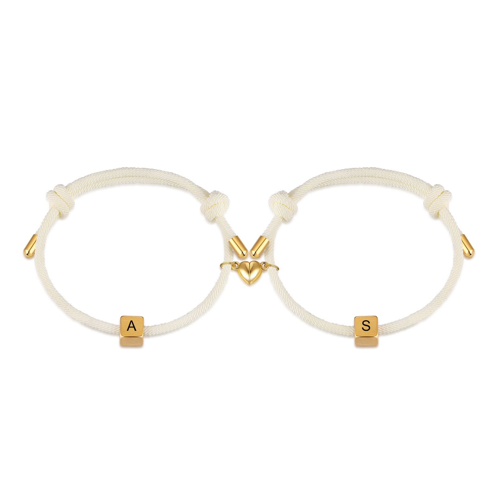 Braccialetti magnetici a corda 2 lettere personalizzate per coppia ciondolo oro