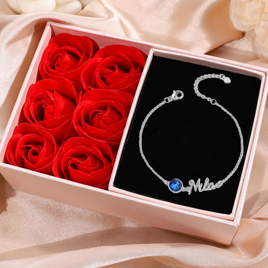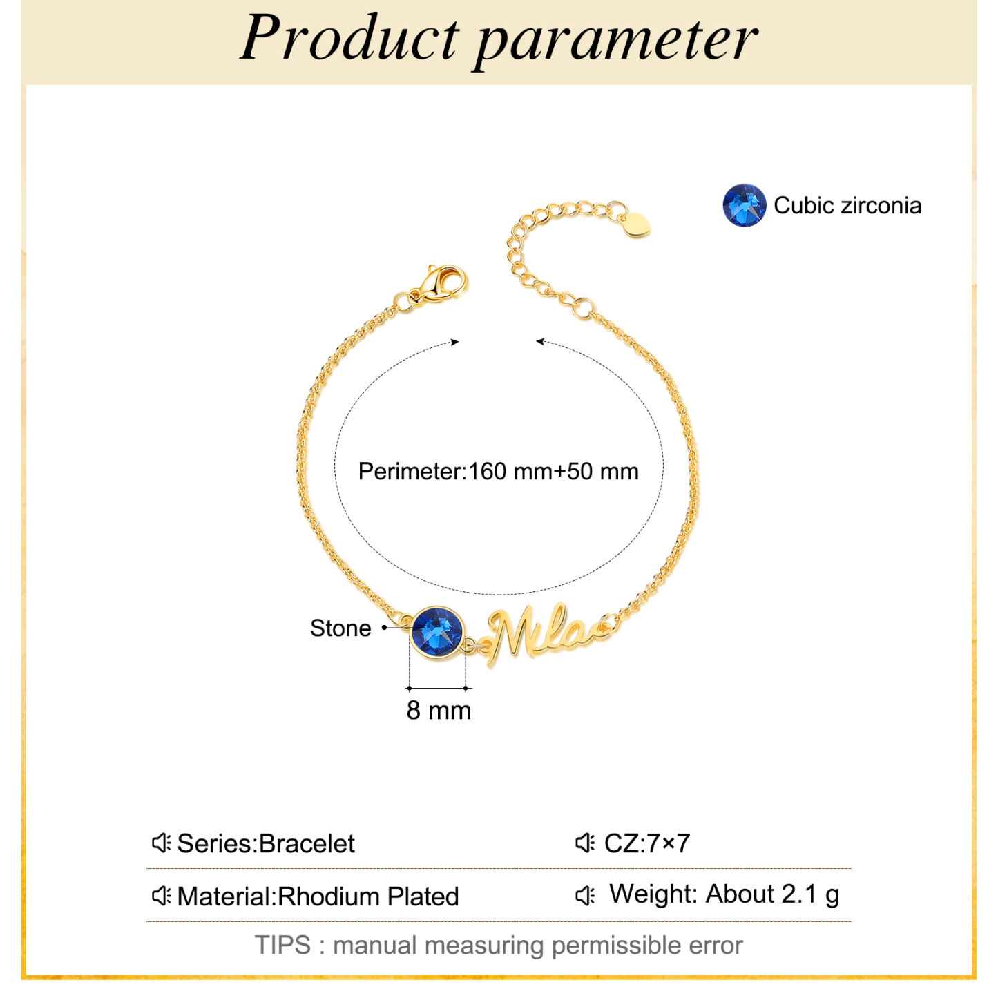 Braccialetto 1 Nome in Personalizzare con 1 pietra di nascita