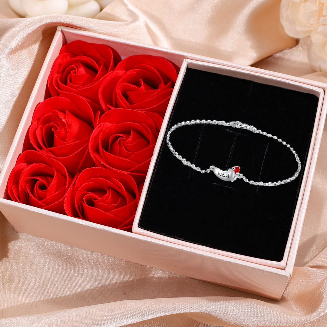 Braccialetto 1 nome personalizzato piede di bambino con 1 pietra di nascita