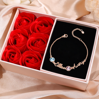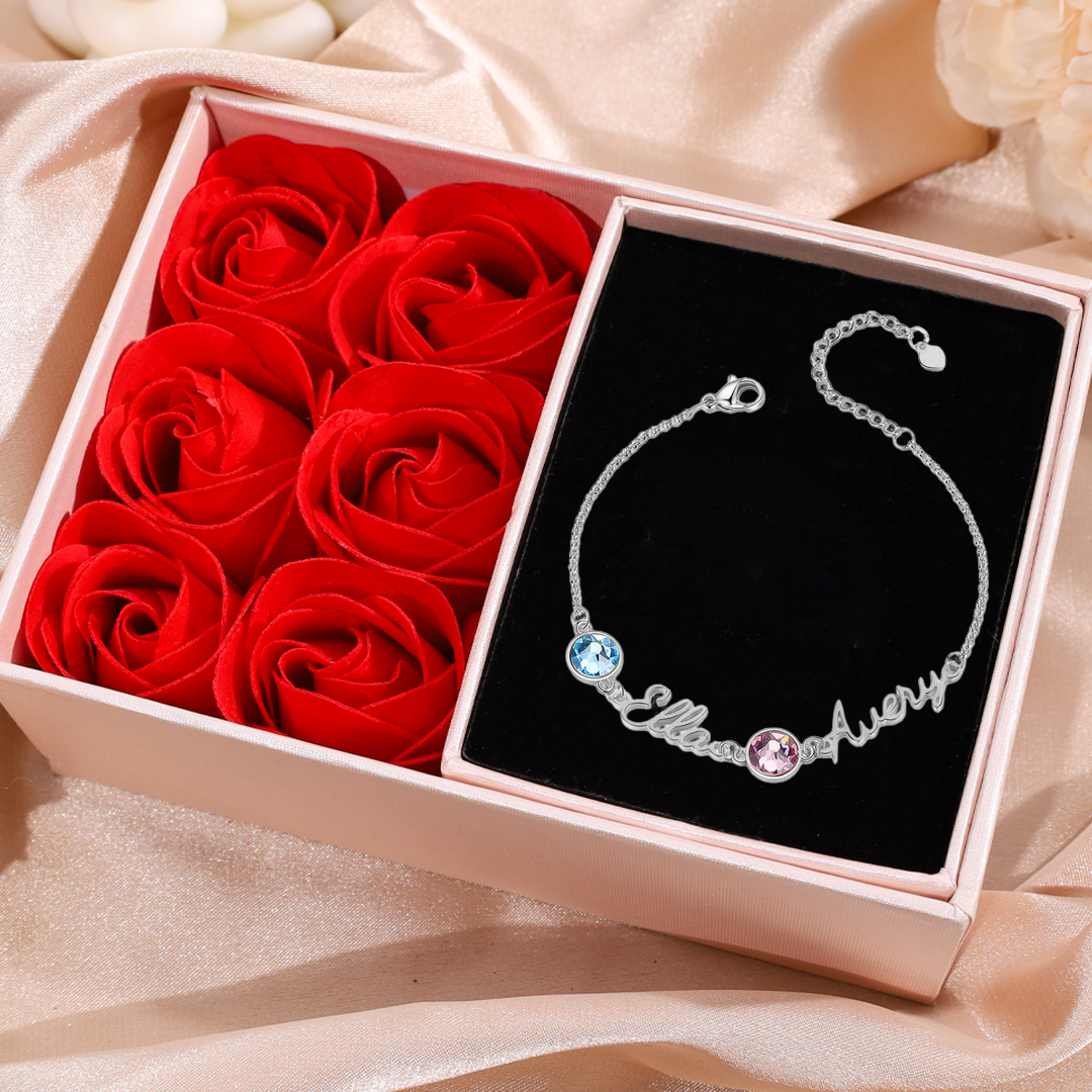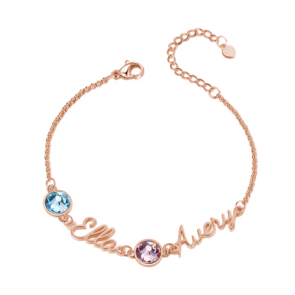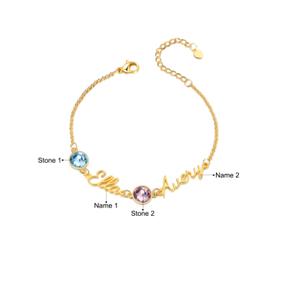Braccialetto 2 Nomi in Personalizzare con 2 pietre di nascita