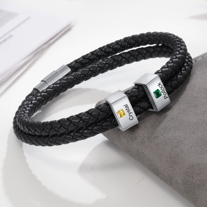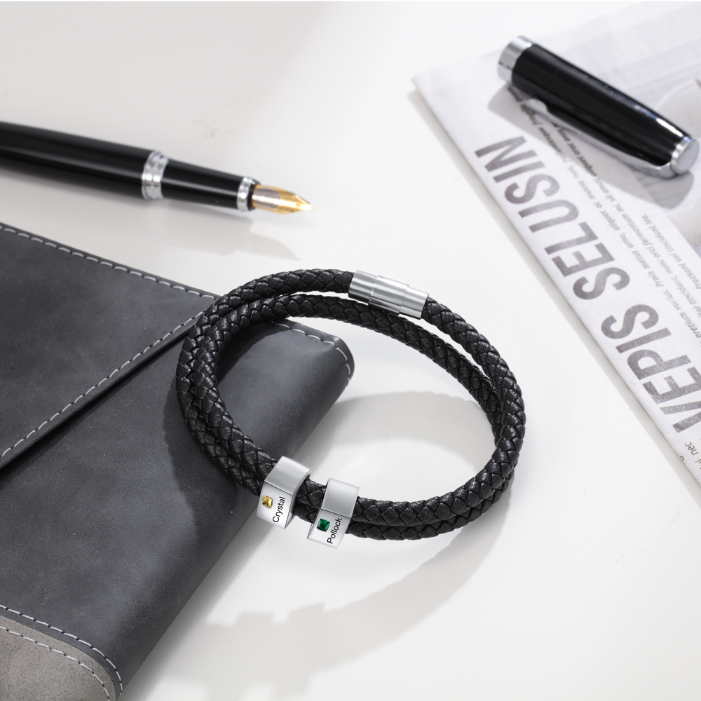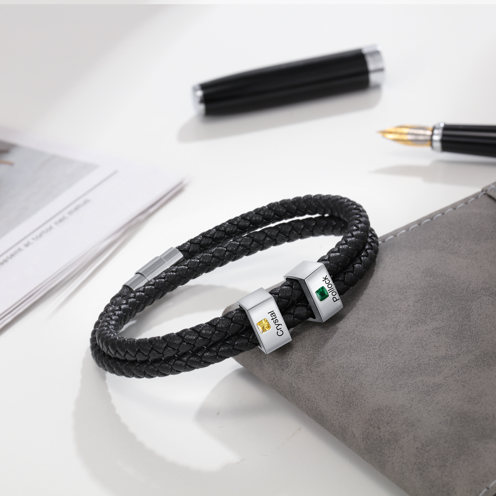 Braccialetto 3 nomi in Personalizzare con 3 pietre di nascita Braccialetto da uomo