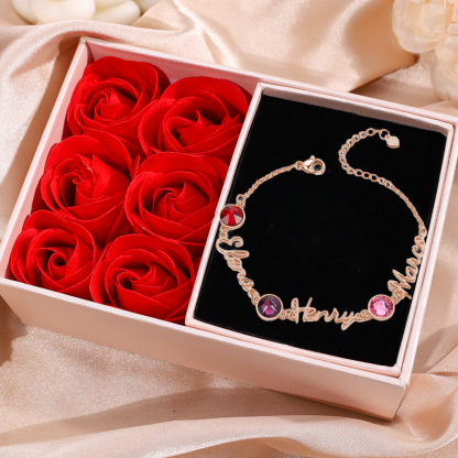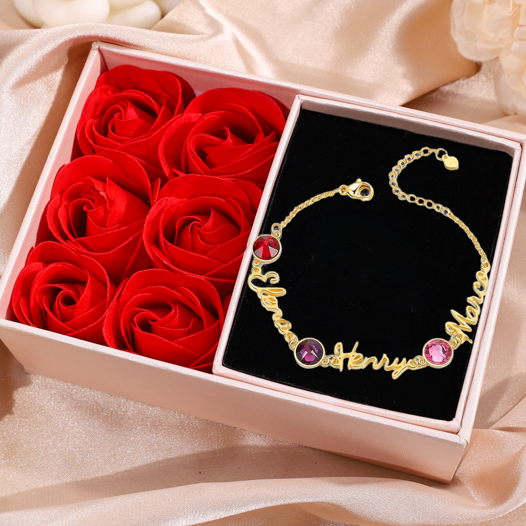 Braccialetto 3 Nomi in Personalizzare con 3 pietre di nascita