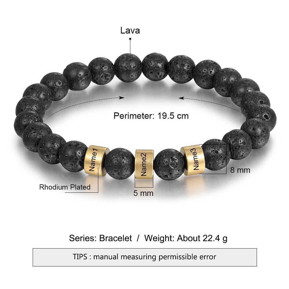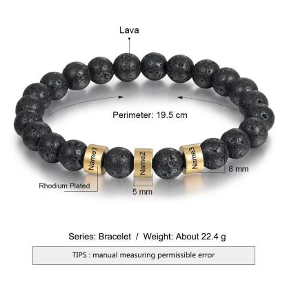 Braccialetto 3 nomi personalizzati pietre laviche nere Braccialetto Maschile