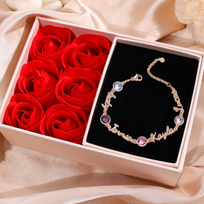 Braccialetto 4 Nomi in Personalizzare con 4 pietre di nascita